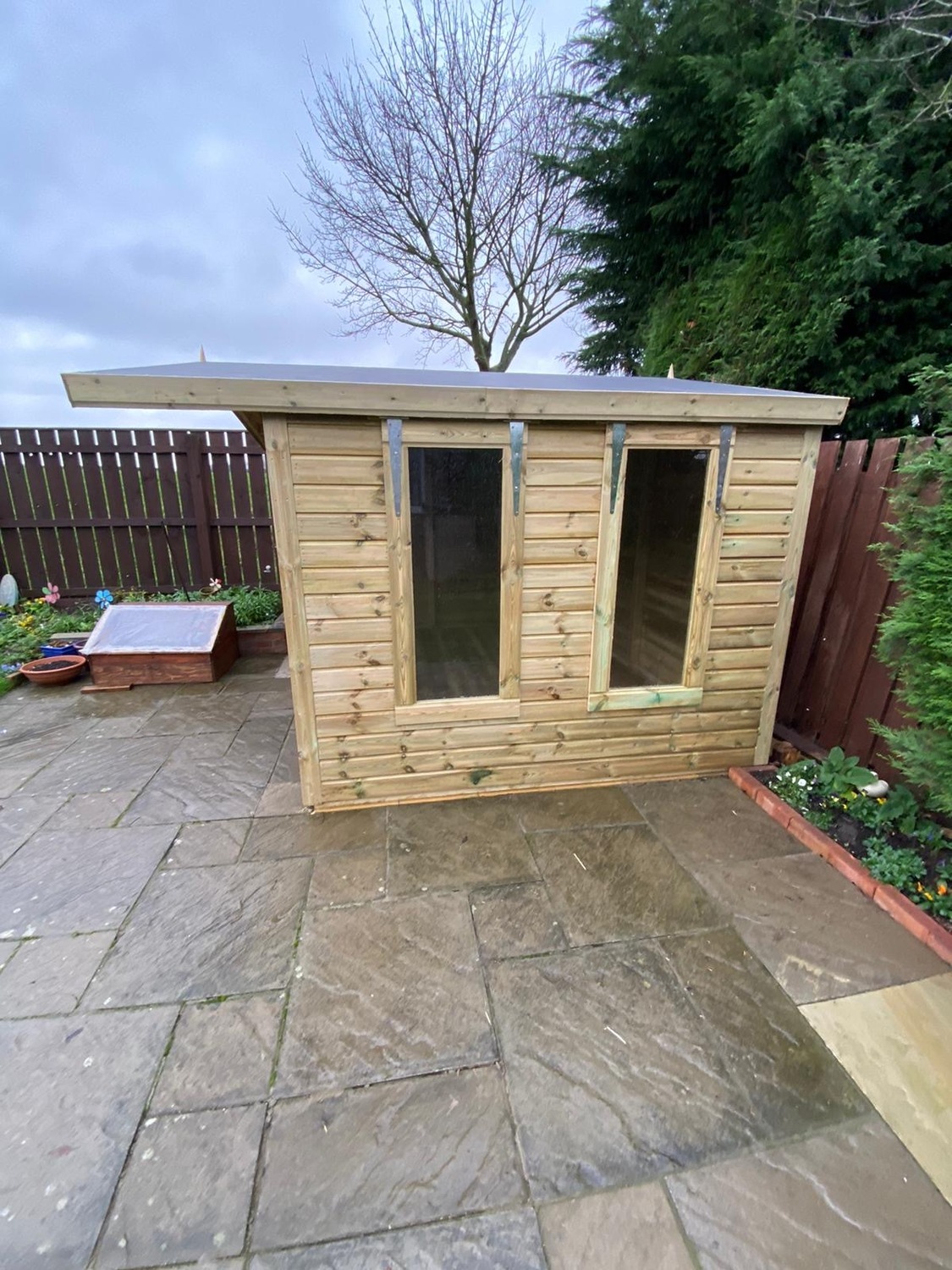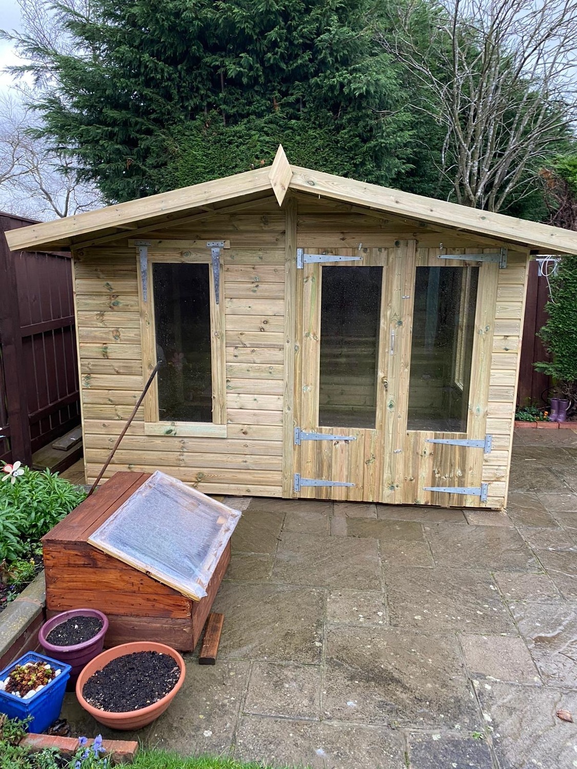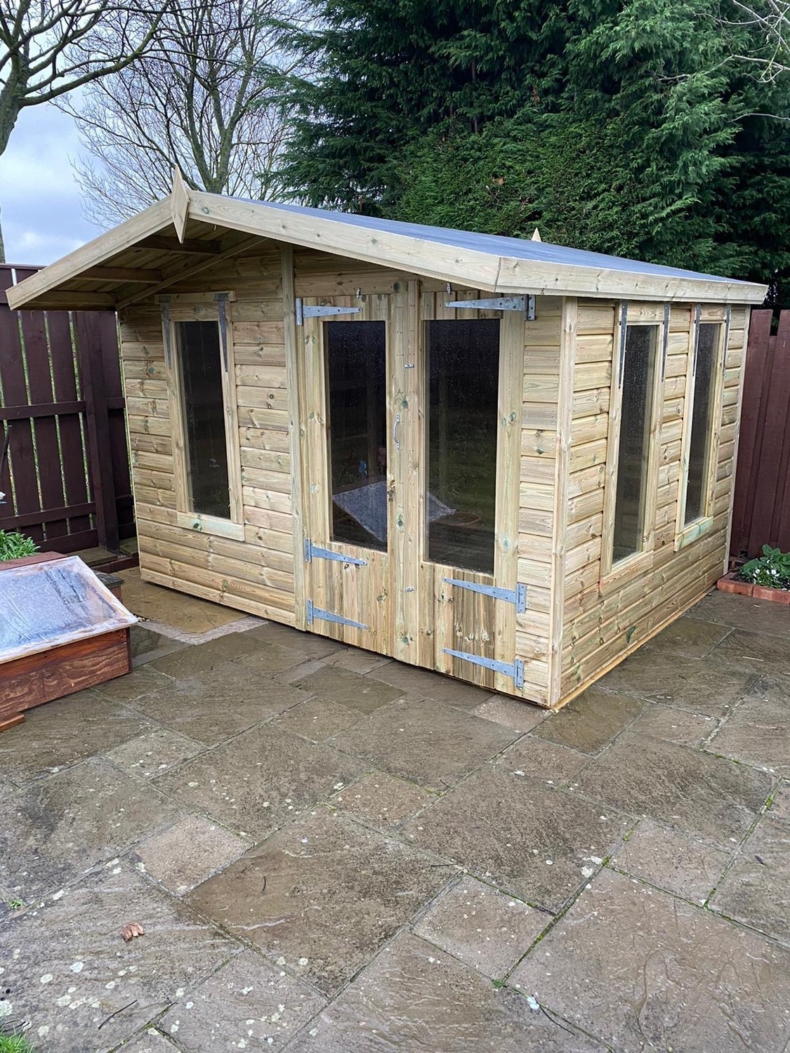 10x8 apex reverse roofed summerhouse in our tanalised 19mm T&G.