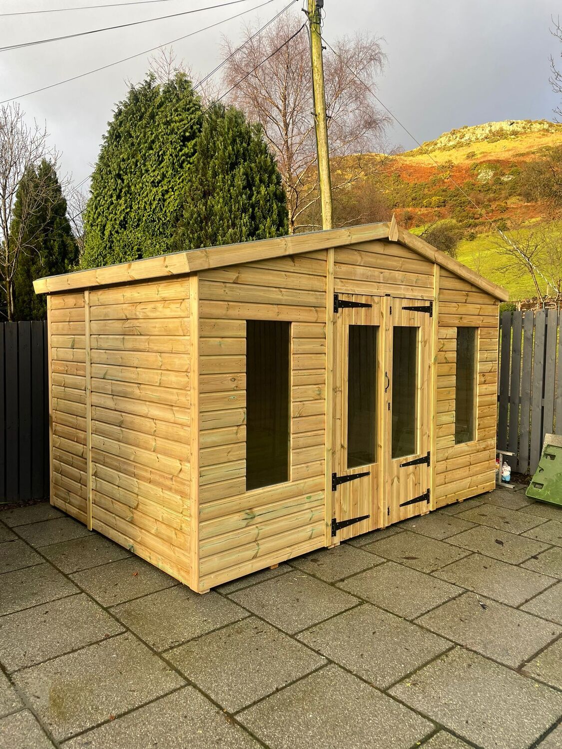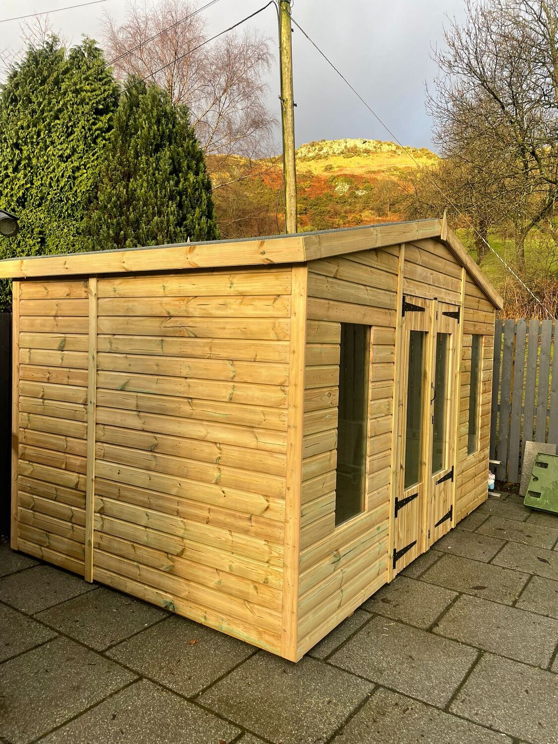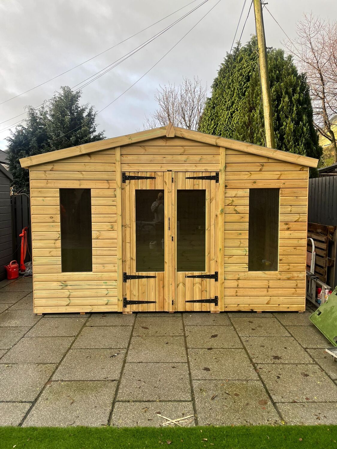 12x8 apex reverse roofed summerhouse in our tanalised 19mm T&G.