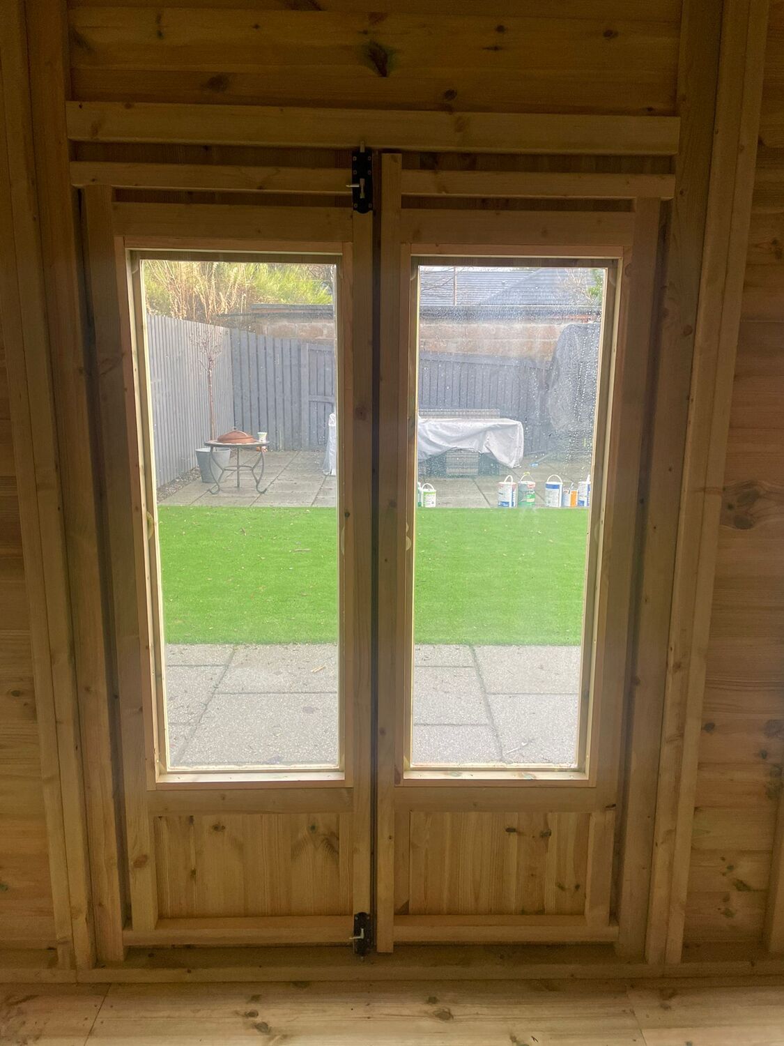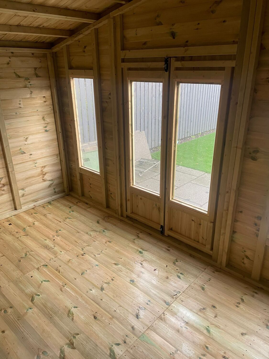 The summerhouse has 4ft wide 6ft high double door and 4 long windows.