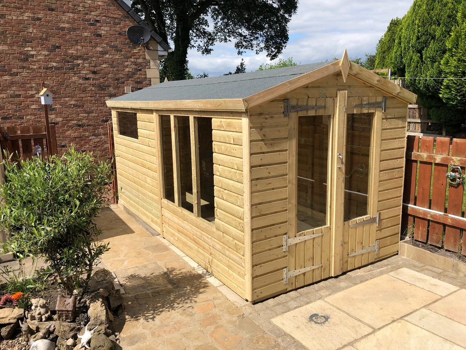 14x10 apex roofed summerhouse in our tanalised 19mm T&G.