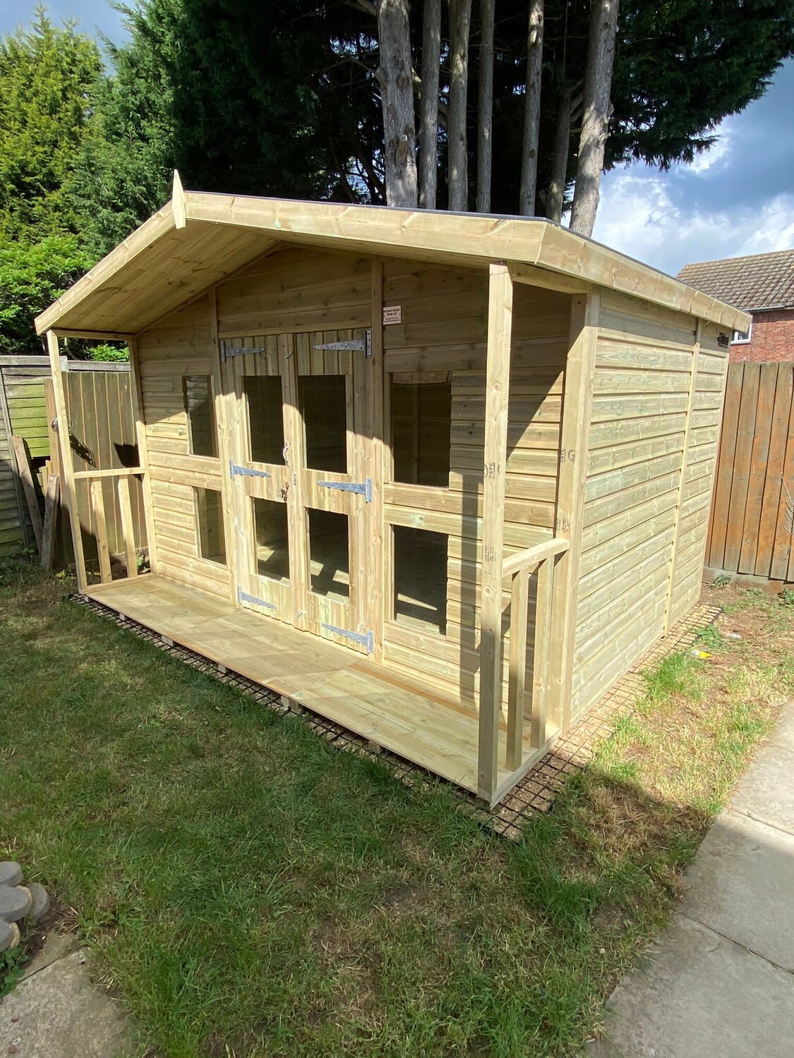 The summerhouse has a 2ft veranda making the overall size 10ft.
