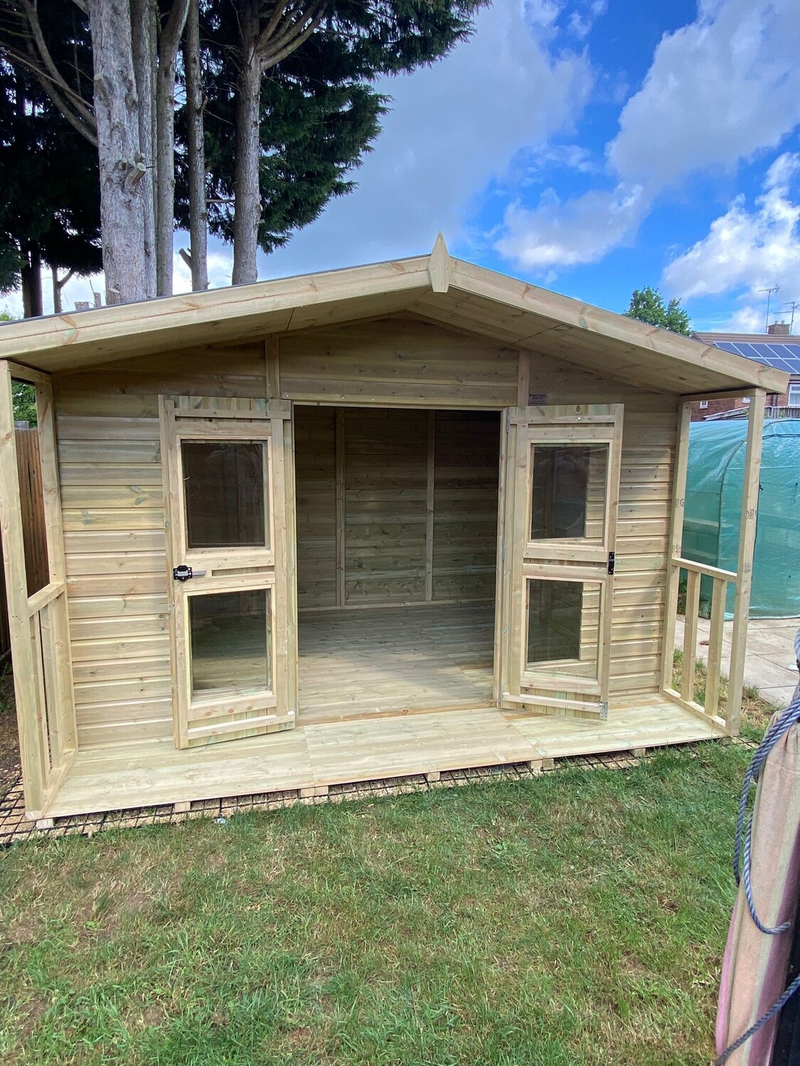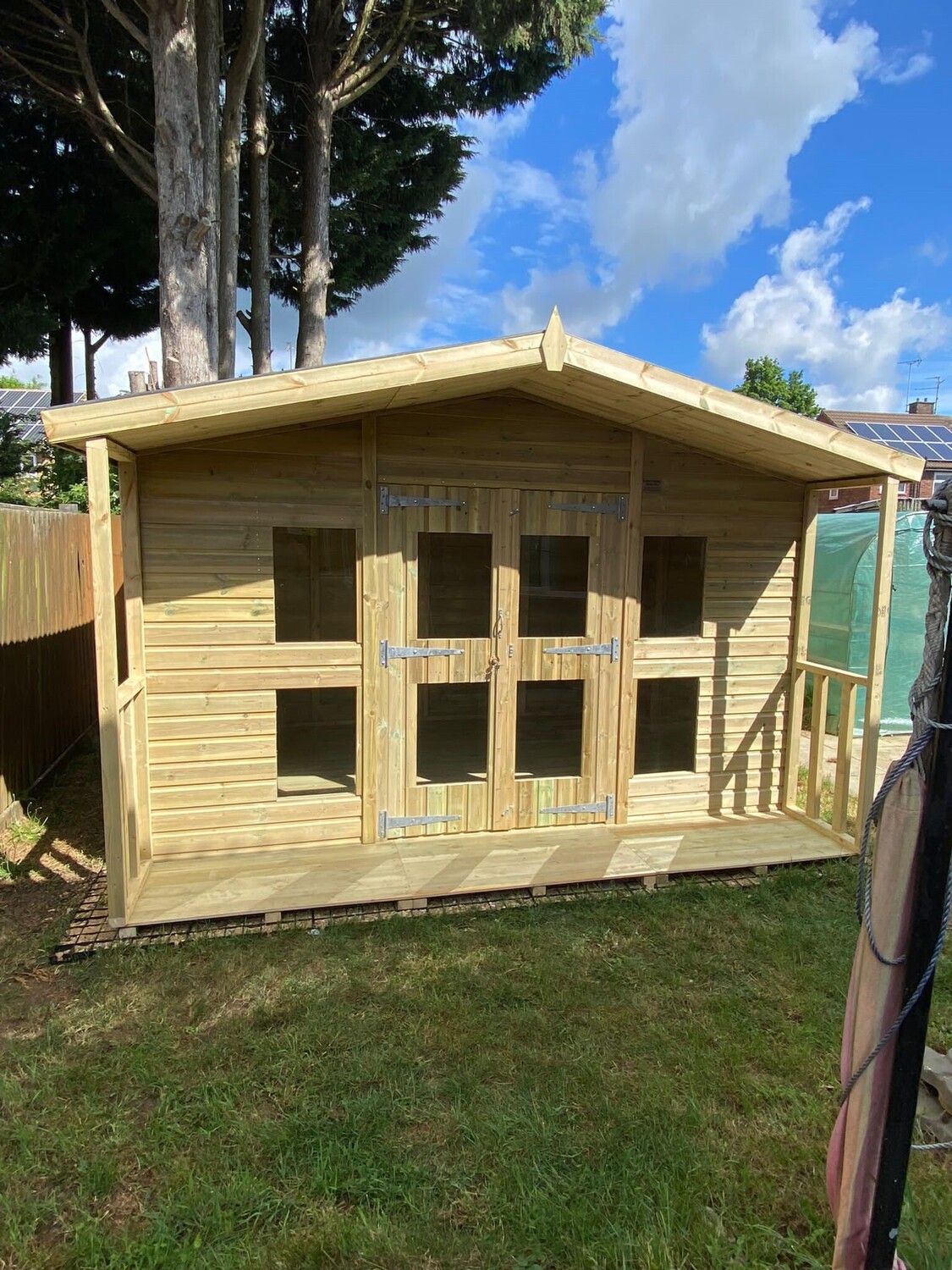 12x10 apex reverse roofed summerhouse in our tanalised 19mm T&G.