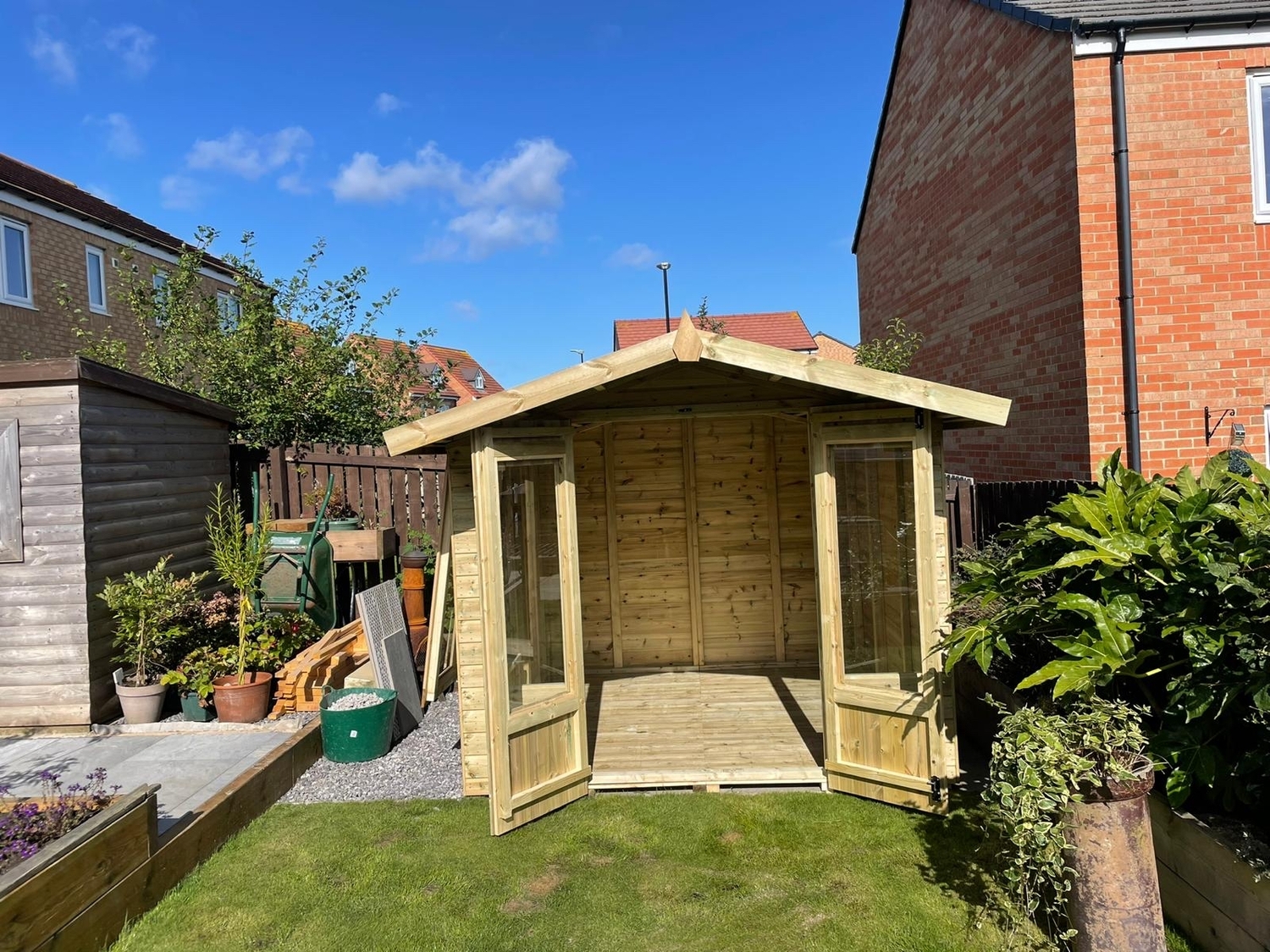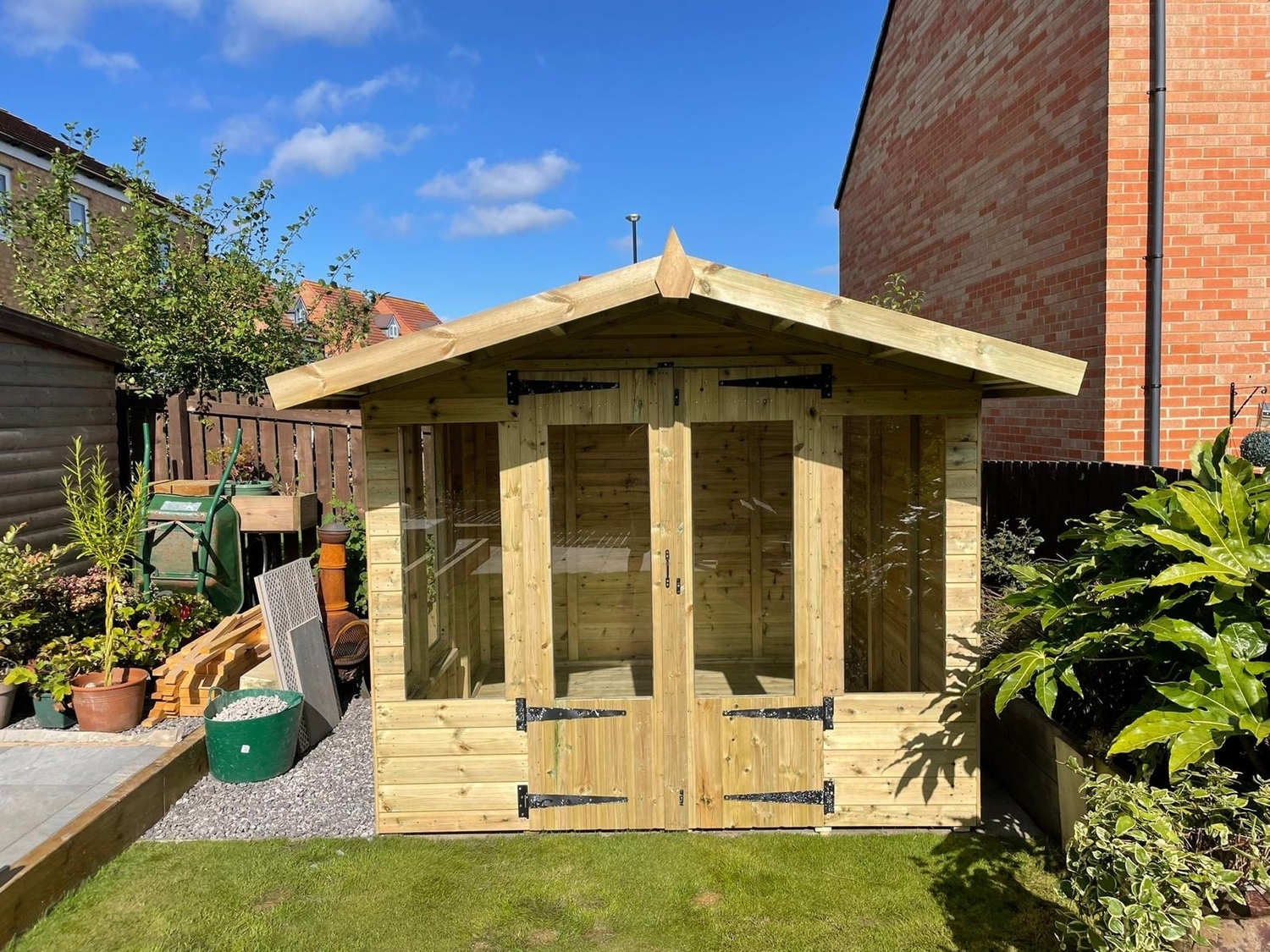 8x8 apex roofed summerhouse in our tanalised 19mm T&G.