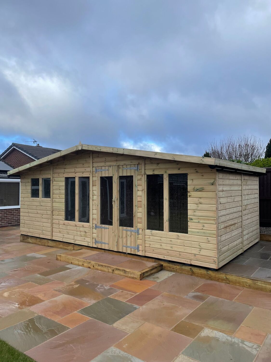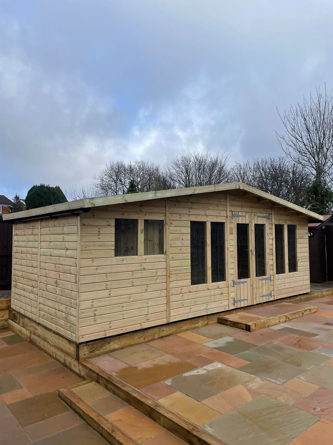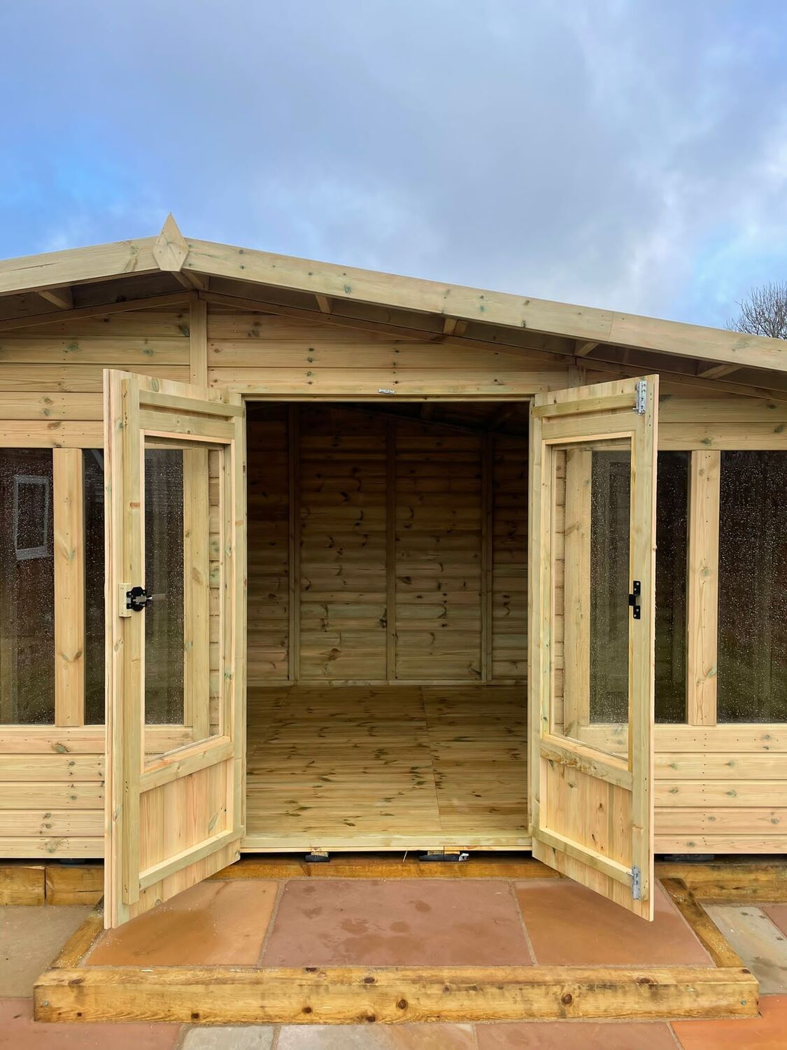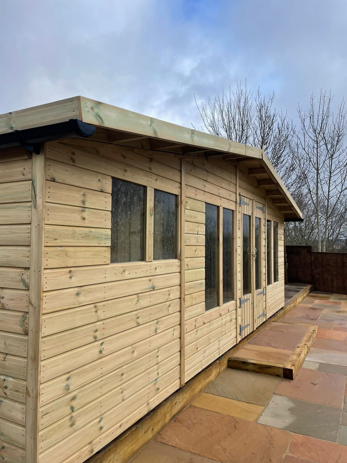 20x10 apex reverse roofed summerhouse in our tanalised 19mm T&G.