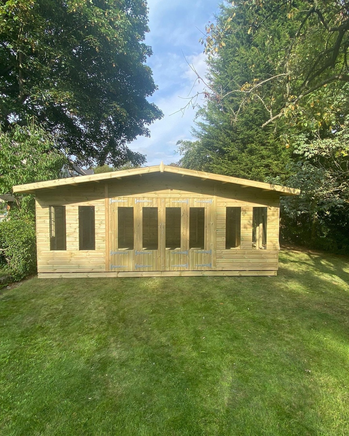 20x13 apex reverse roofed summerhouse in our tanalised 19mm T&G.