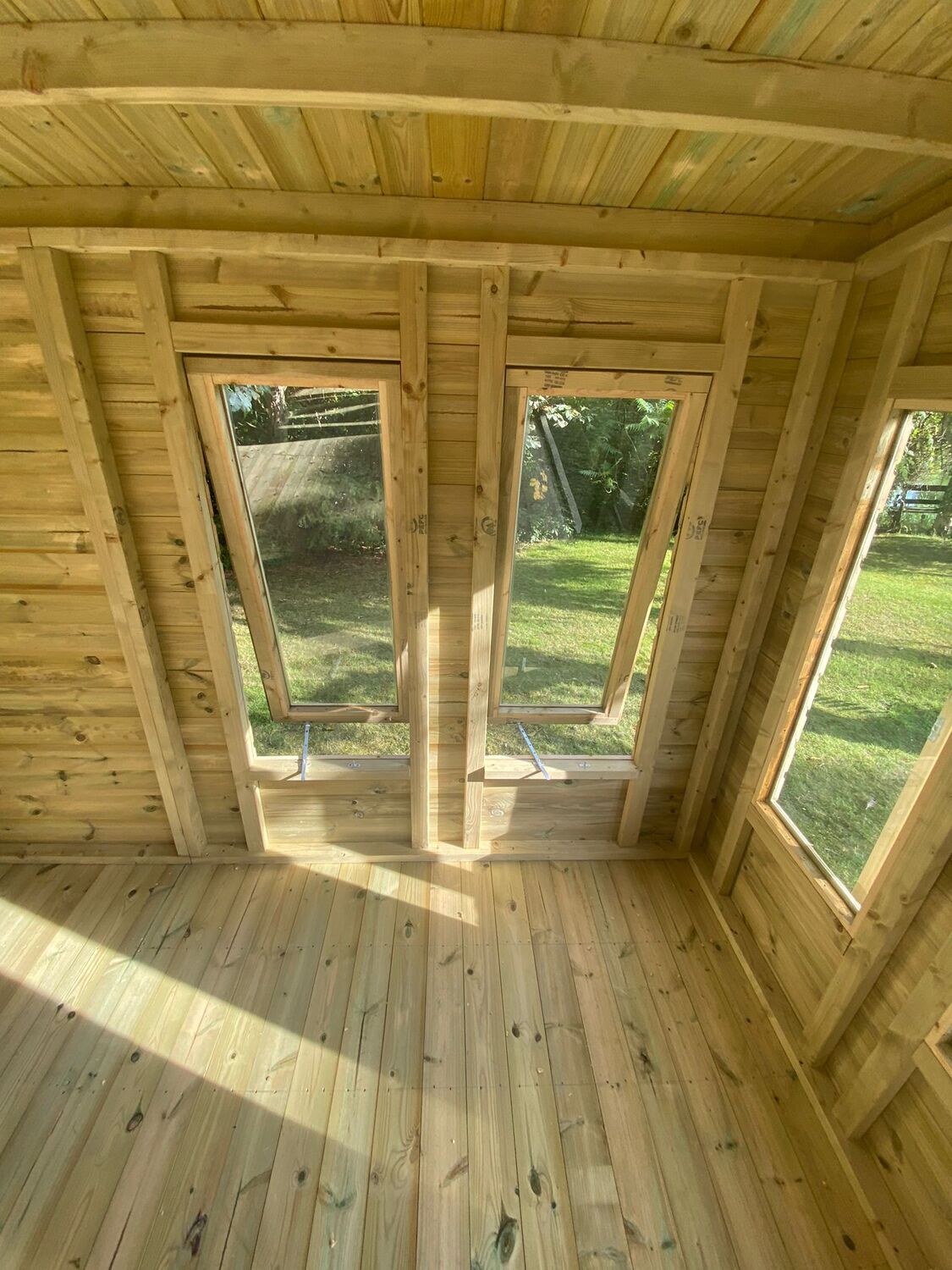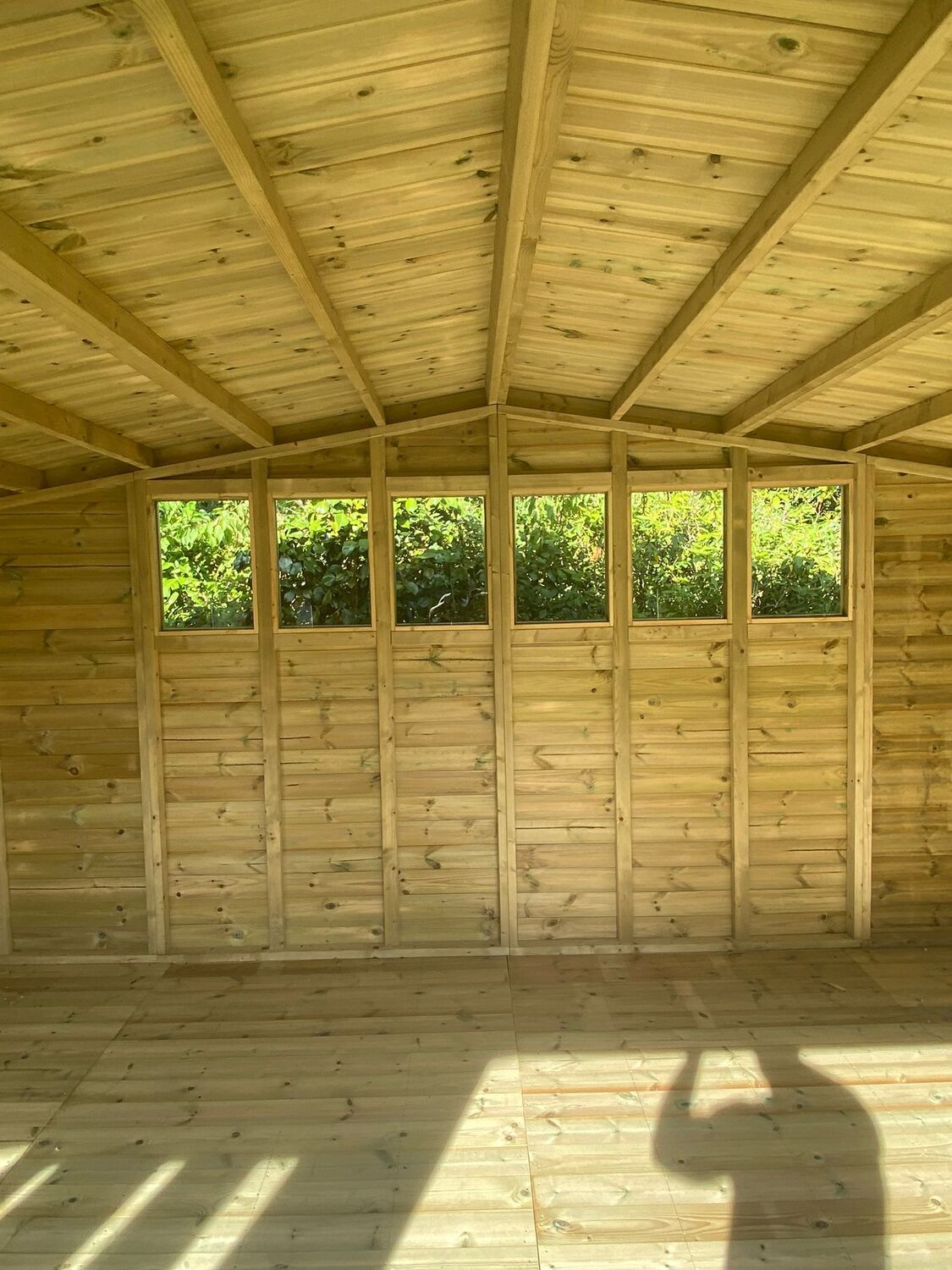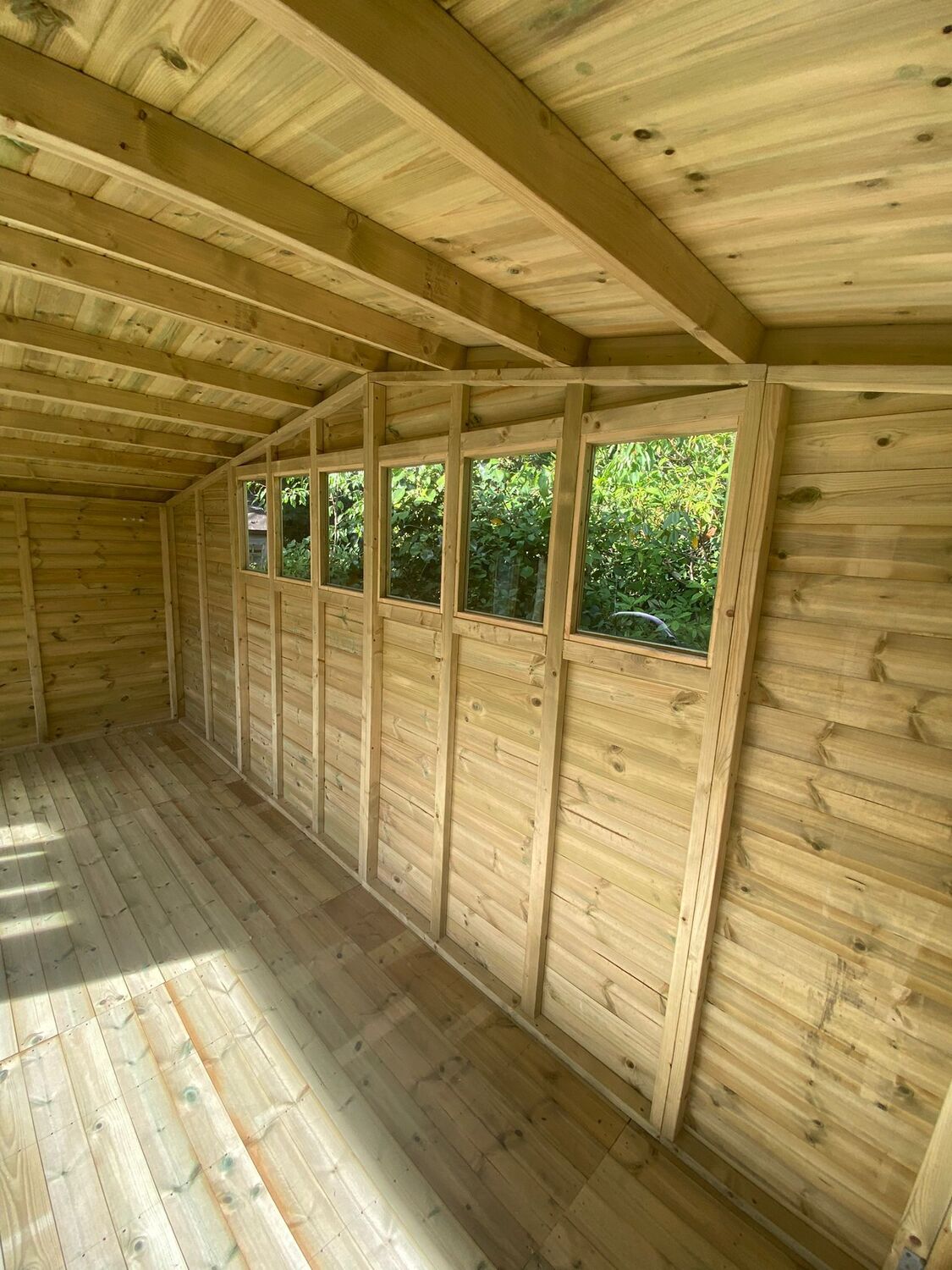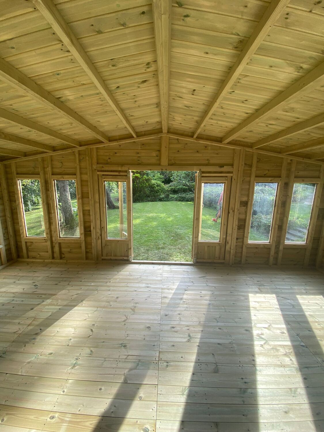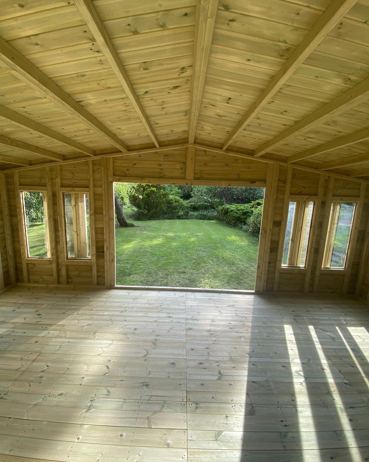 This summer house includes our upgraded heavier duty 4x2 framework in the roof which is required because of the 13ft span.