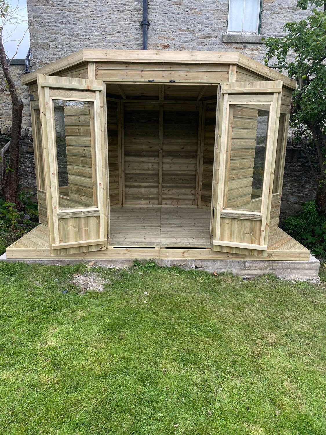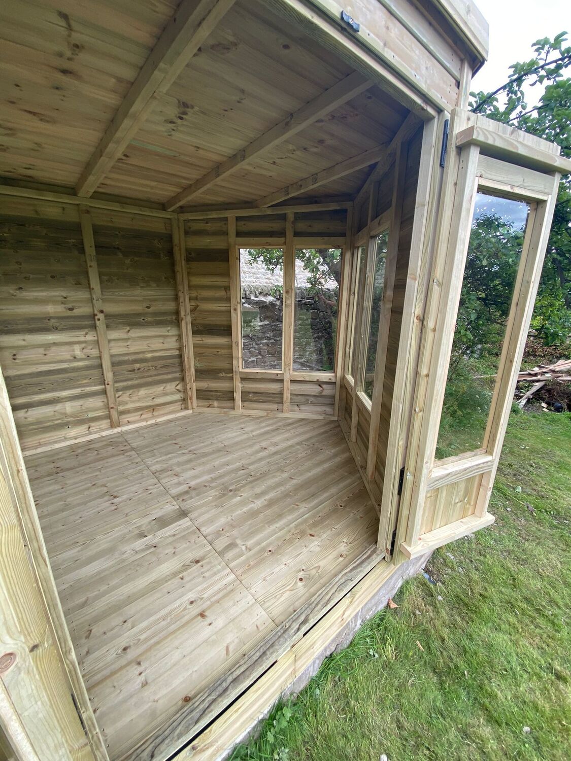 12x8 hexagon summerhouse in our tanalised 19mm T&G.