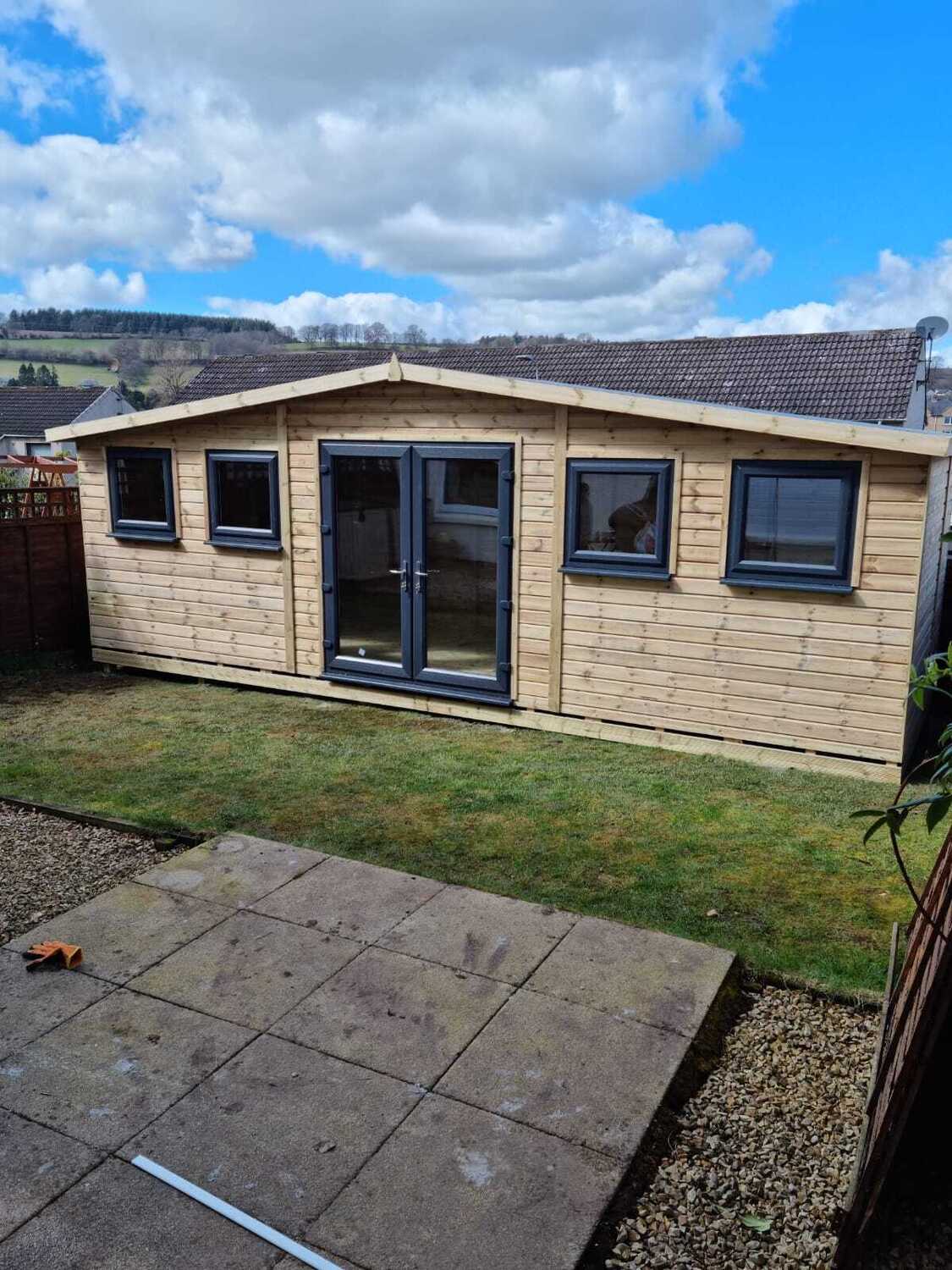 24x8 apex reverse roofed summerhouse in our tanalised 19mm T&G.