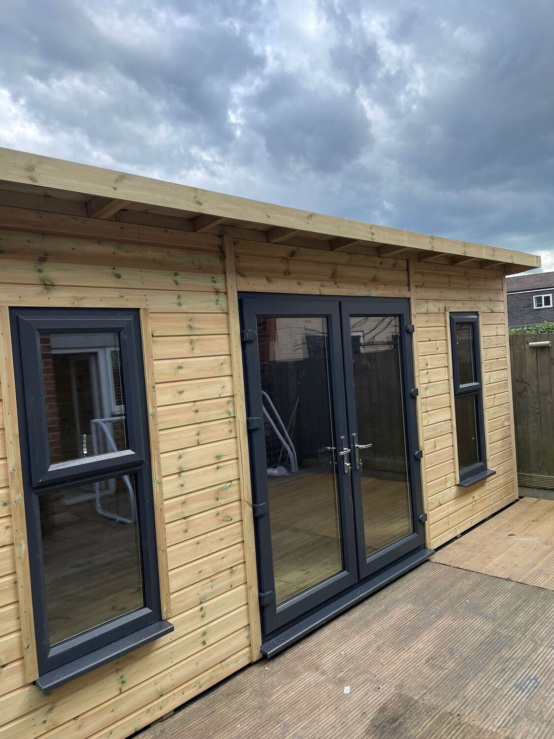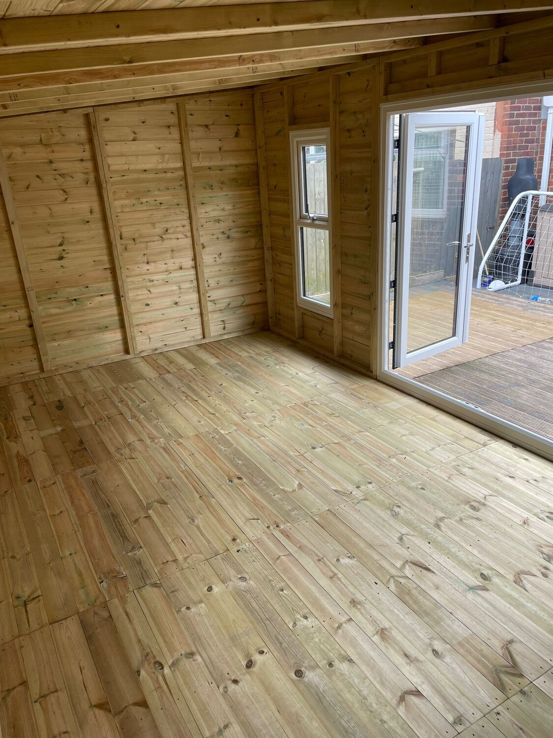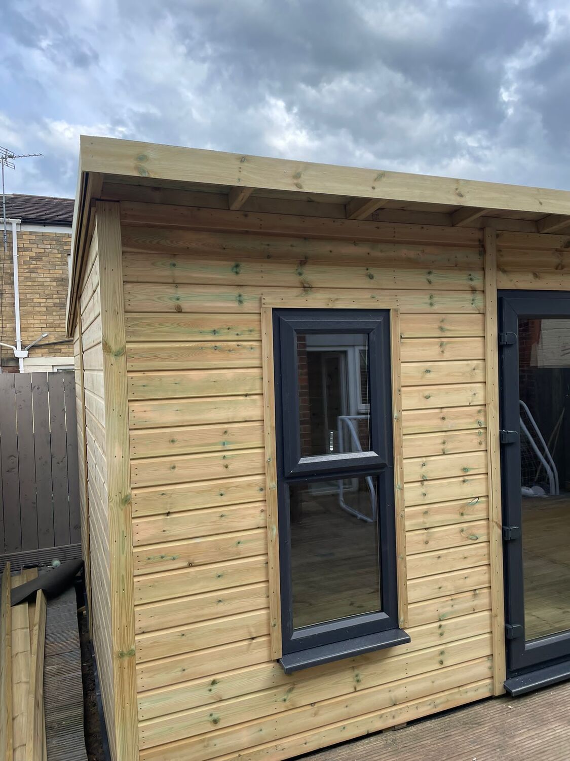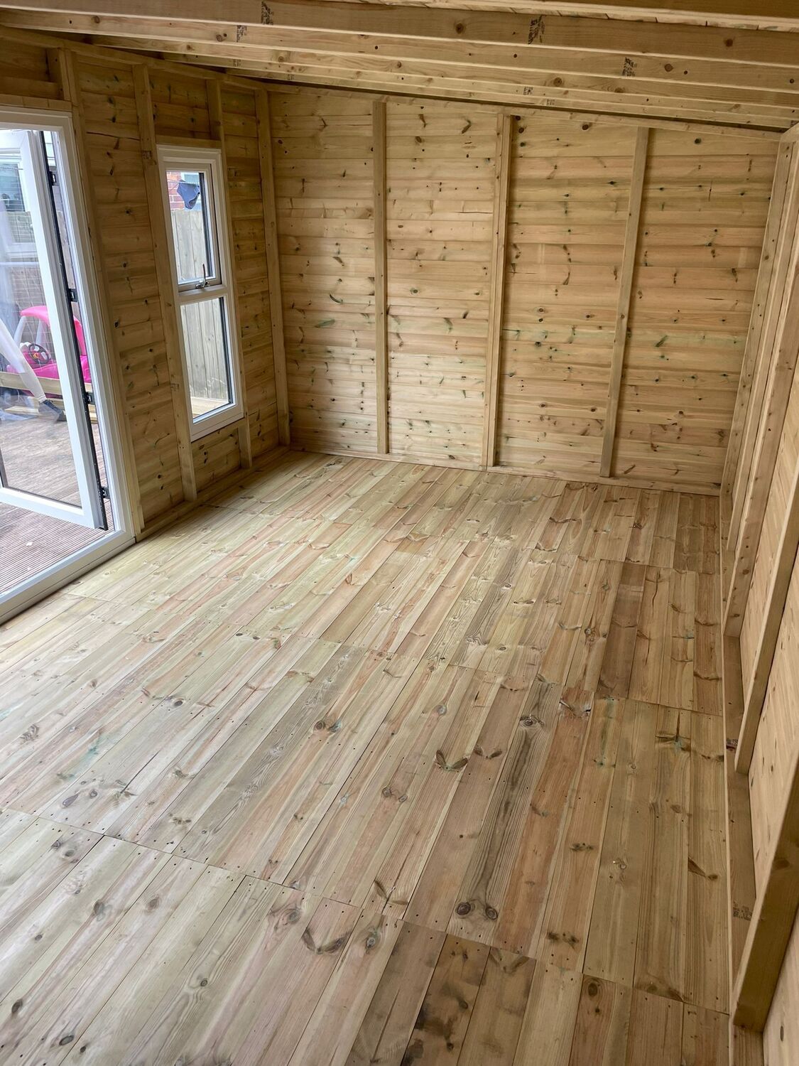 18x10 pent roofed summer house in our tanalised 19mm T&G.