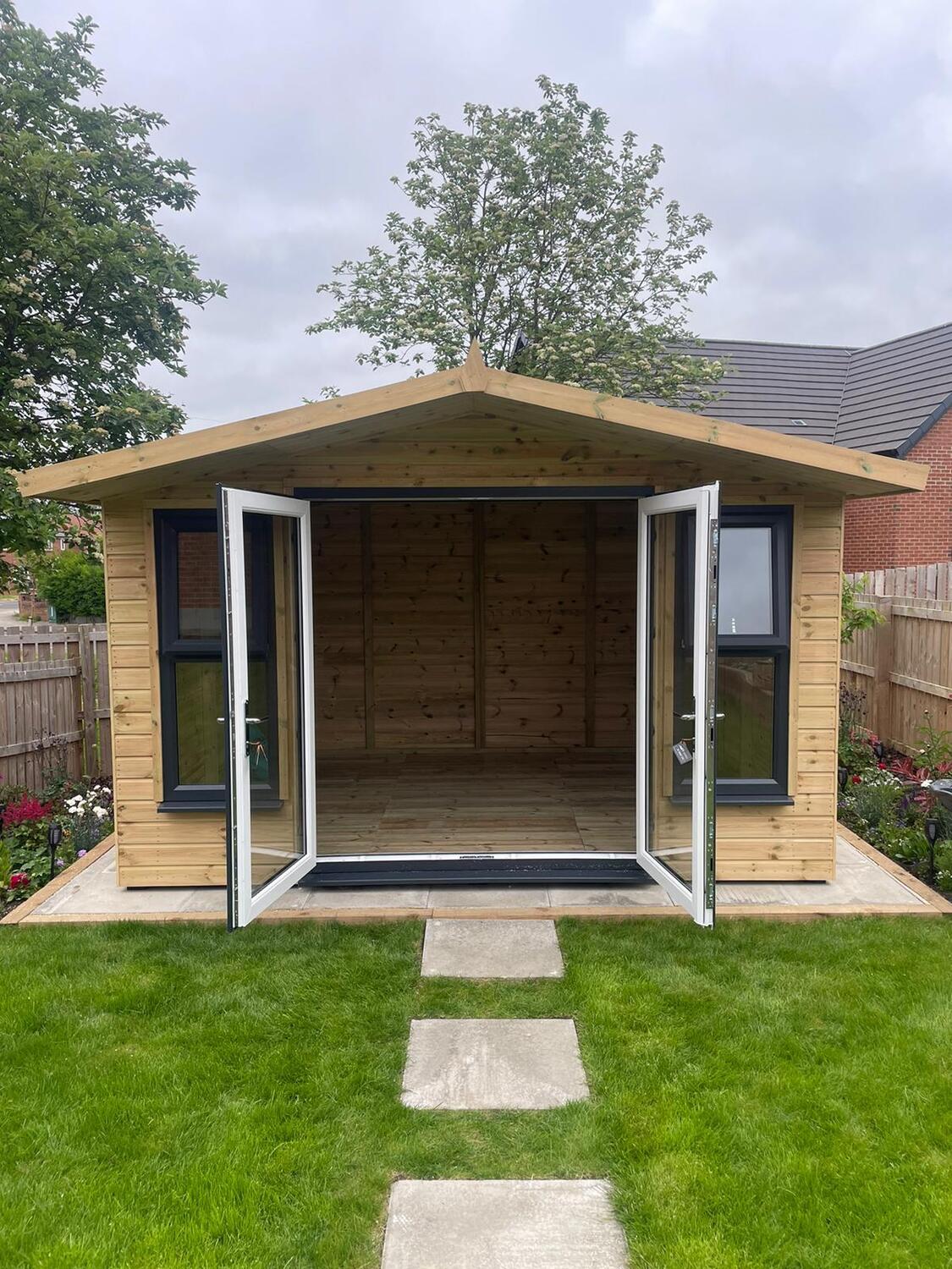 12x10 apex reverse roofed summerhouse in our tanalised 19mm T&G.