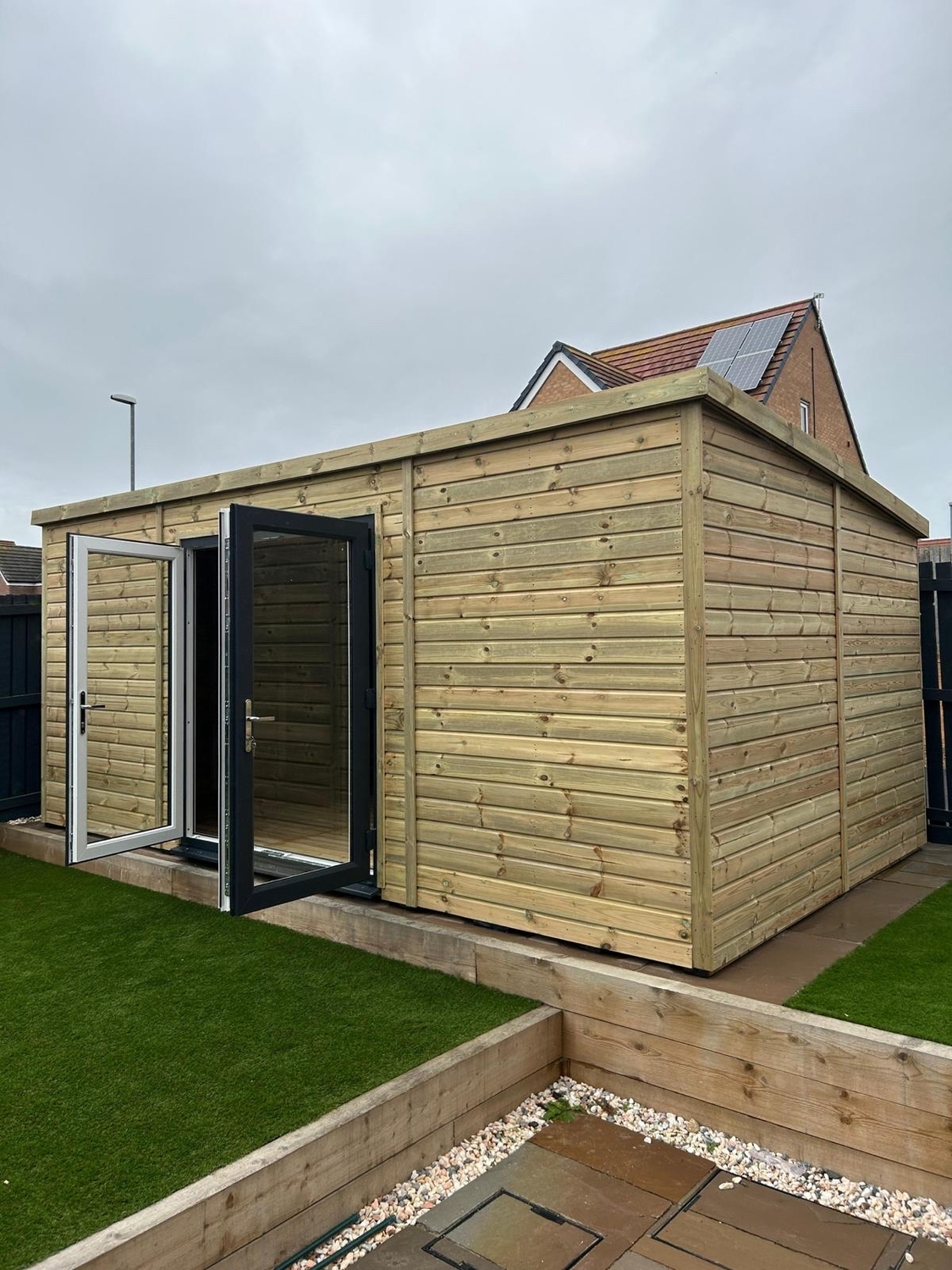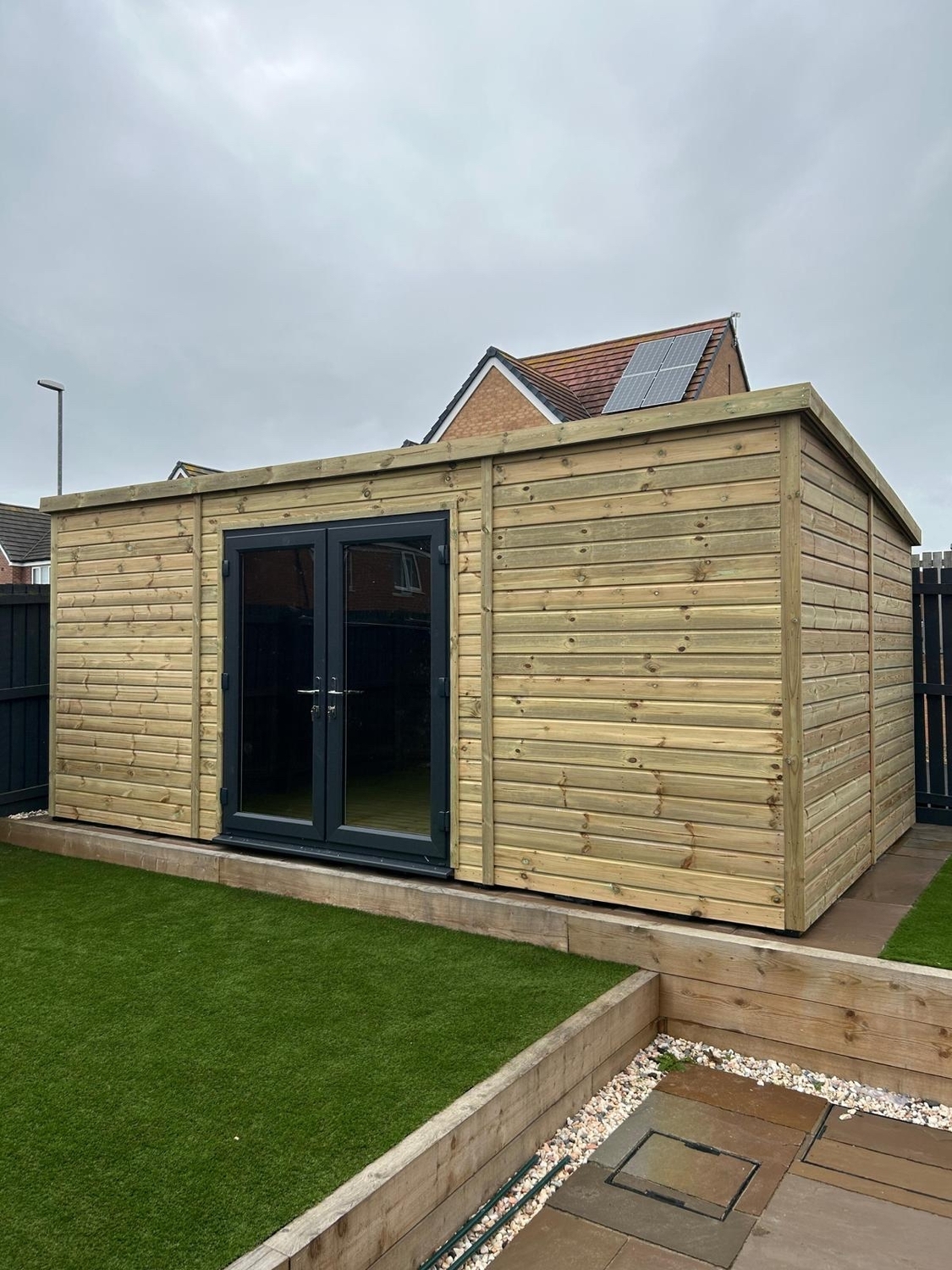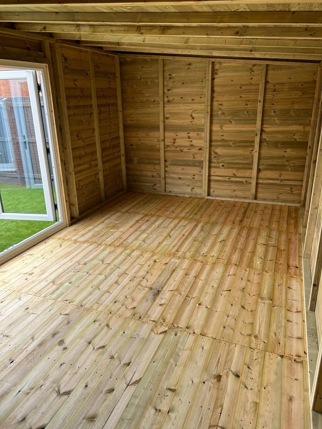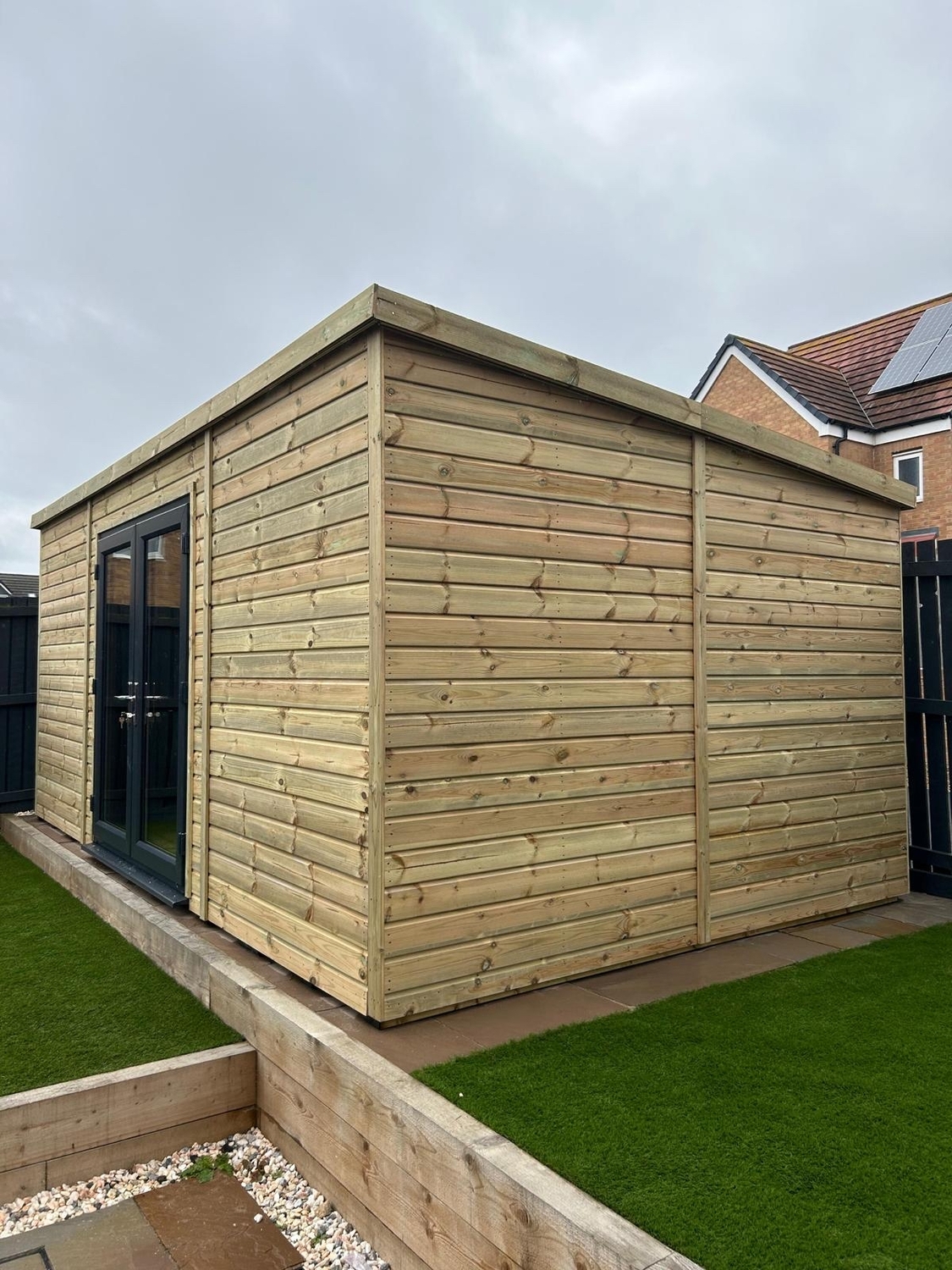 18x10 pent roofed summer house in our tanalised 19mm T&G.