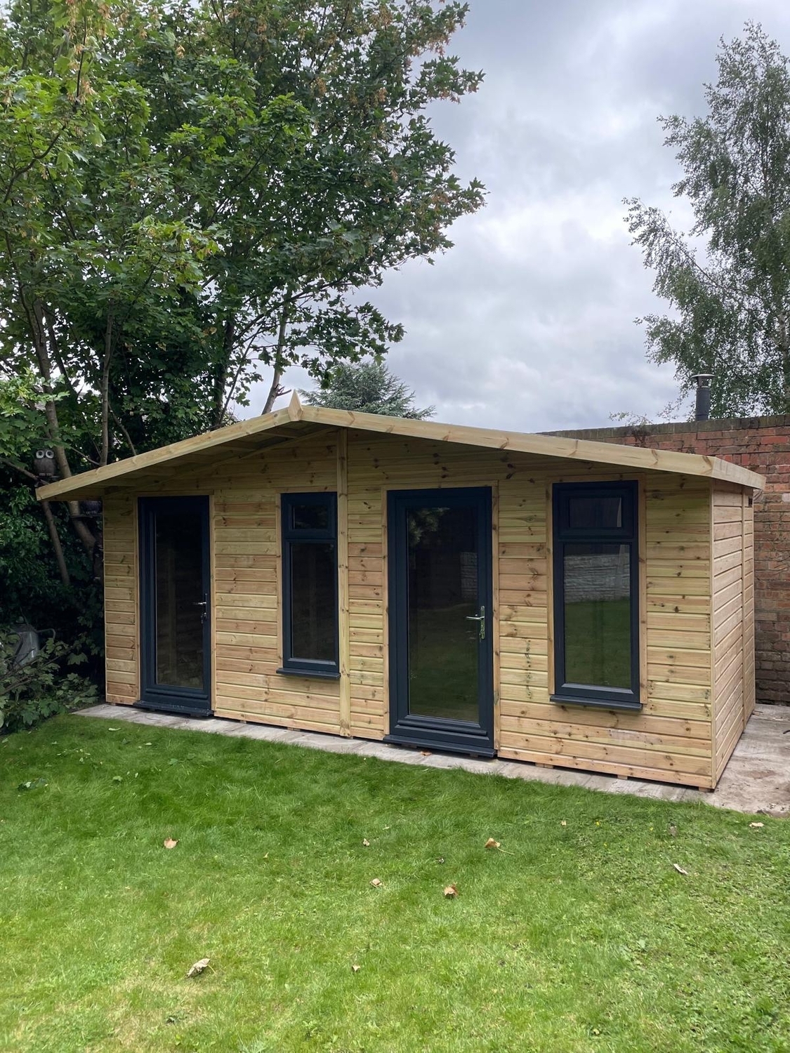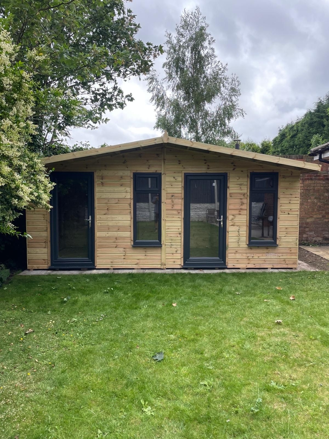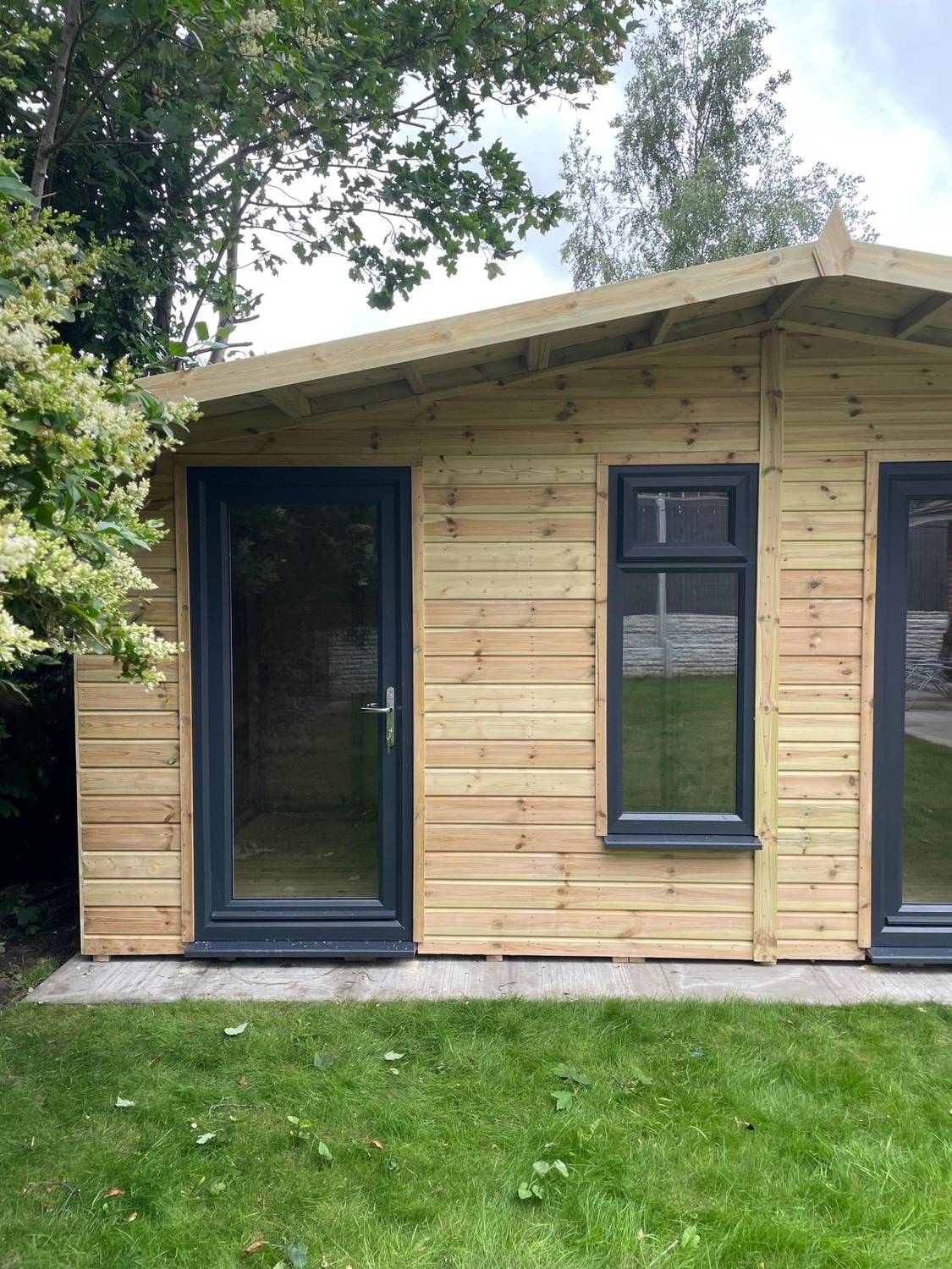 18x8 apex reverse roofed summerhouse in our tanalised 19mm T&G.