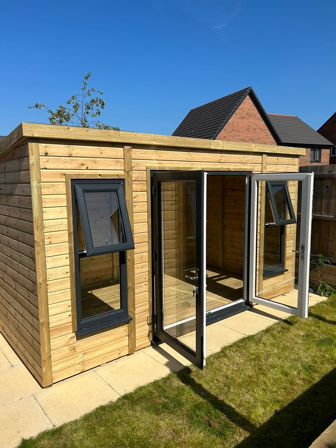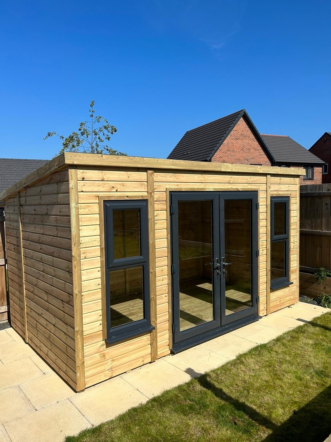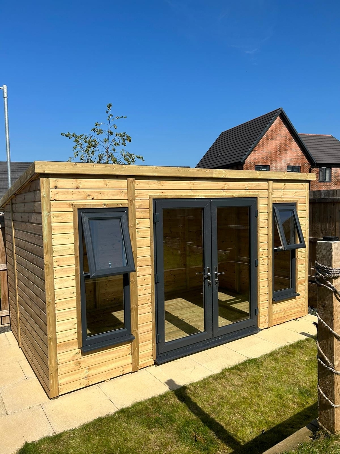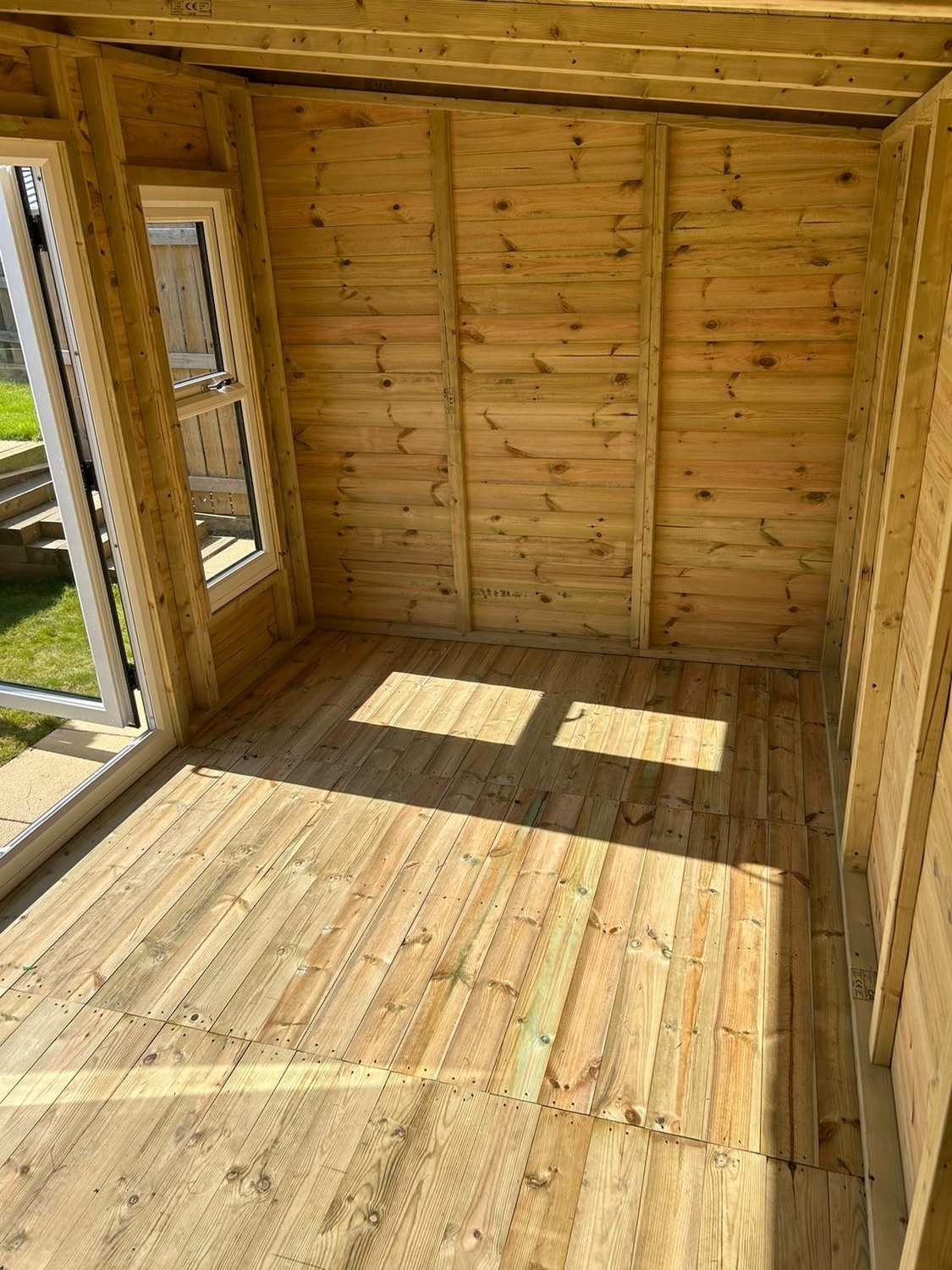 14x8 pent roofed summer house in our tanalised 19mm T&G.