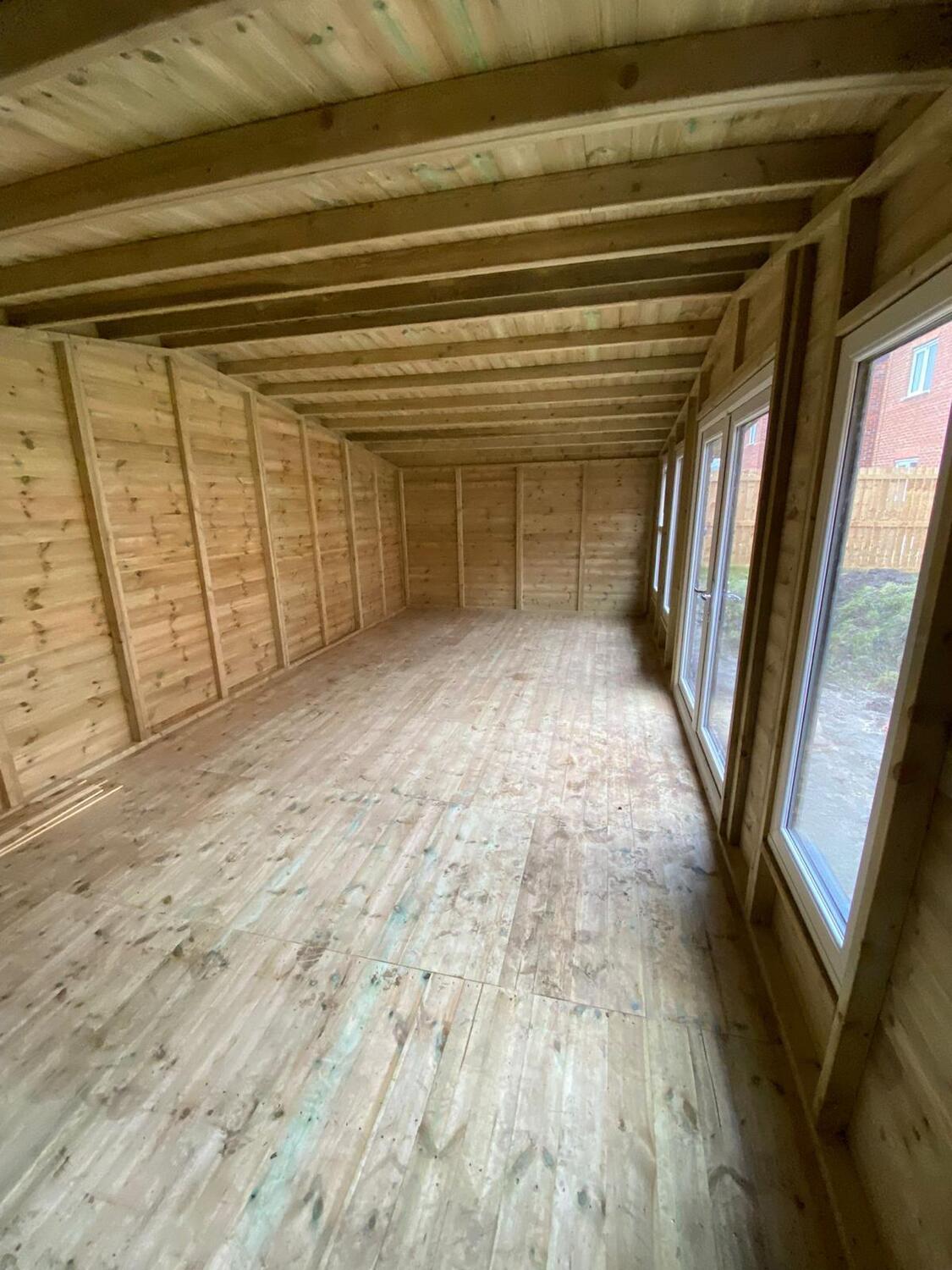 The summerhouse is 24ft wide at the front where the doors are and 10ft deep.