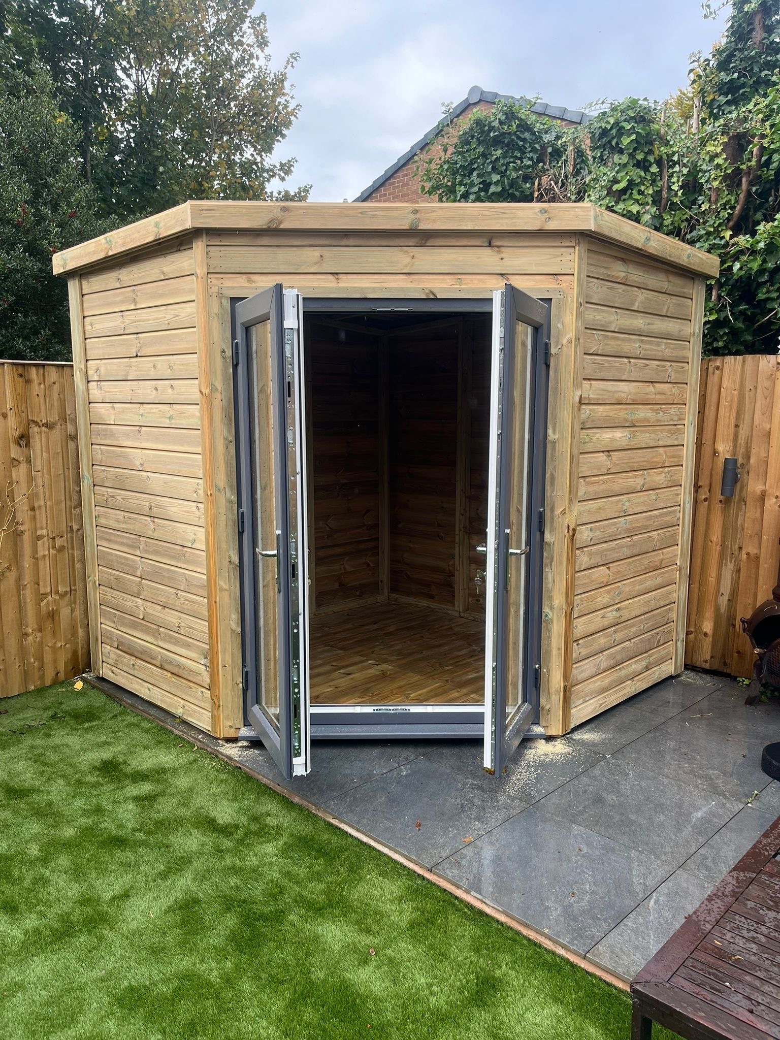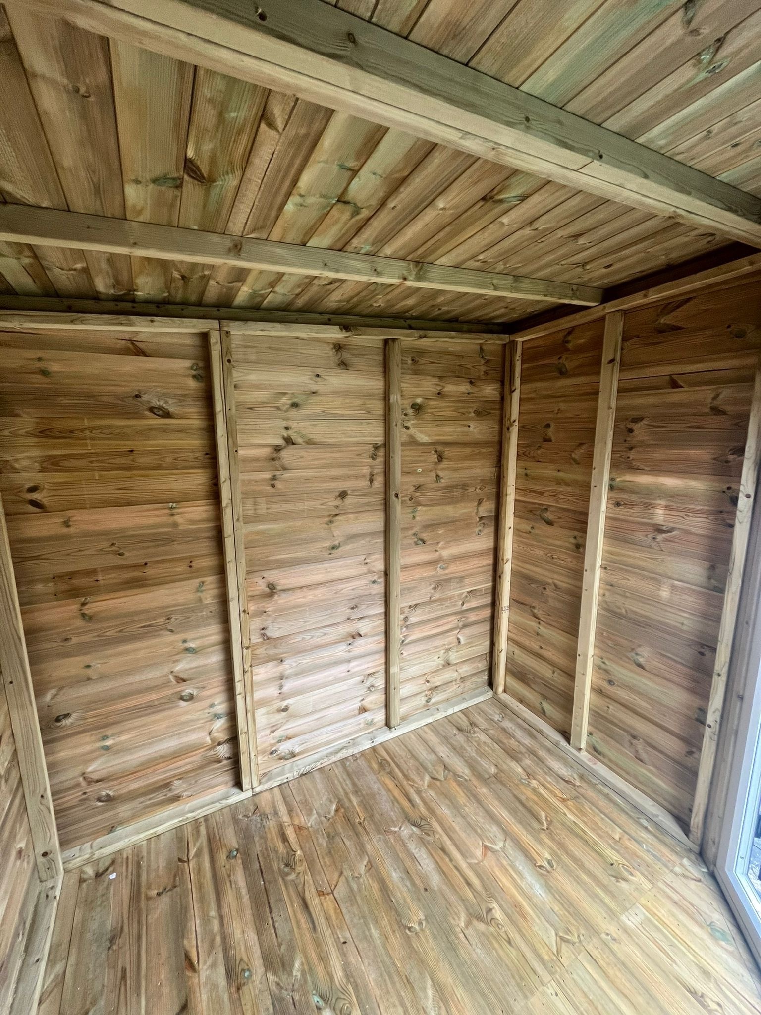 8x8 corner summerhouse in our tanalised 19mm T&G.