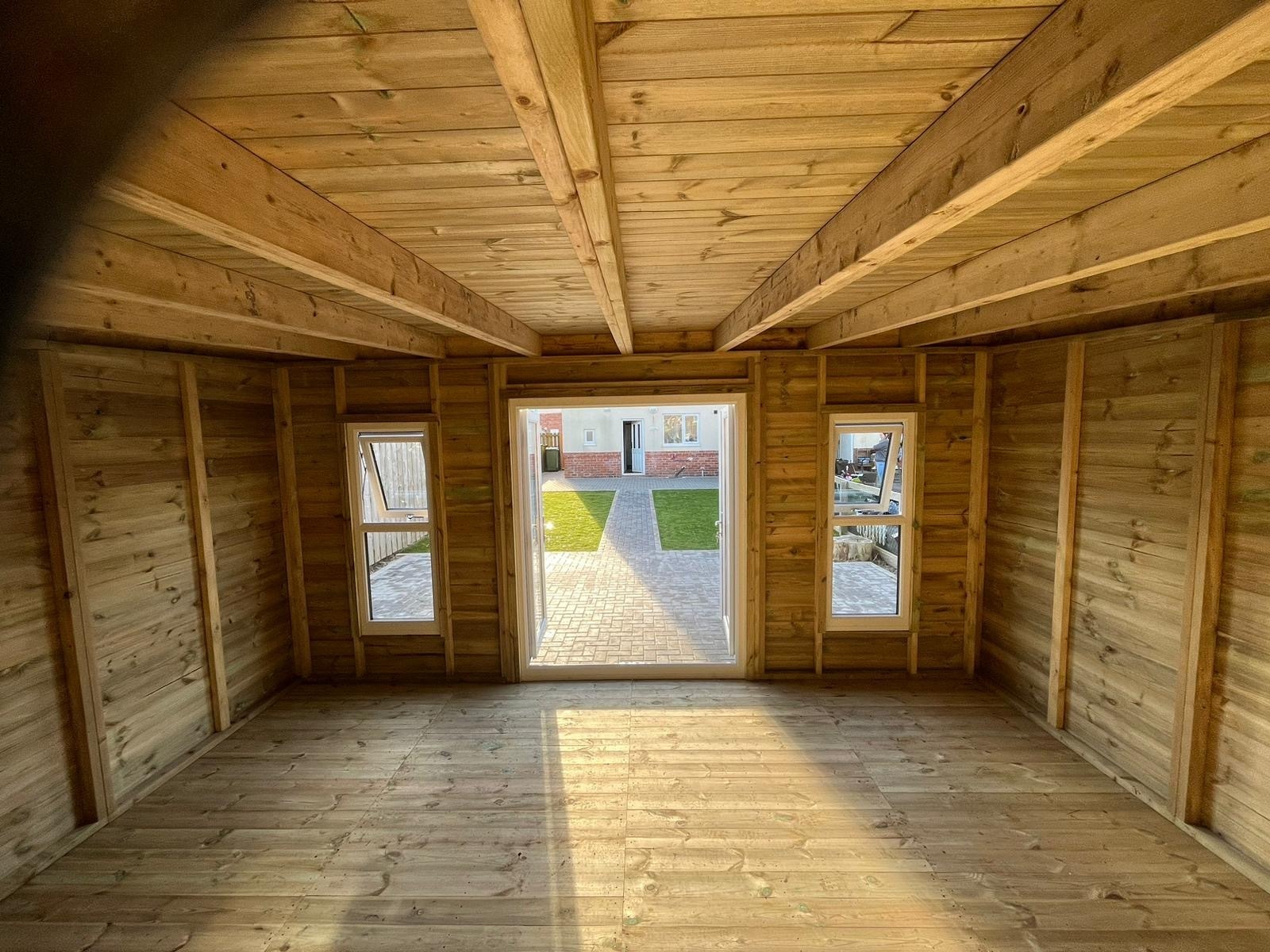 16x14 pent roofed summer house in our tanalised 19mm T&G.