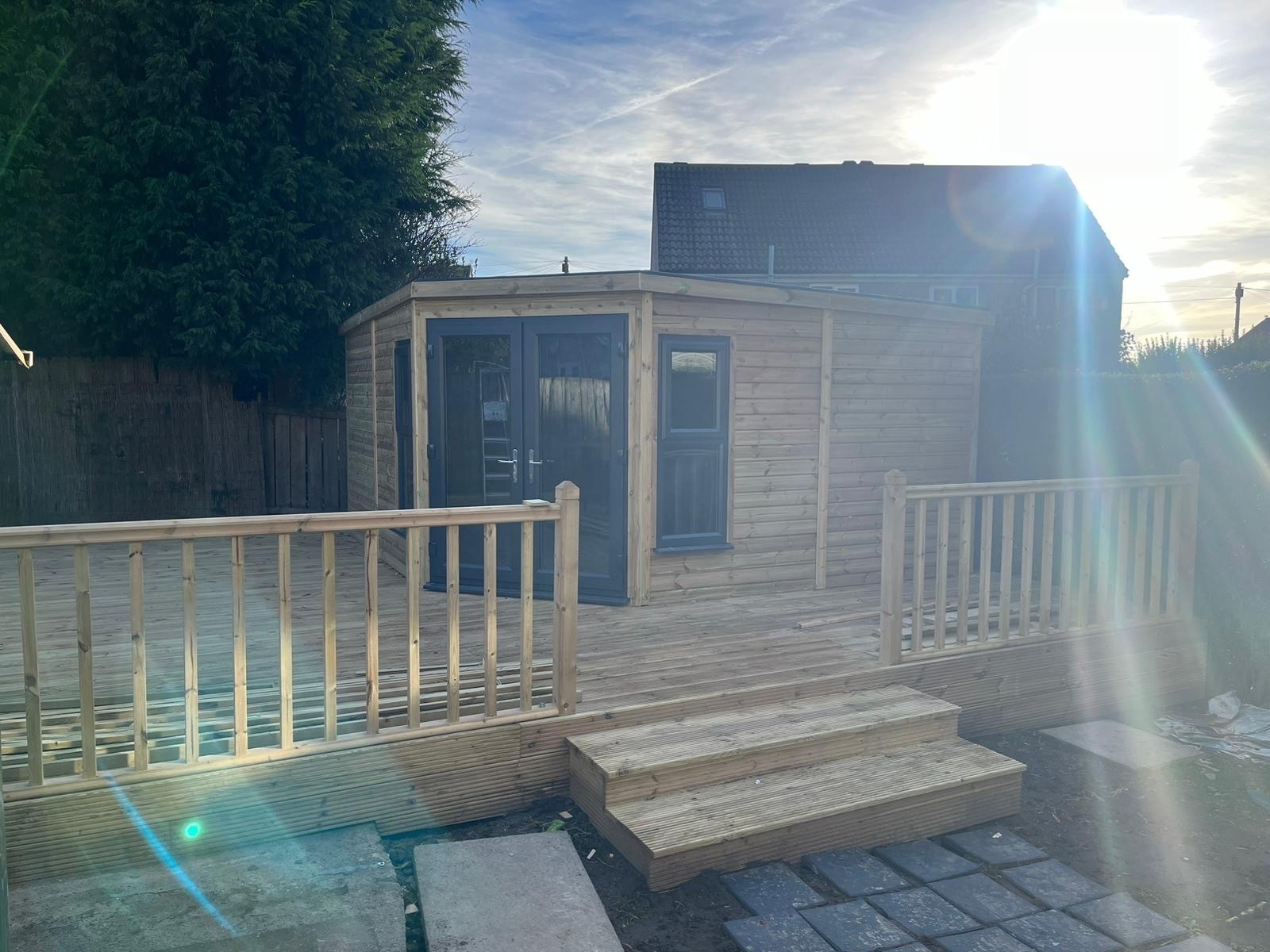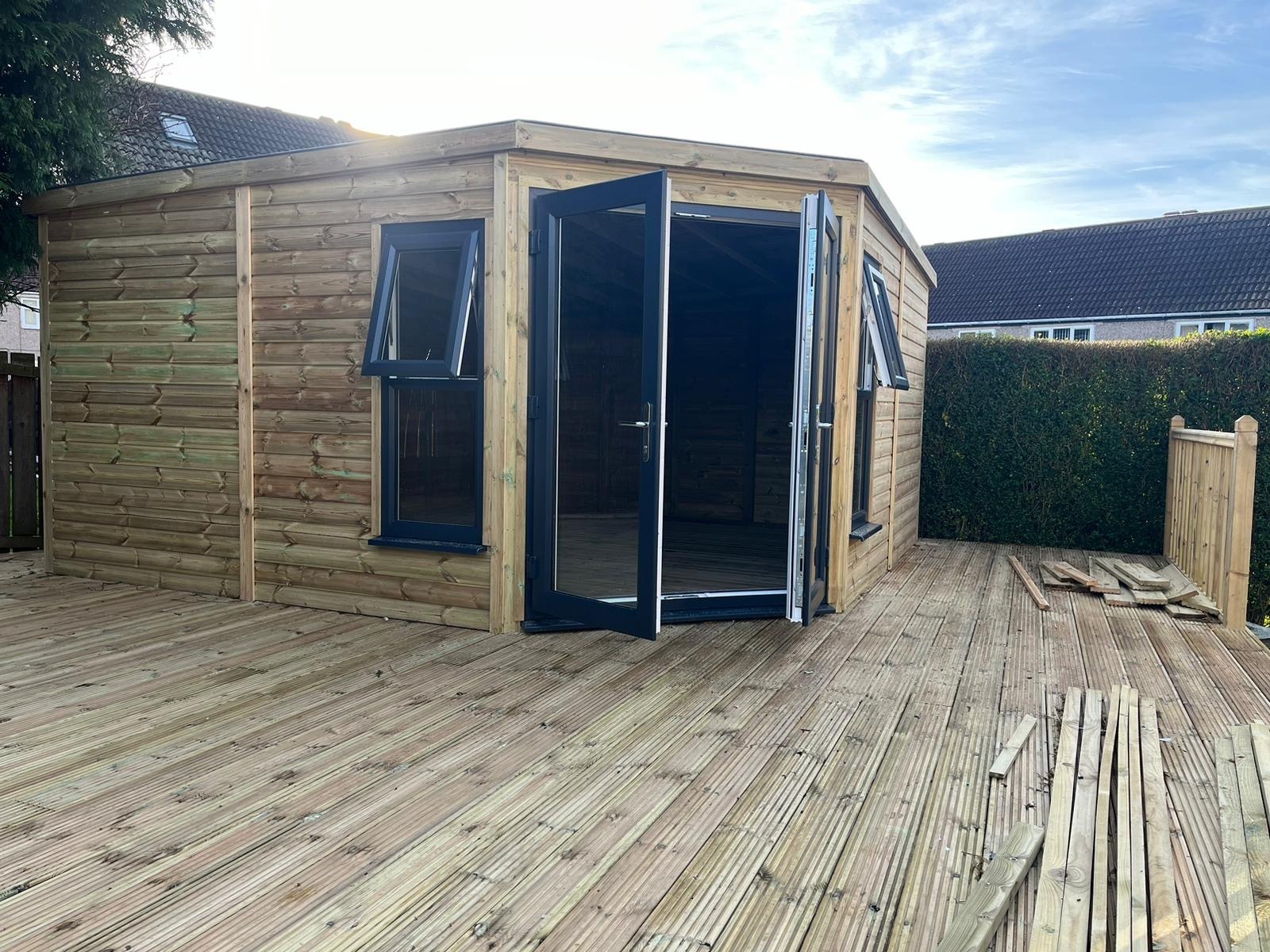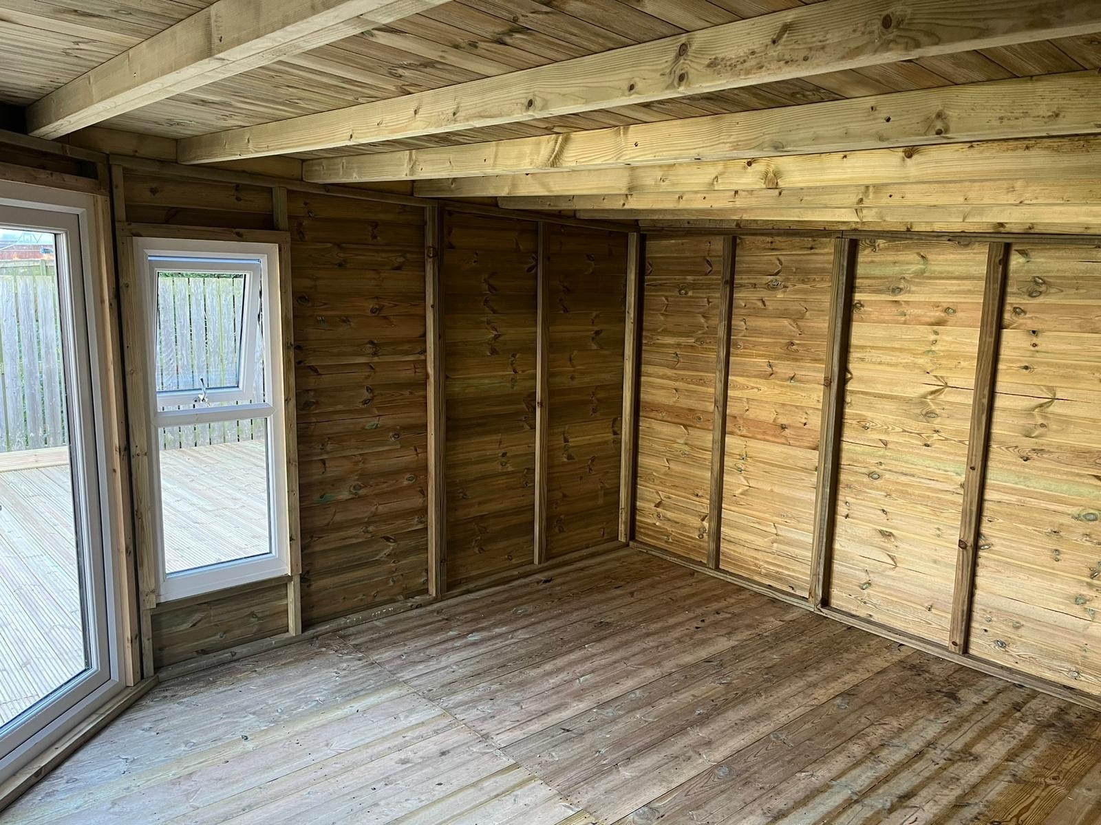 14x14 corner summerhouse in our tanalised 19mm T&G.