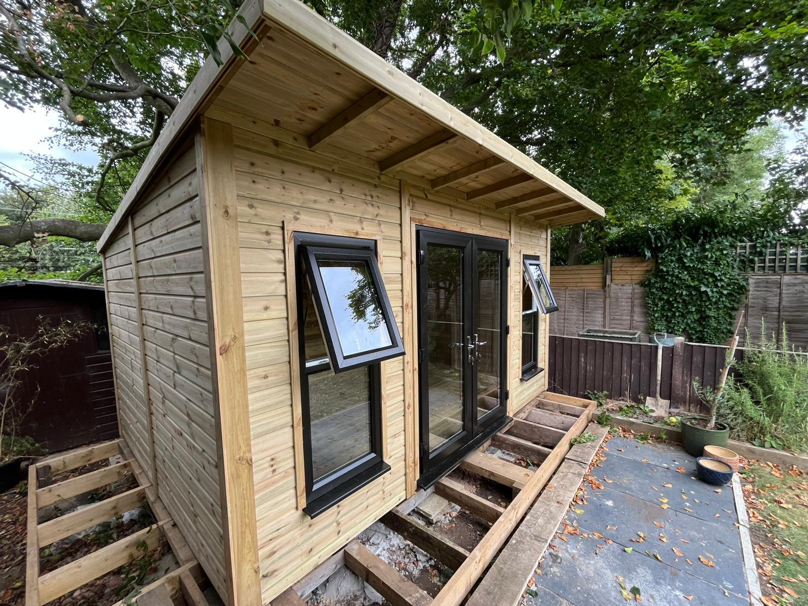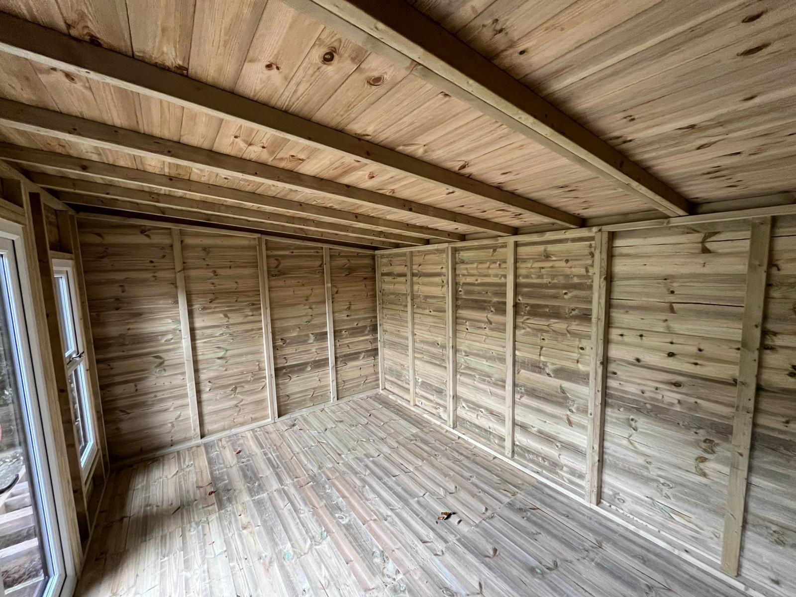 14x8 pent roofed summer house in our tanalised 19mm T&G.