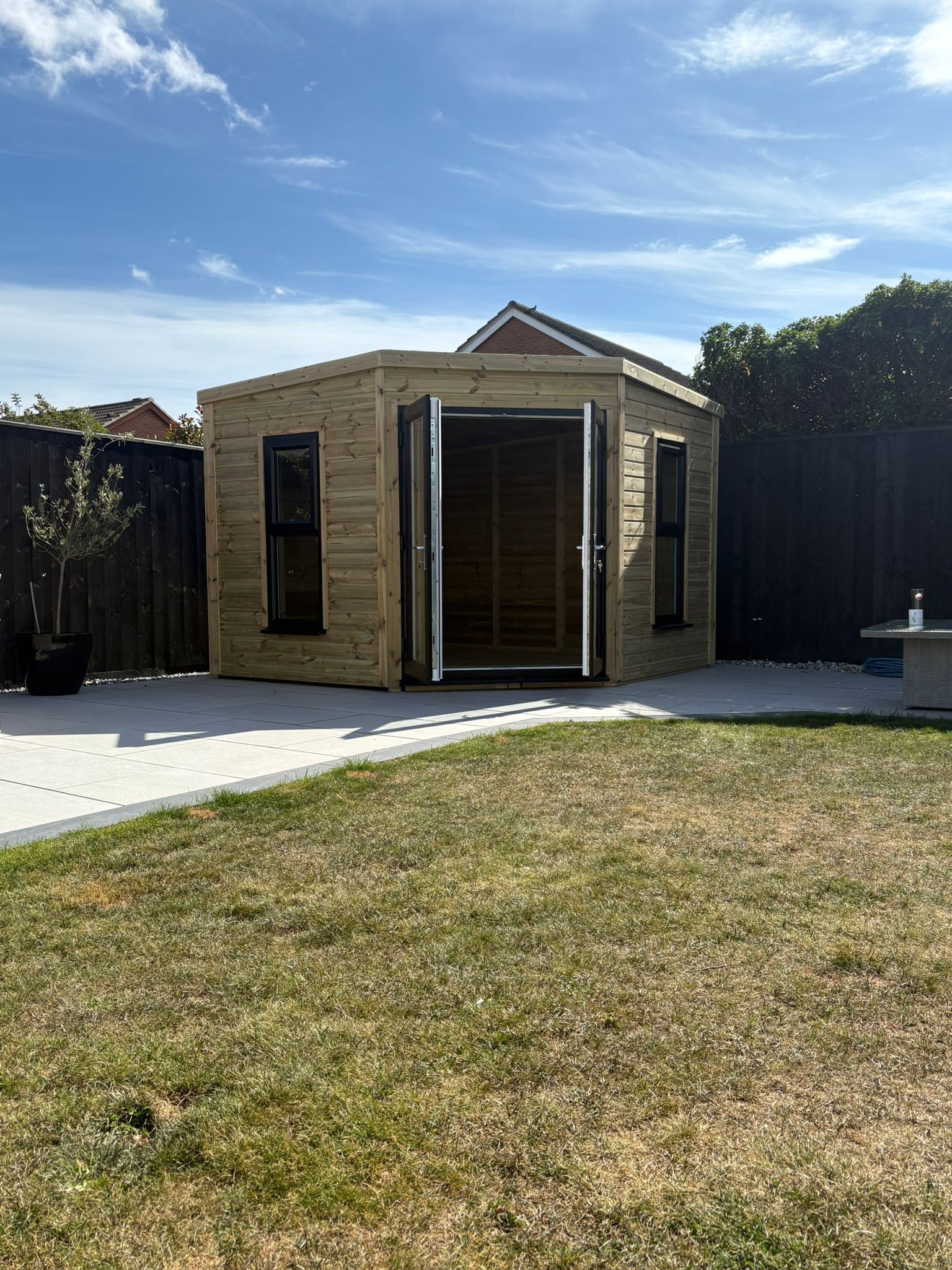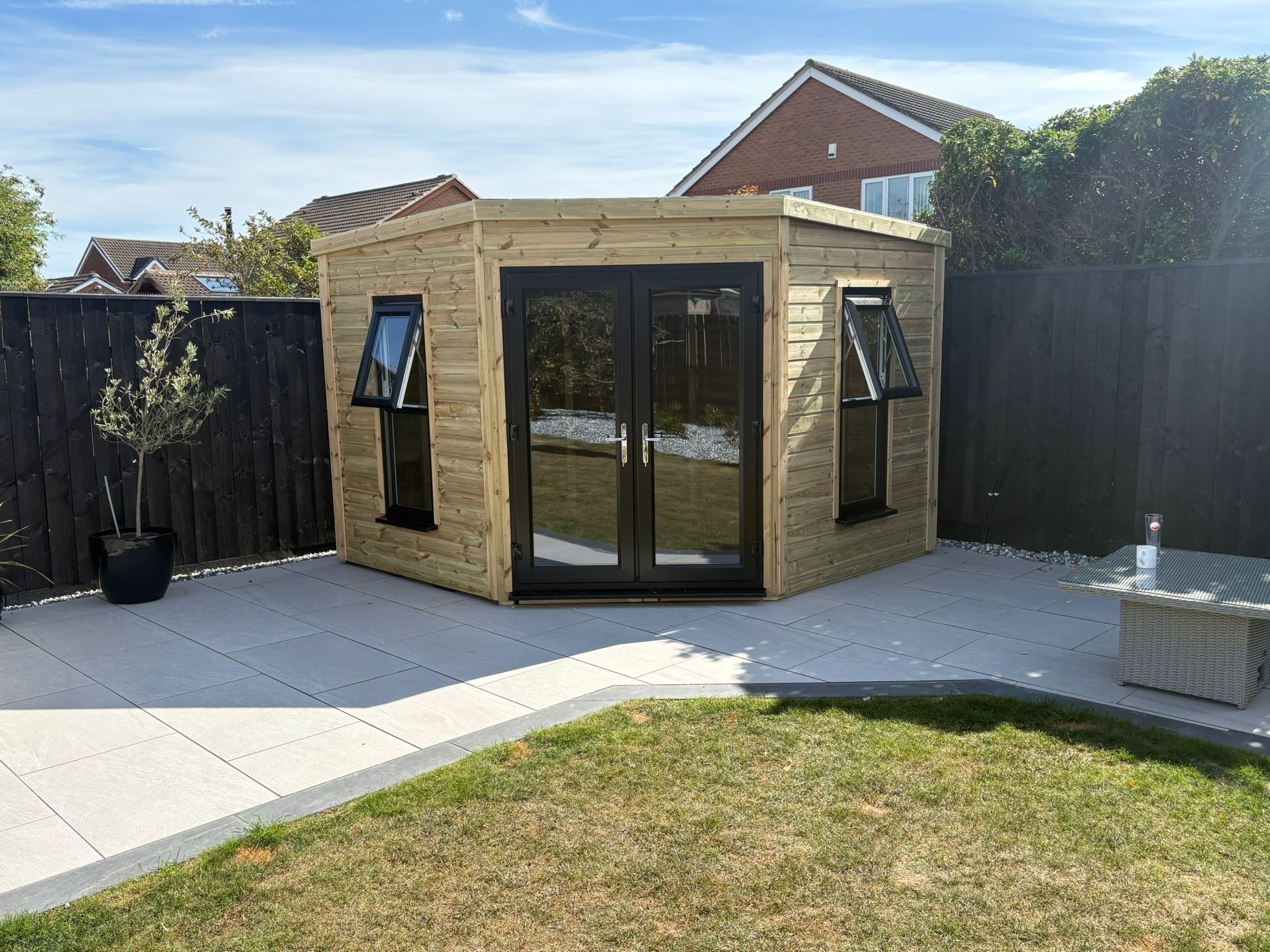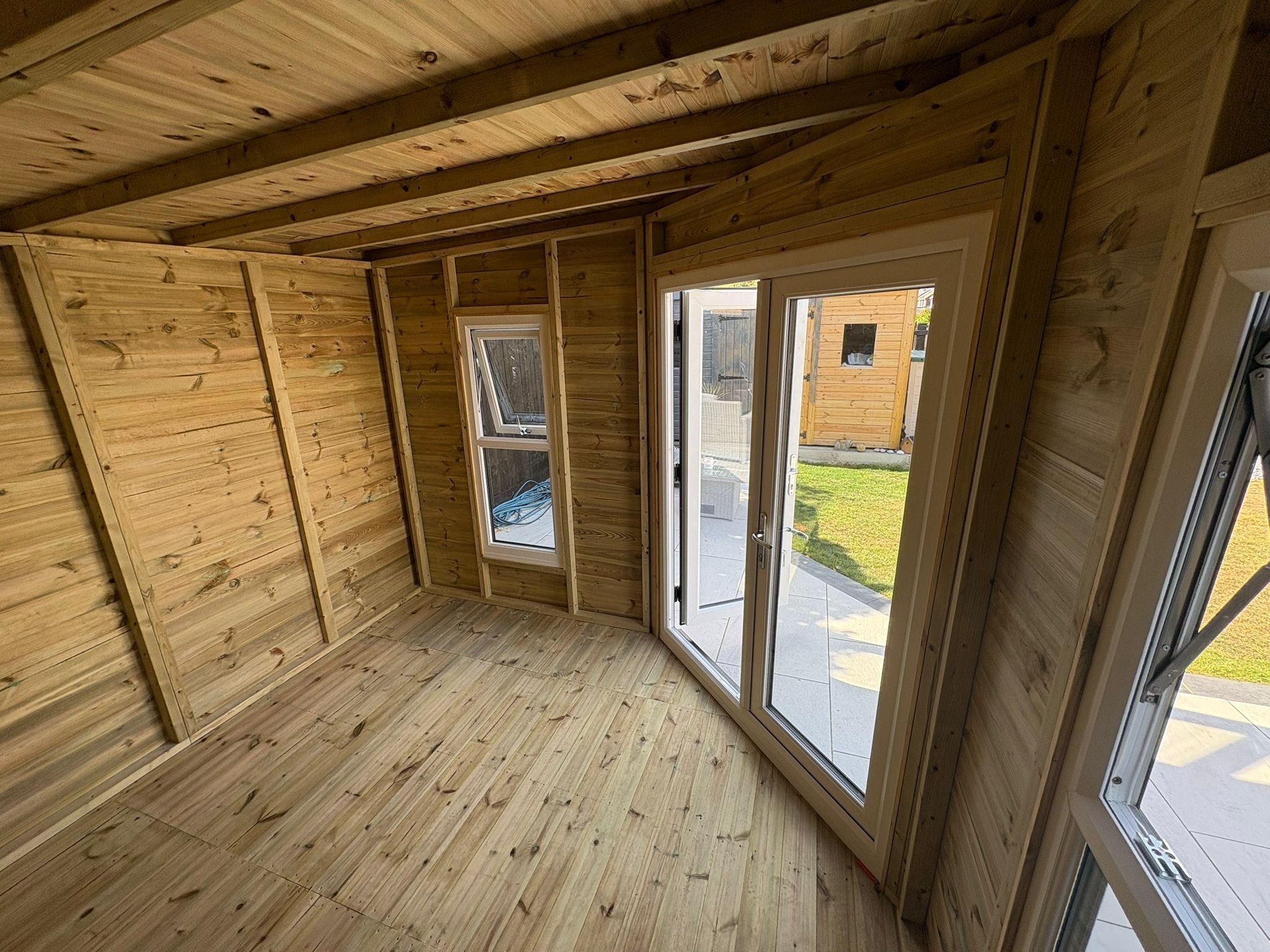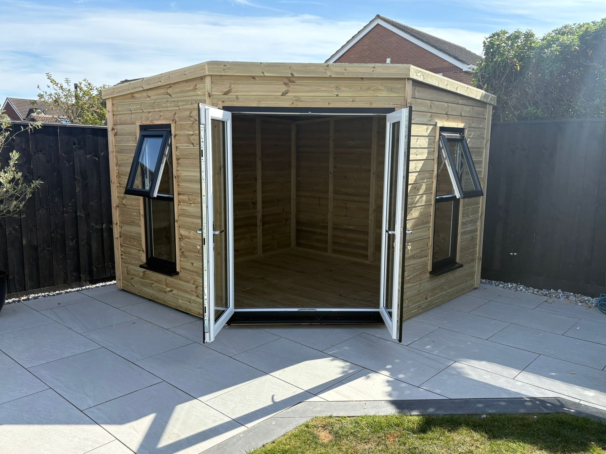 10x10 corner summerhouse in our tanalised 19mm T&G.
