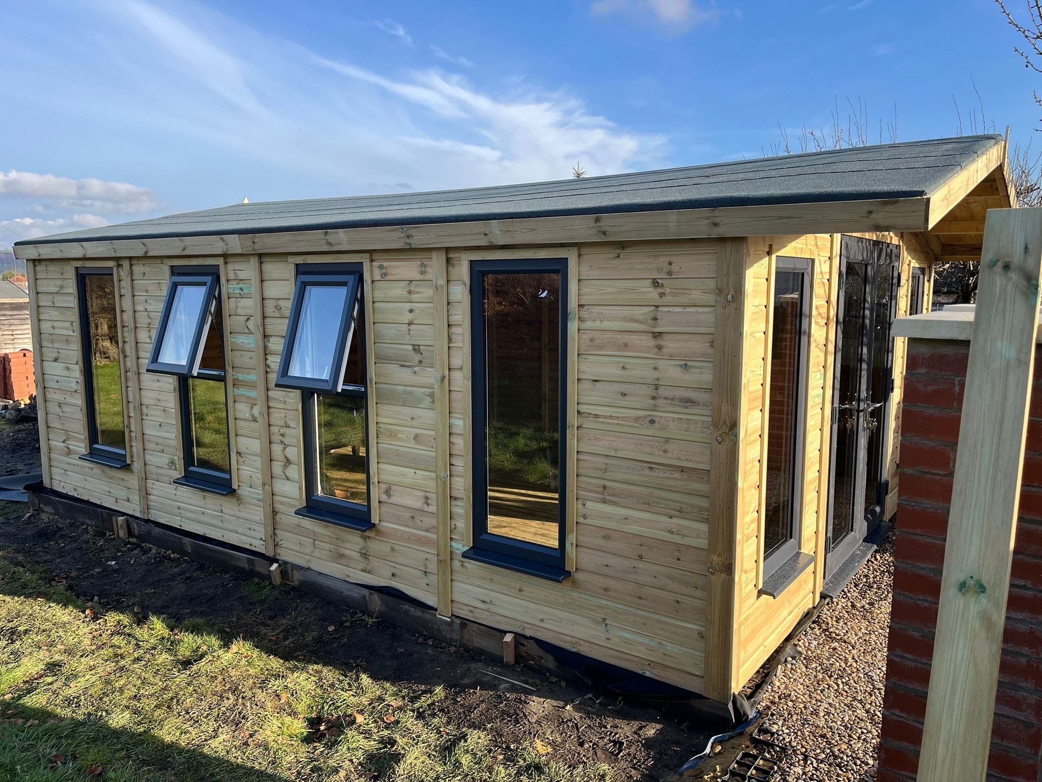 This summer house has our upgraded 4x2 cls framework in the roof which is required because of the 14ft span.