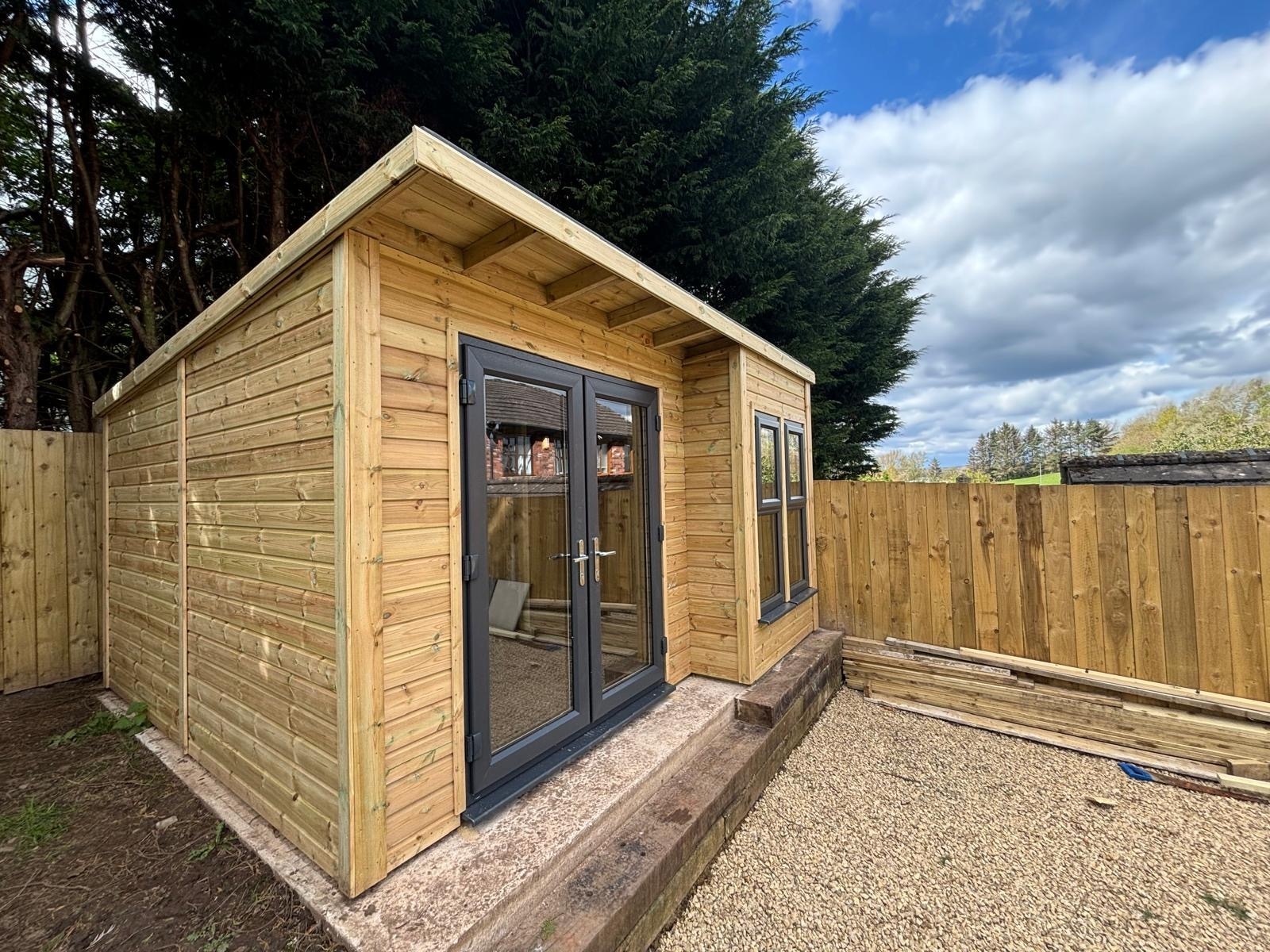 13x13 pent roofed summer house in our tanalised 19mm T&G.