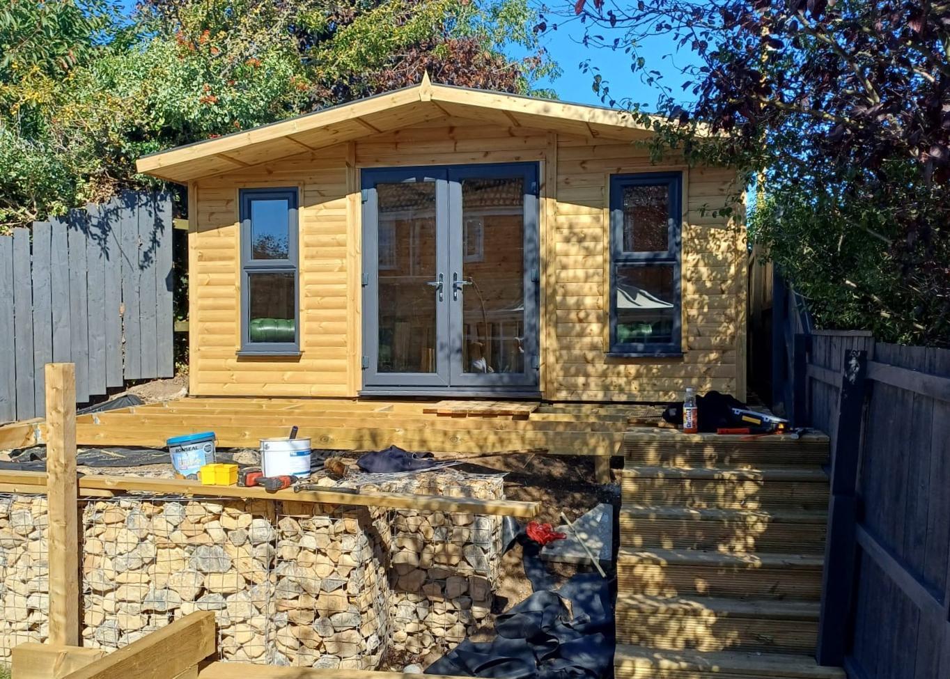 16x10 apex reverse roofed summerhouse in our tanalised 28mm t&g loglap.
