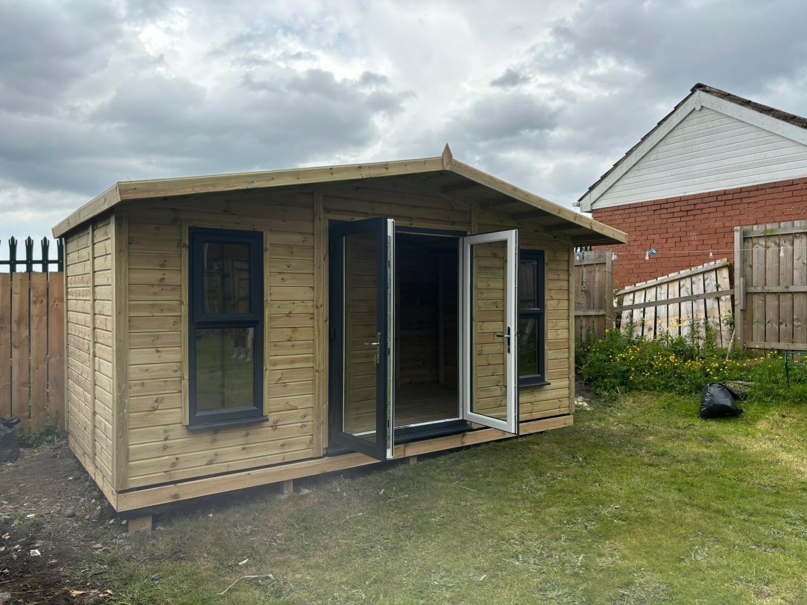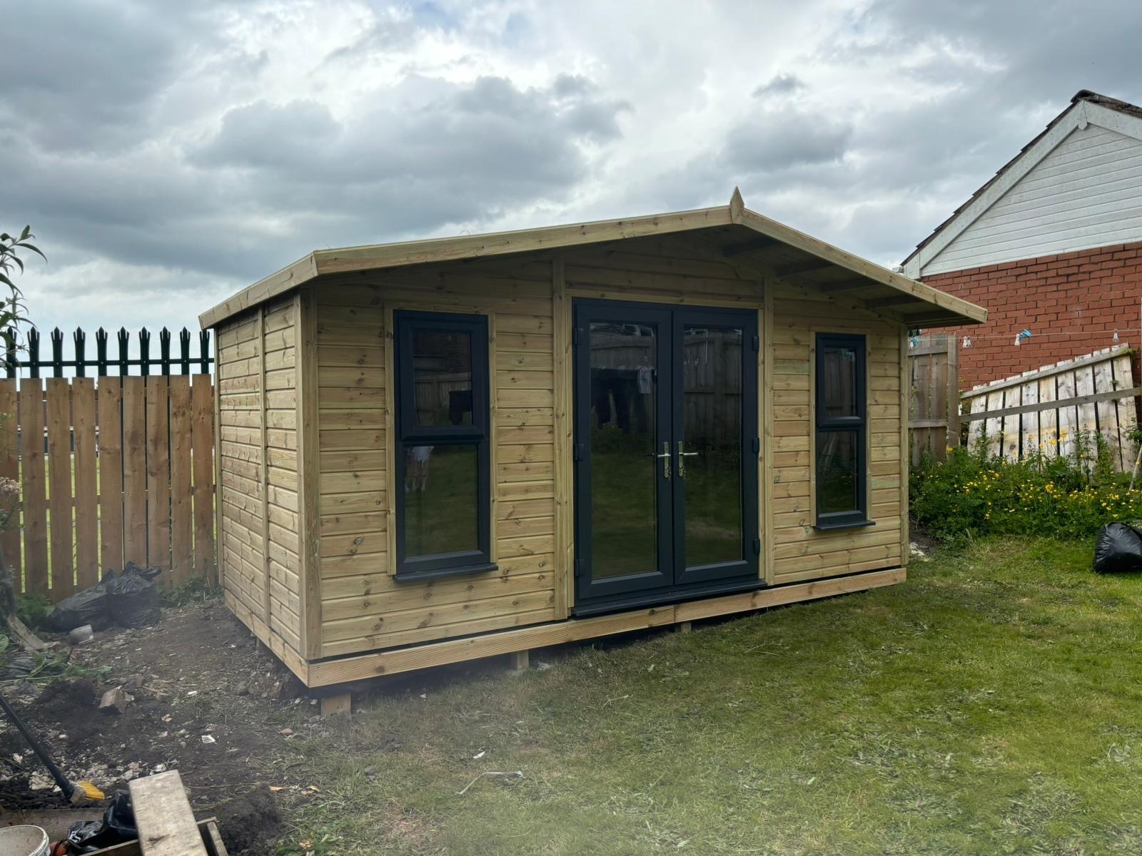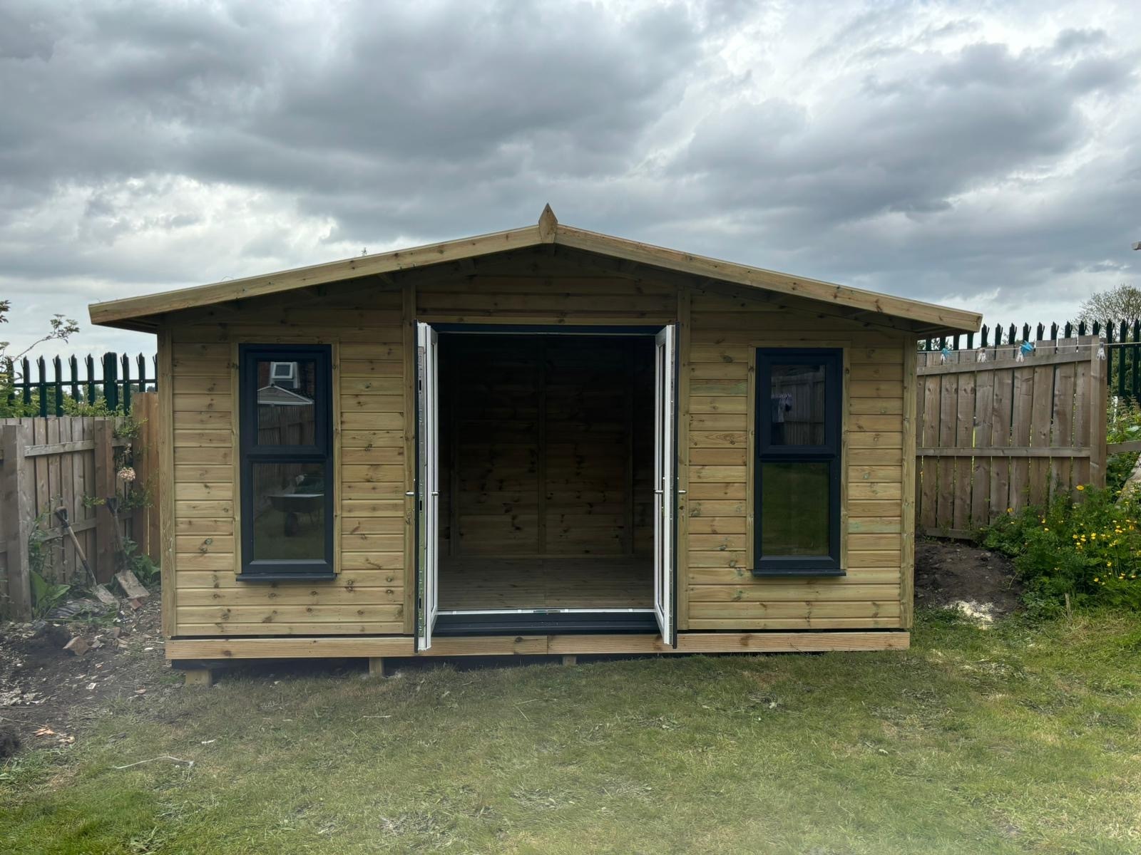 16x8 apex reverse roofed summerhouse in our tanalised 19mm T&G.