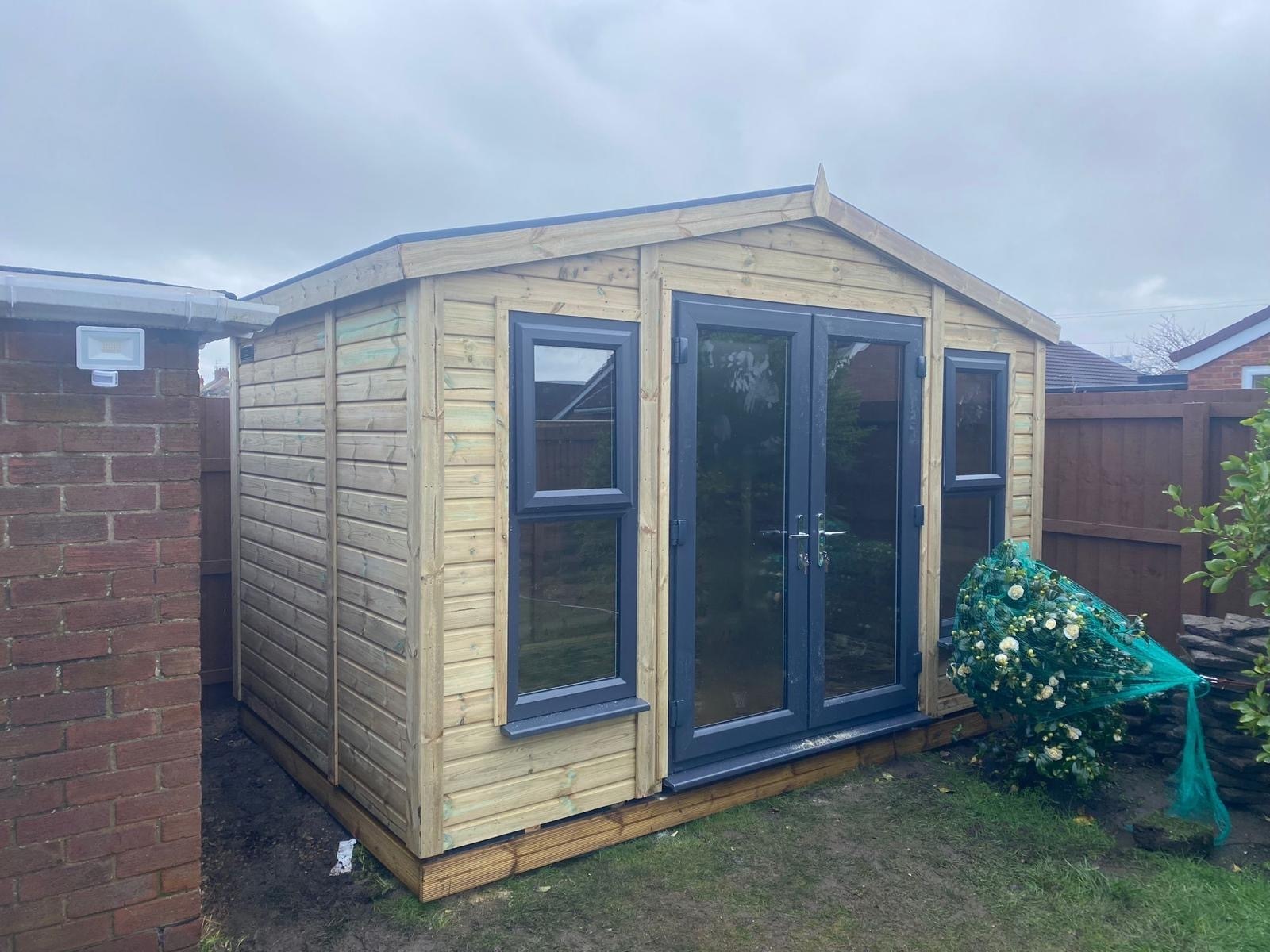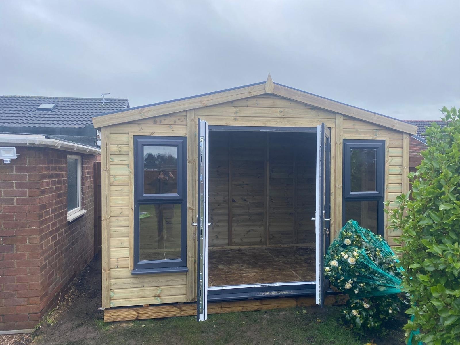 11x10 apex reverse roofed summerhouse in our tanalised 19mm T&G.