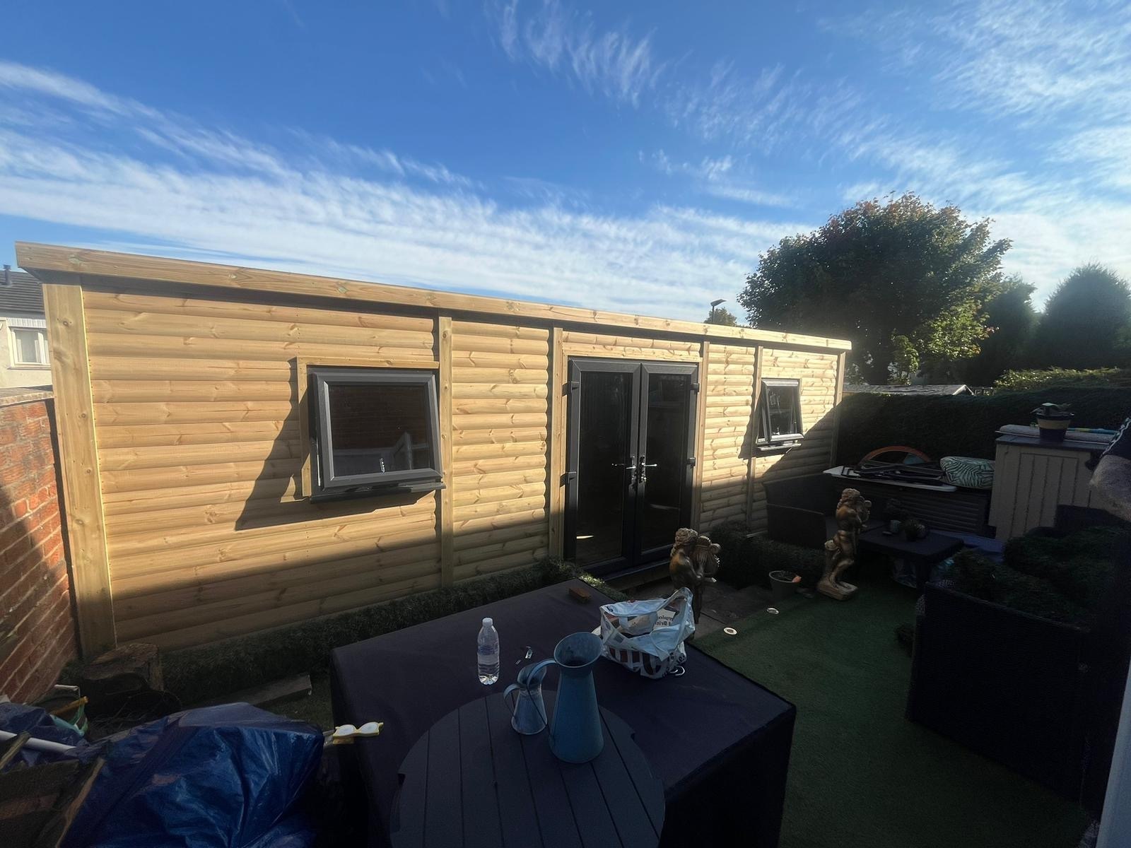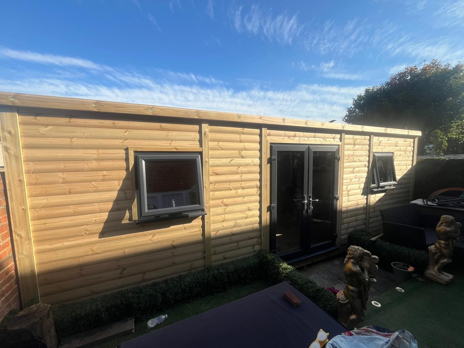 24x10 pent roofed summer house in our tanalised 28mm loglap t&g.