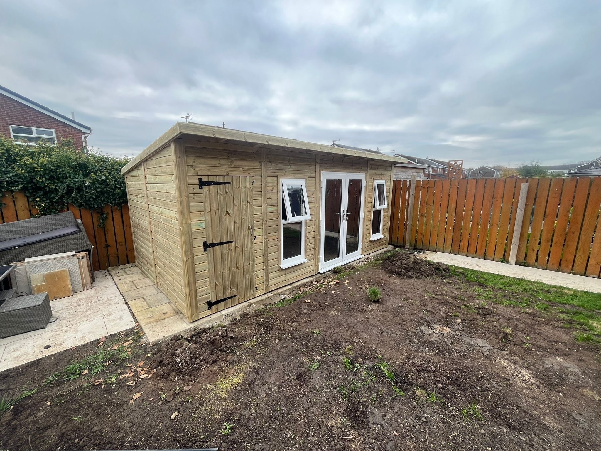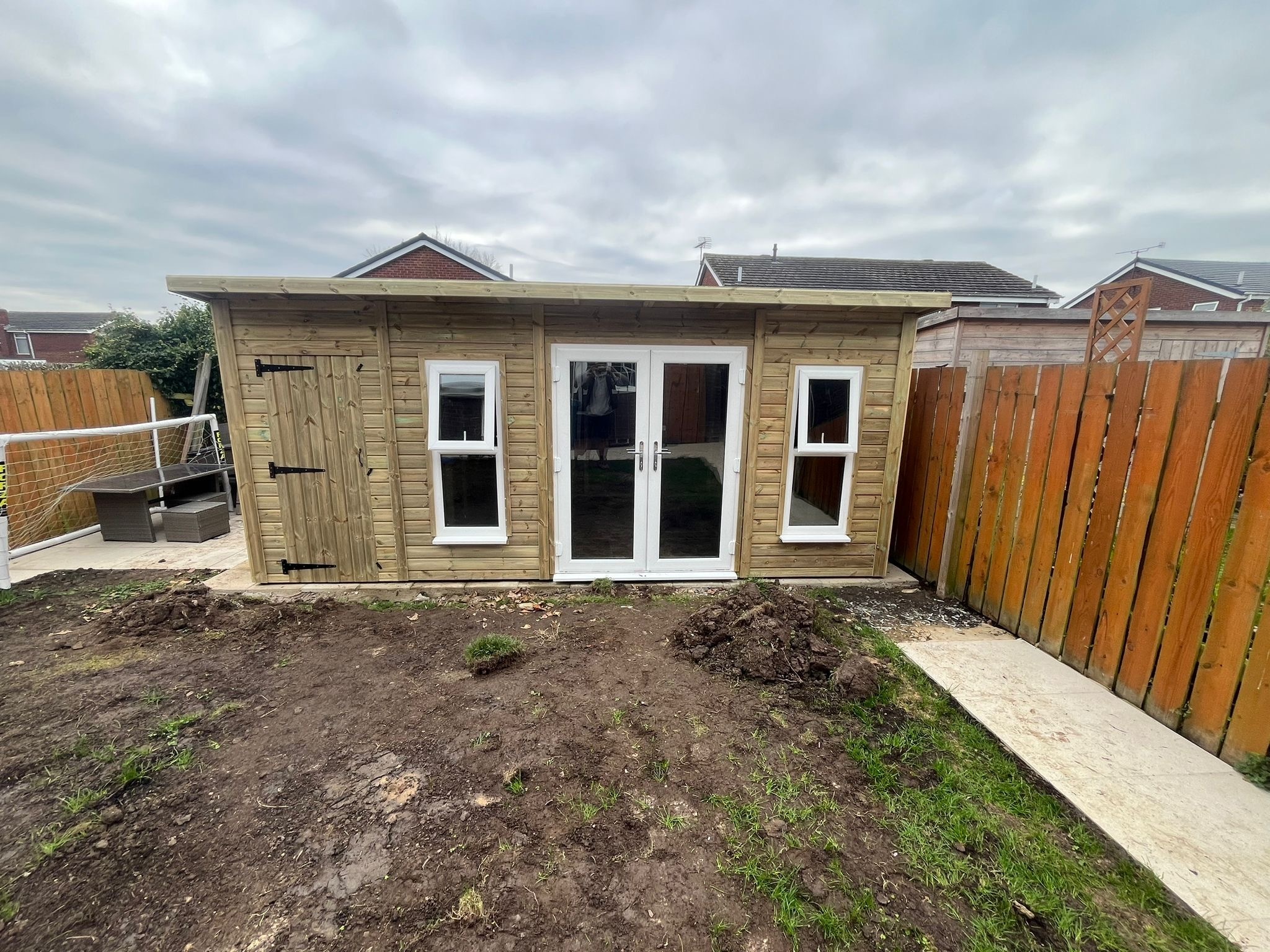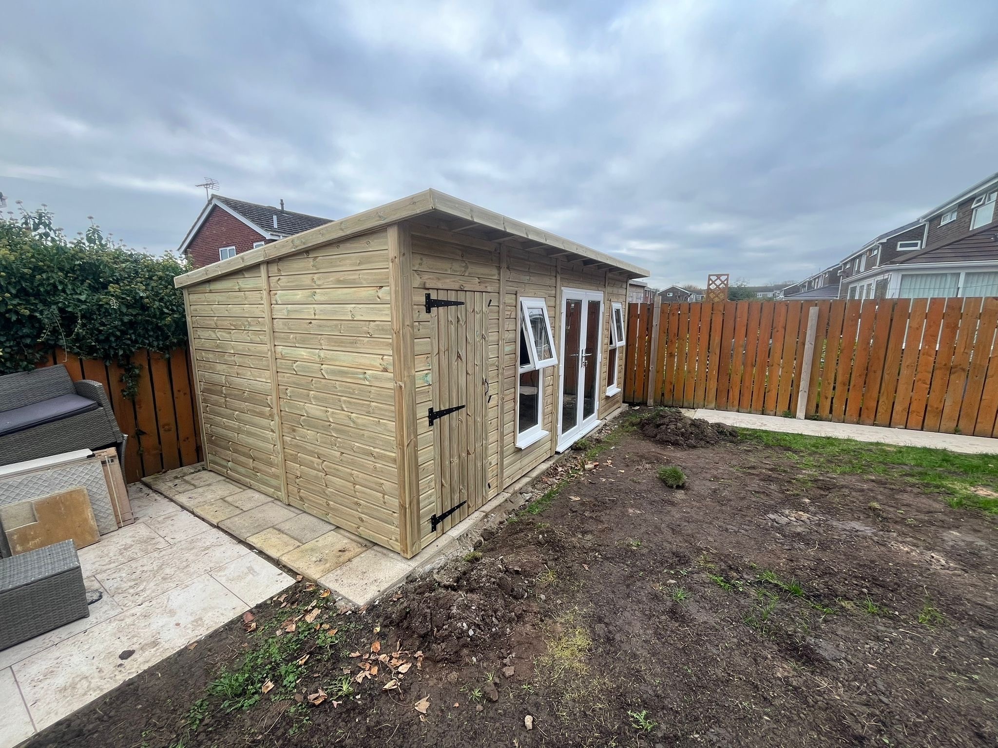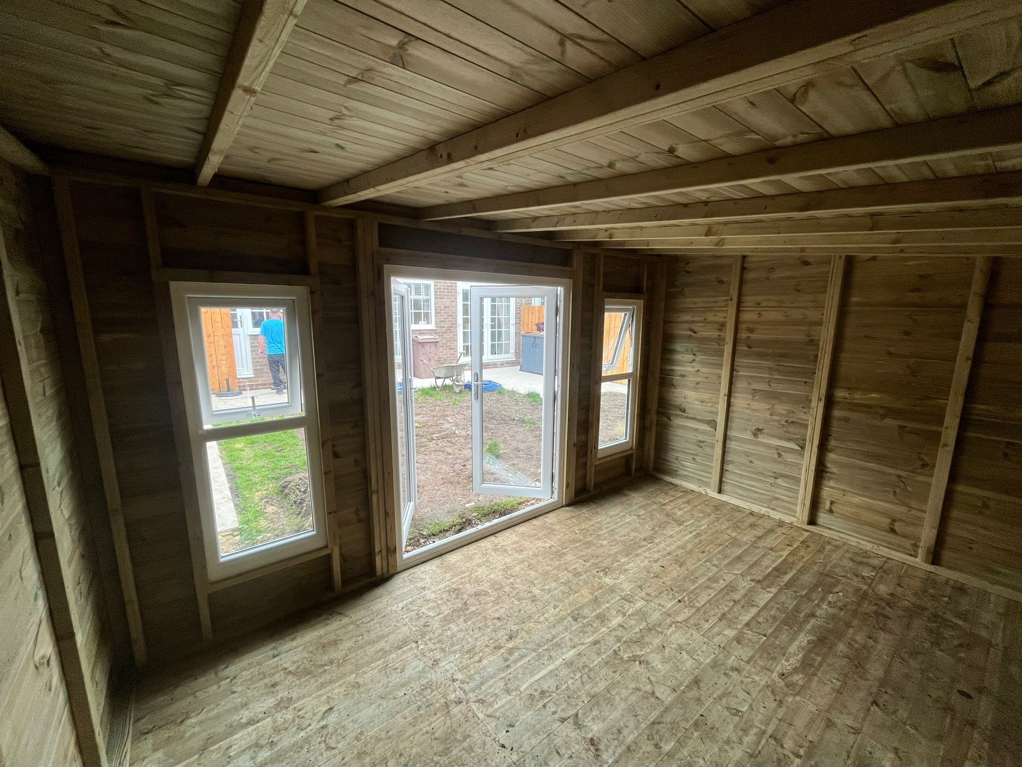 18x10 pent roofed summer house in our tanalised 19mm T&G.