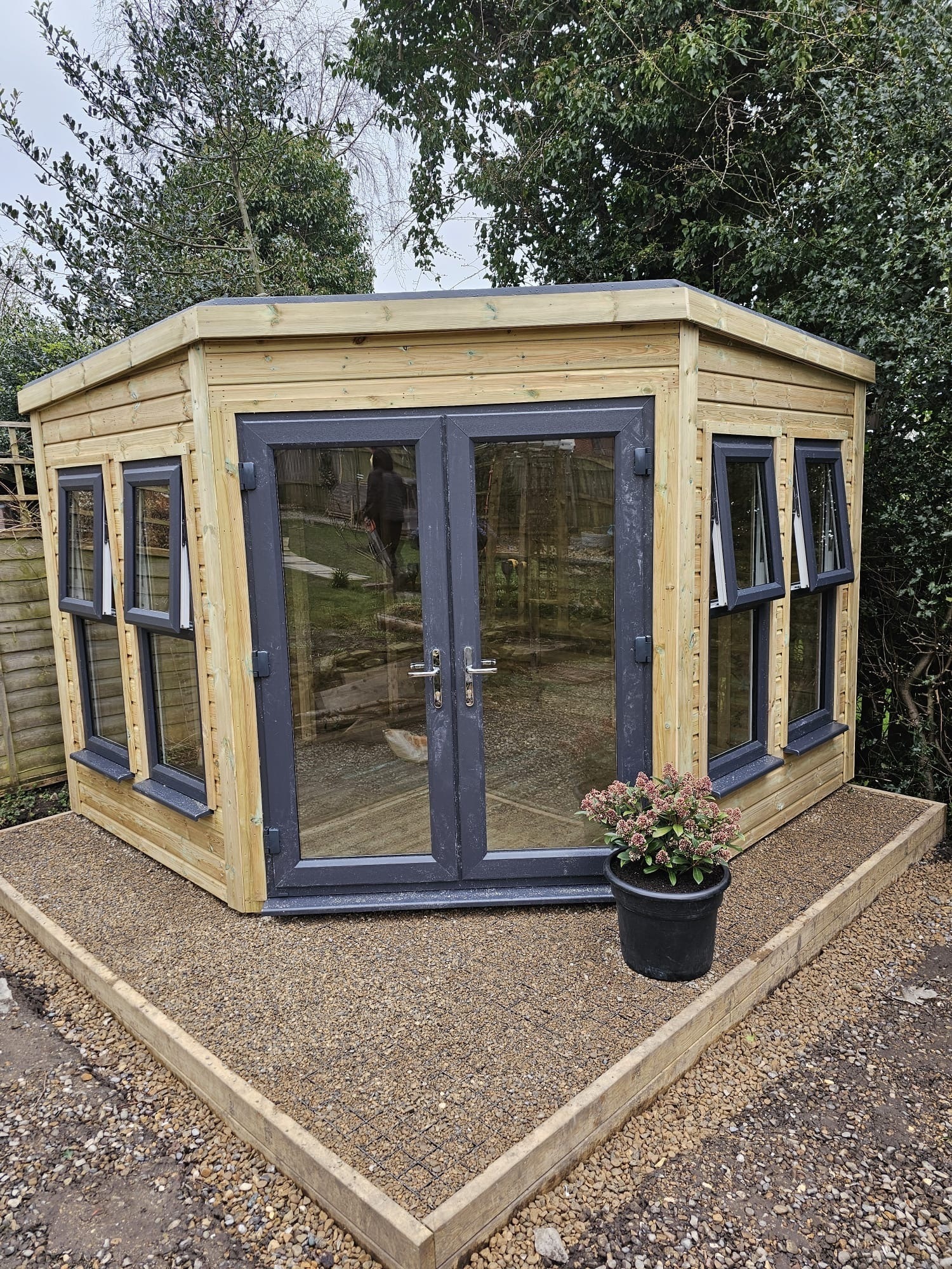 10x10 corner summerhouse in our tanalised 19mm T&G.