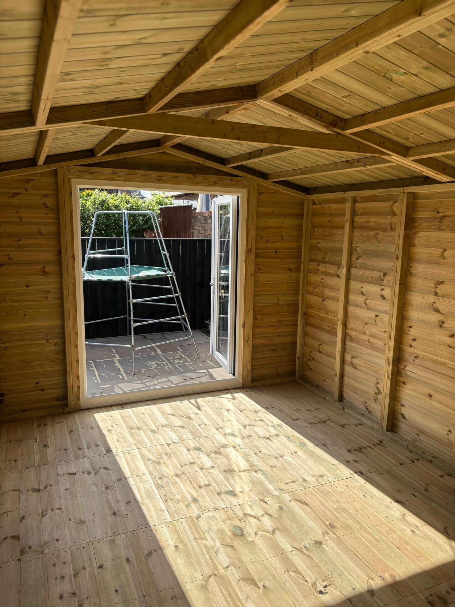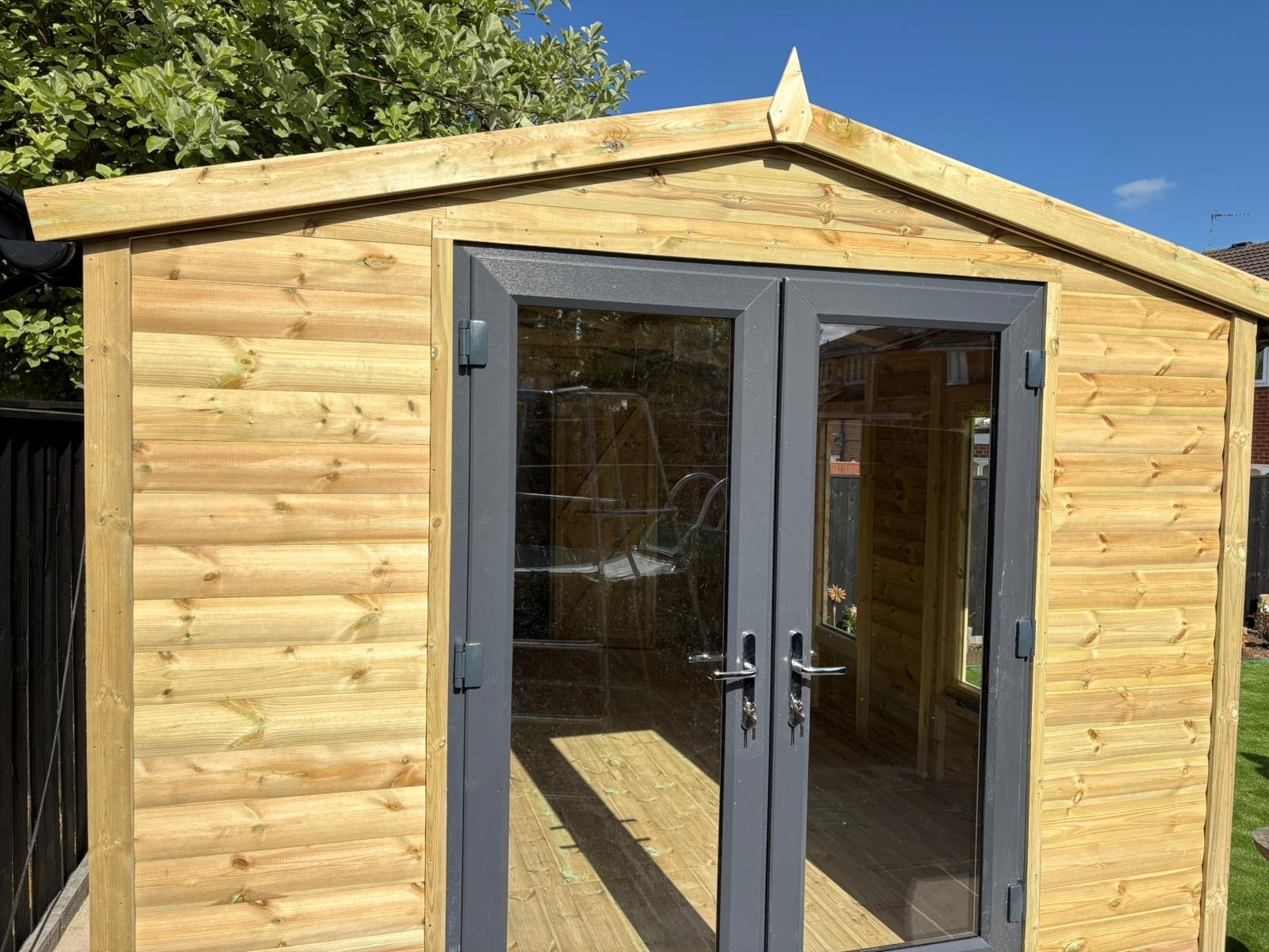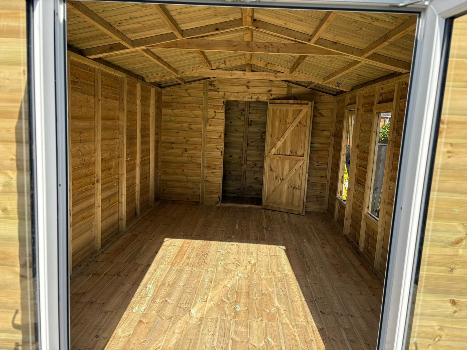 18x10 apex roofed summerhouse in our tanalised 19mm T&G.