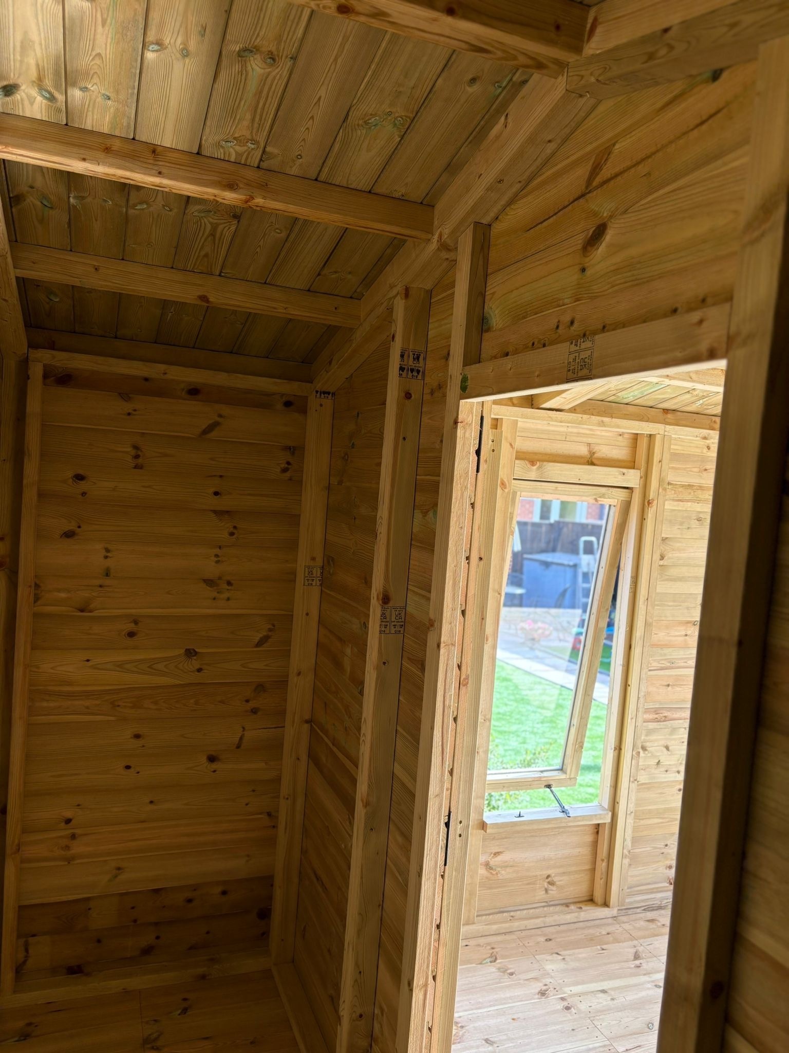 The summer house has x1 fixed and x2 opening standard long non pvc windows.