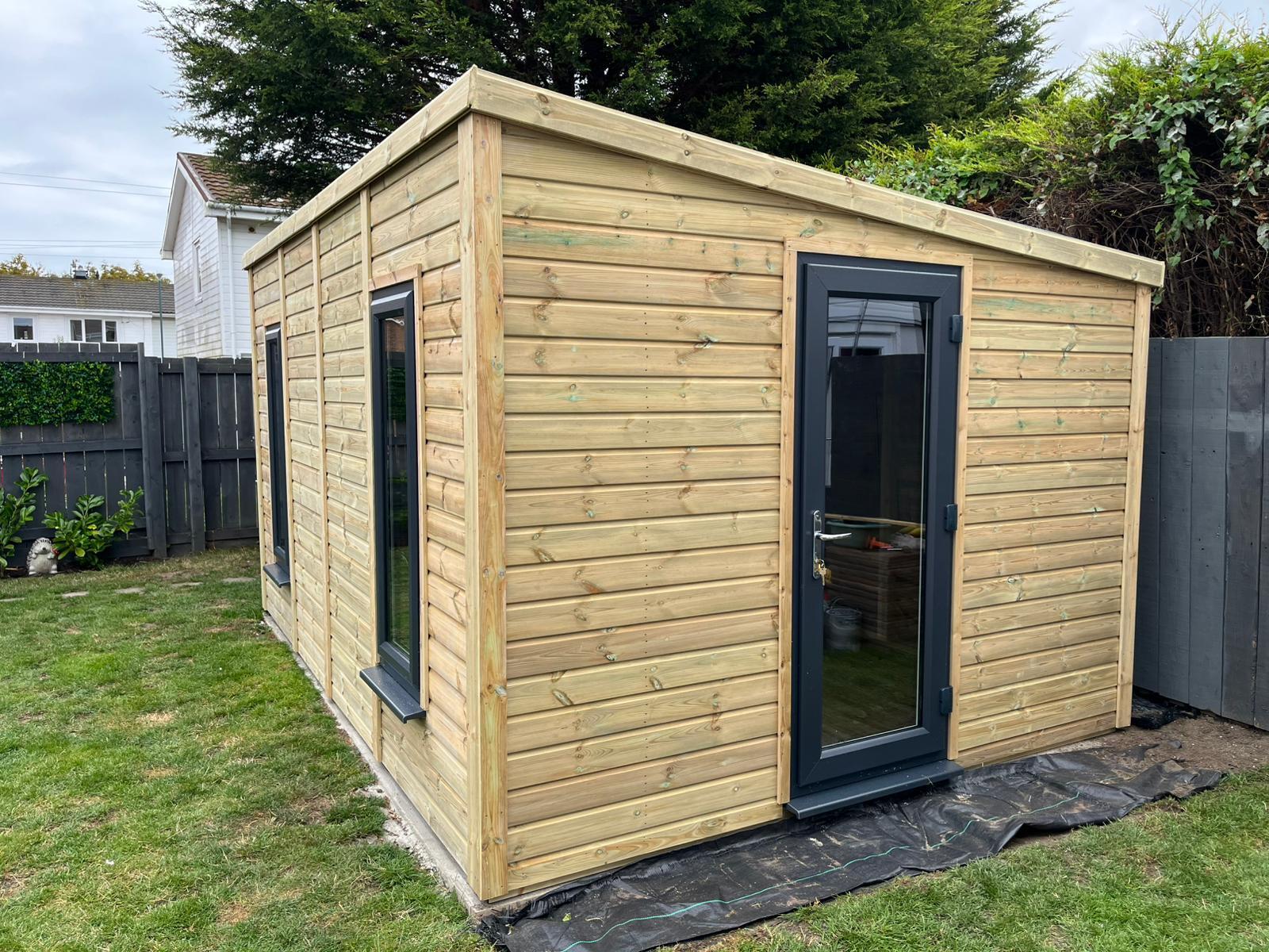 14x10 pent roofed summer house in our tanalised 19mm T&G.