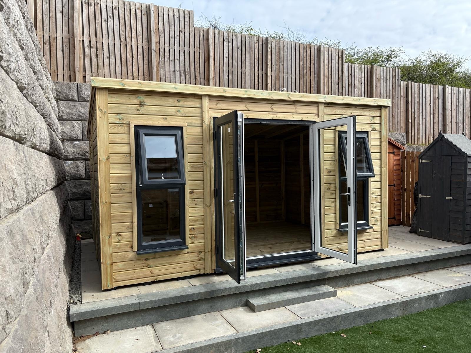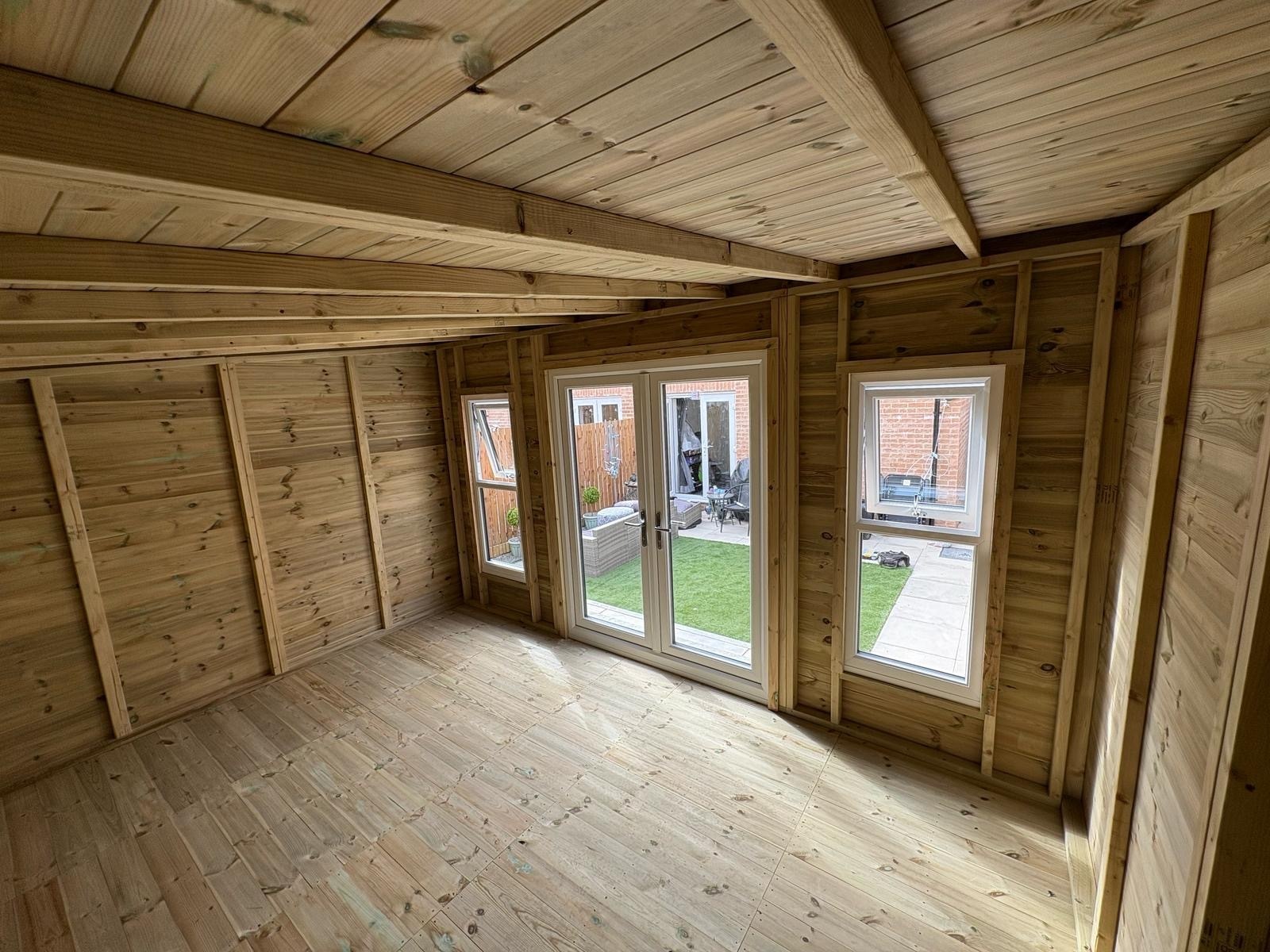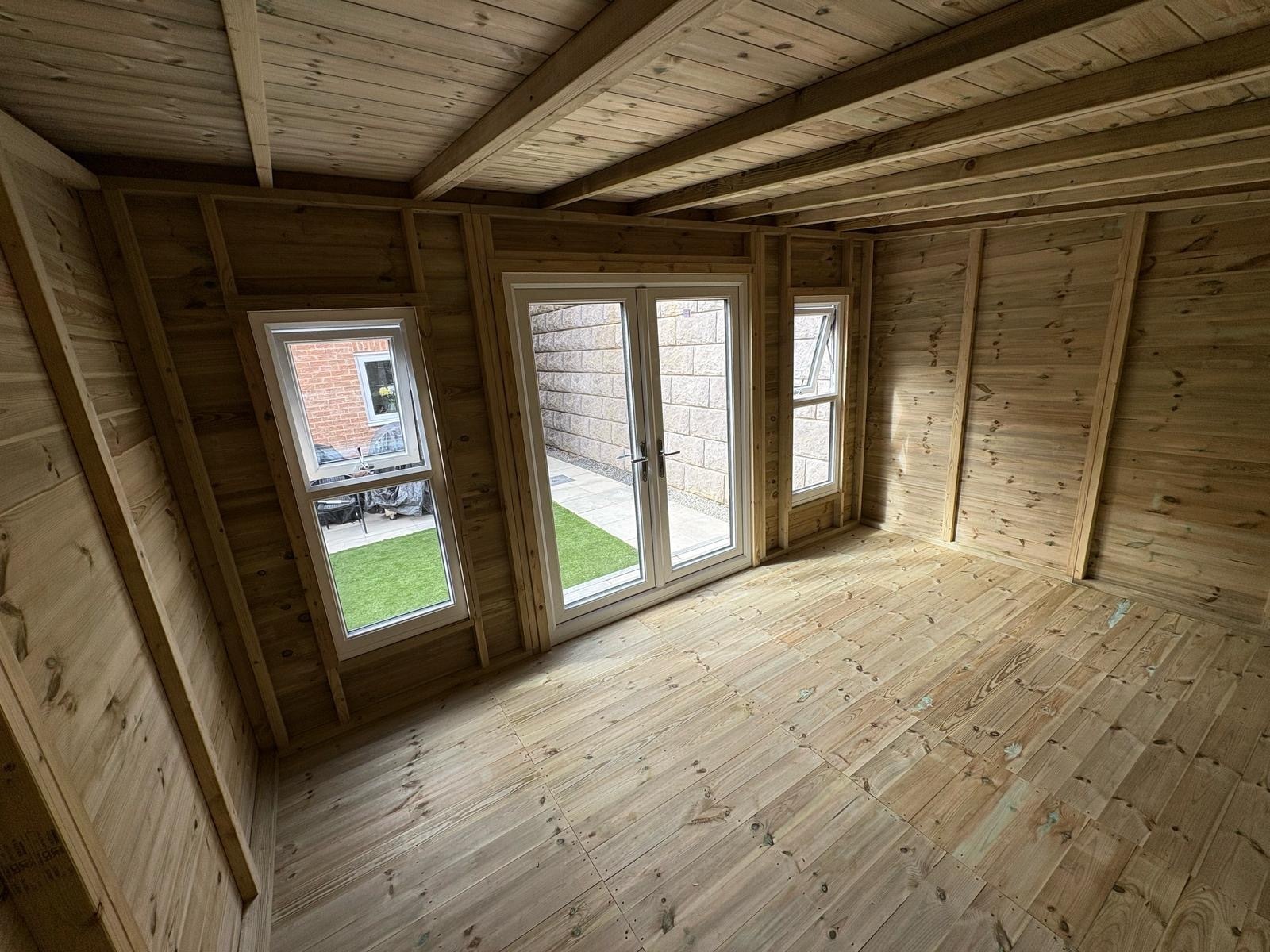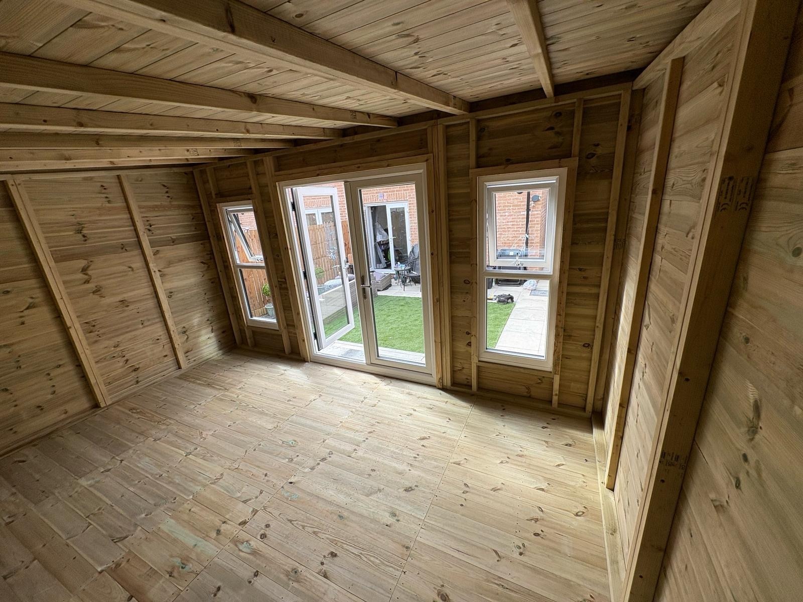 14x10 pent roofed summer house in our tanalised 19mm T&G.