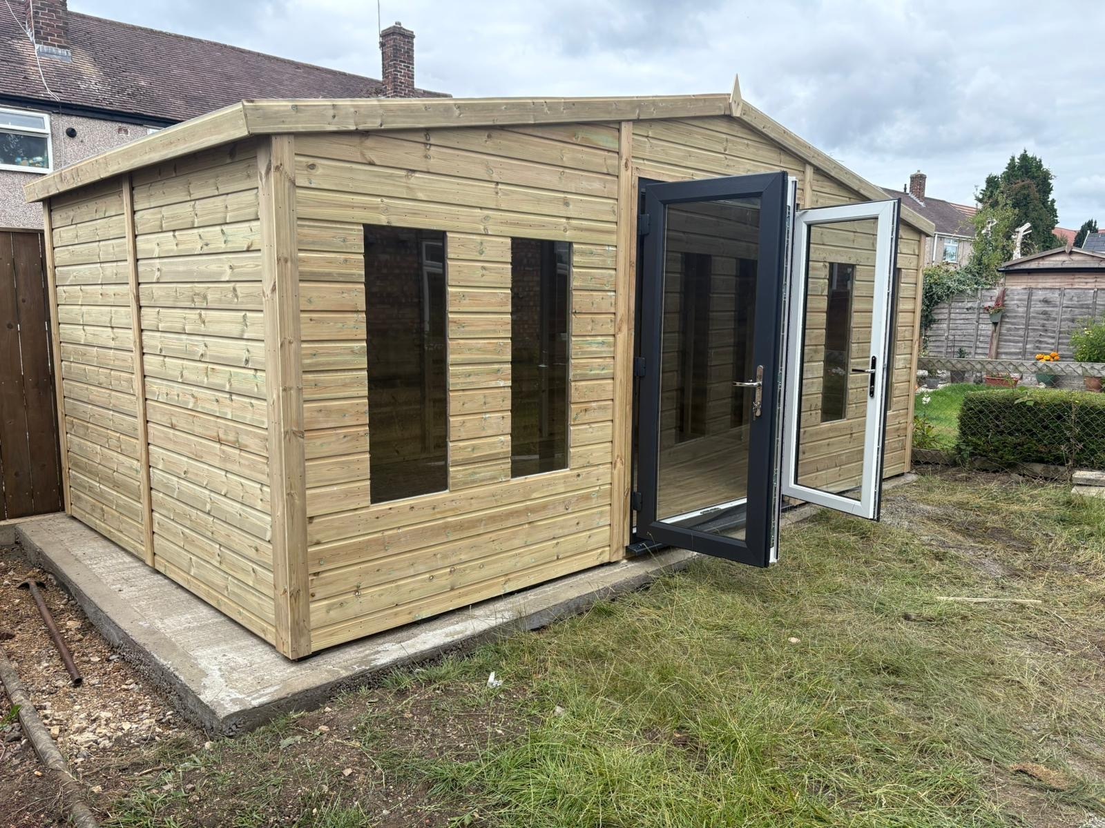 18x10 apex reverse roofed summerhouse in our tanalised 19mm T&G.