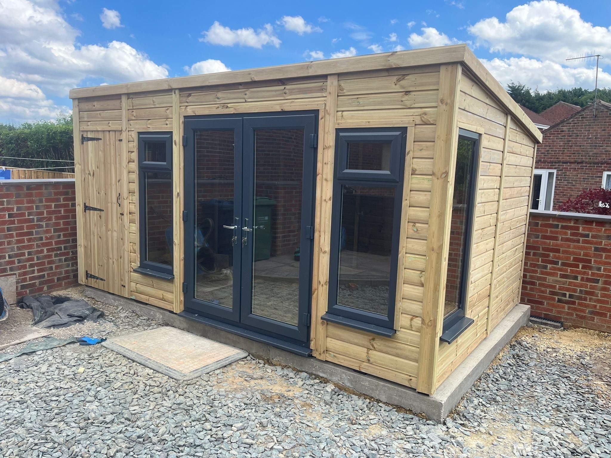 16x10 pent roofed summer house in our tanalised 19mm T&G.