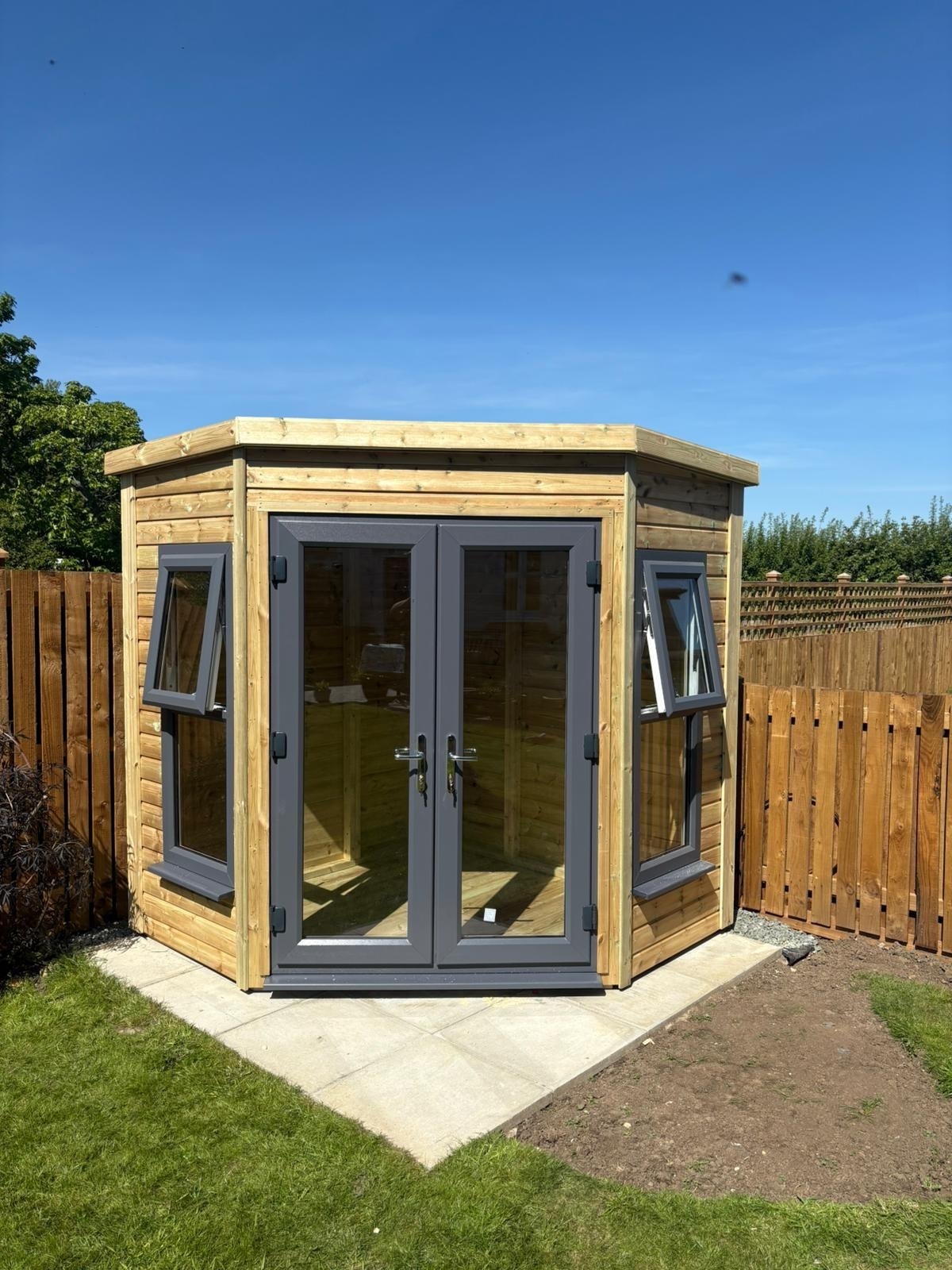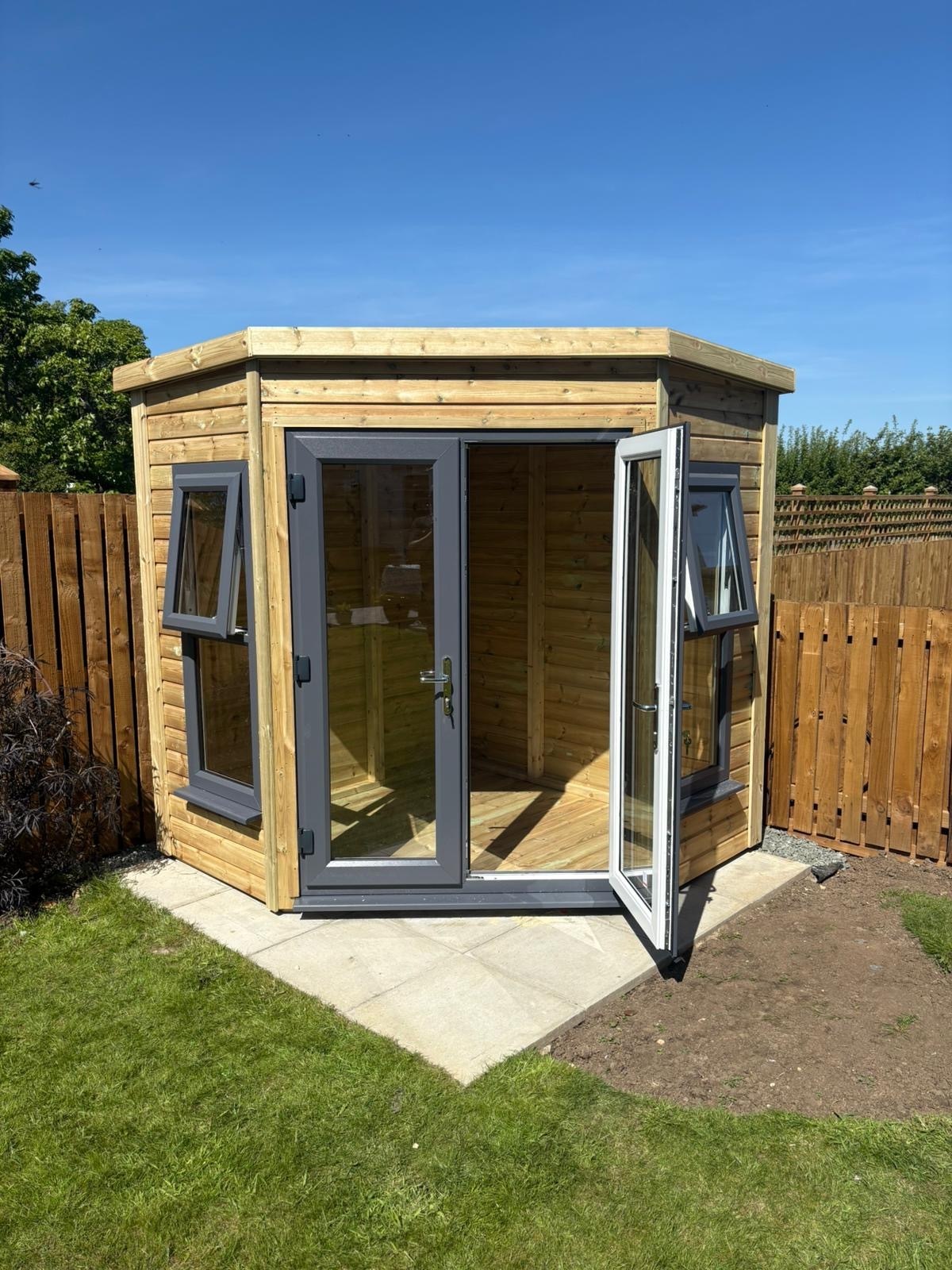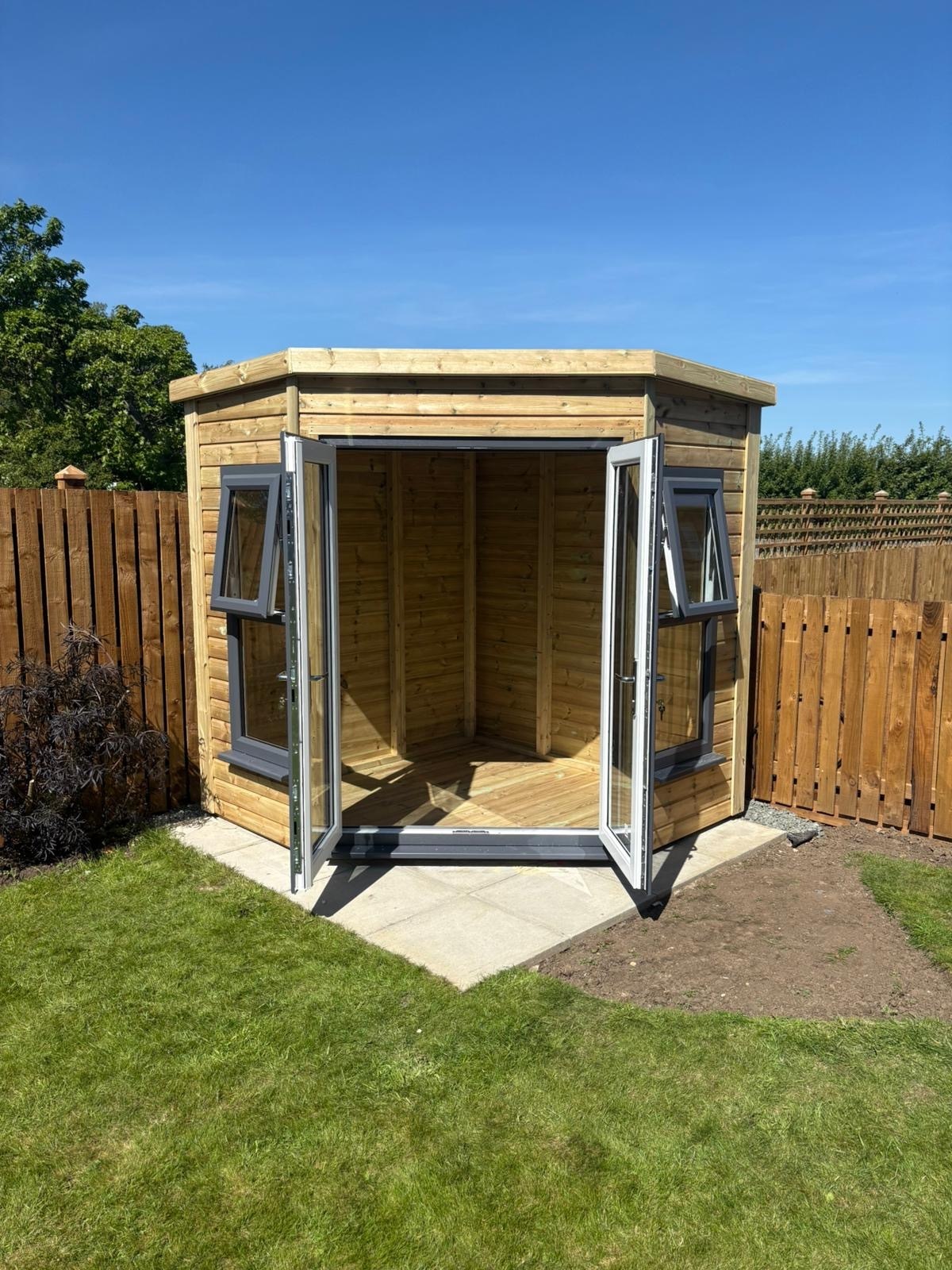 7x7 corner summerhouse in our tanalised 19mm T&G.