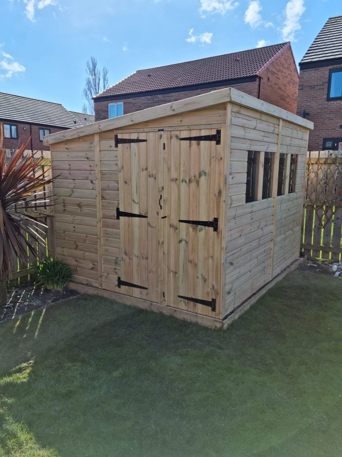 10x8 pent roofed shed in our tanalised 19mm T&G.