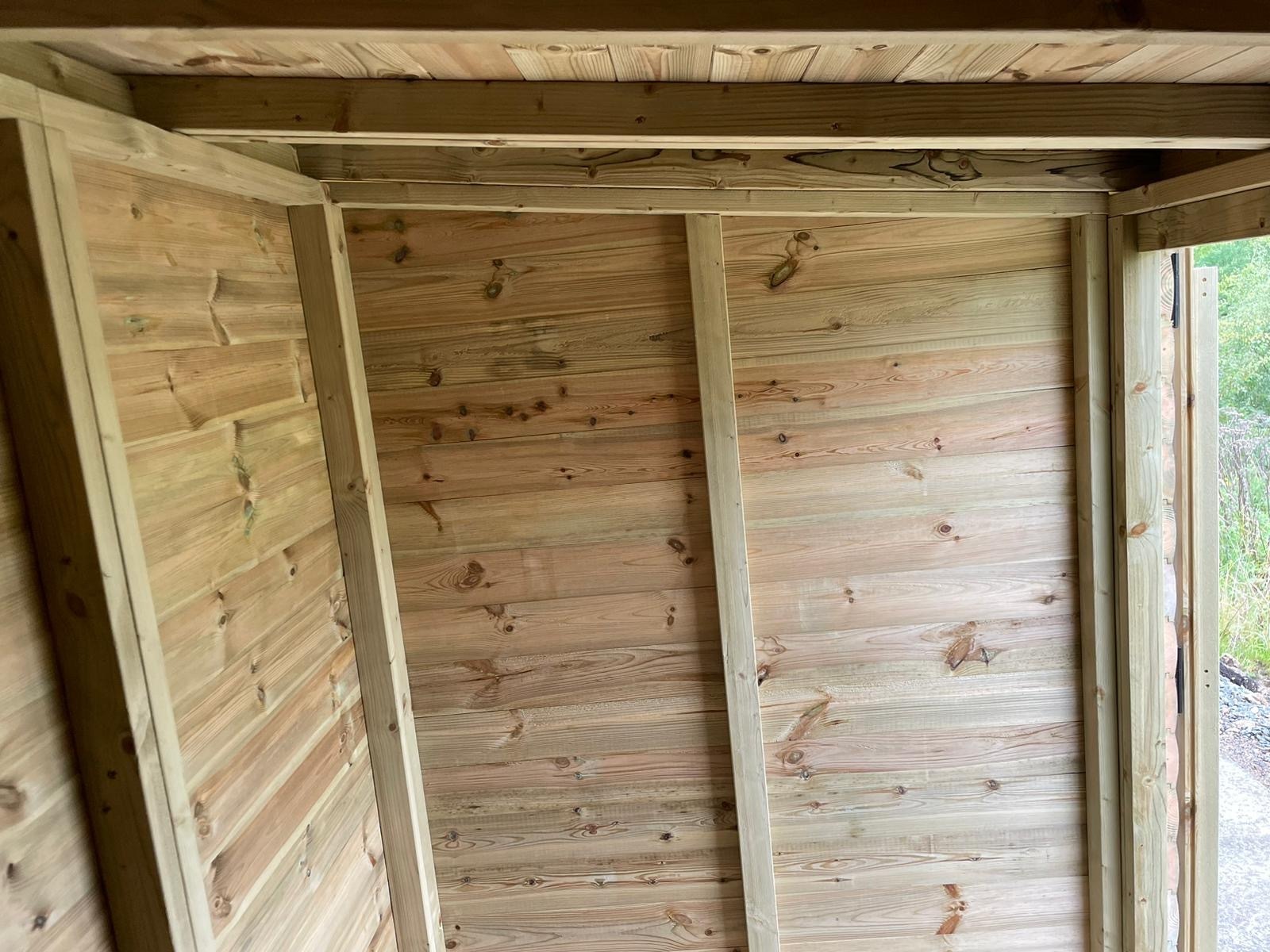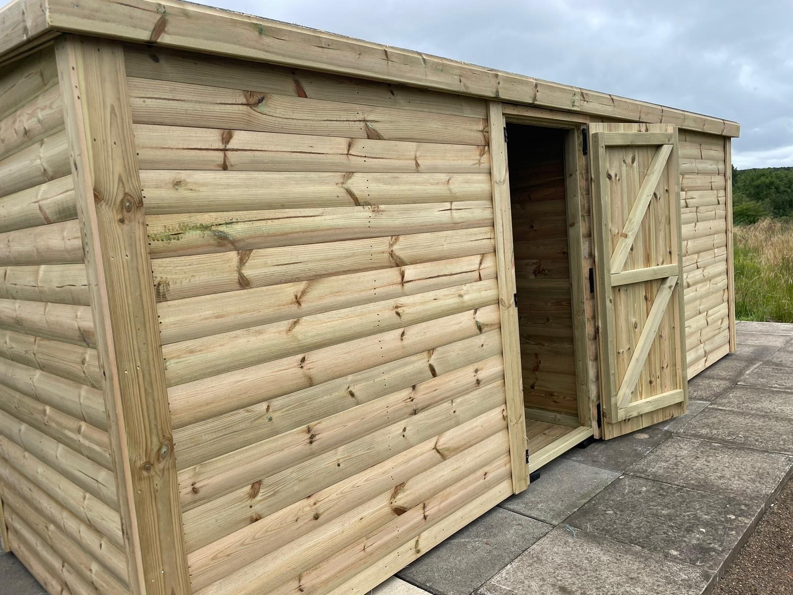 16x10 pent roofed shed in our tanalised 28mm loglap t&g.