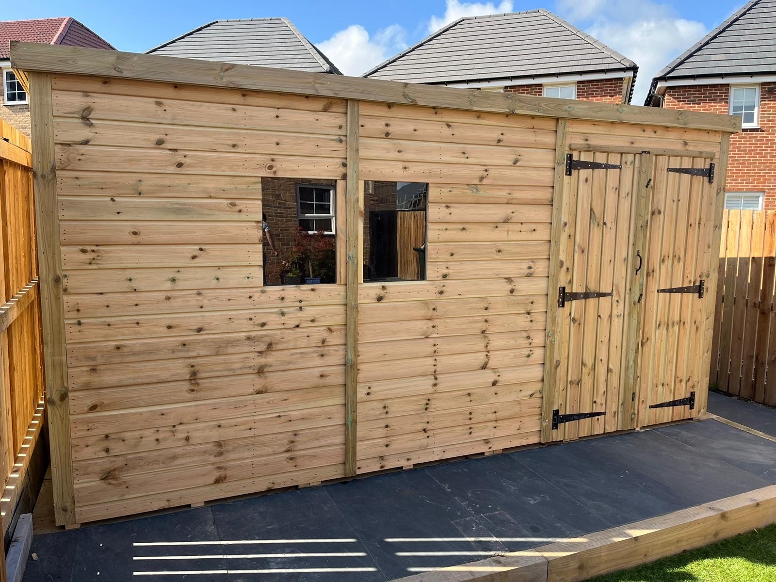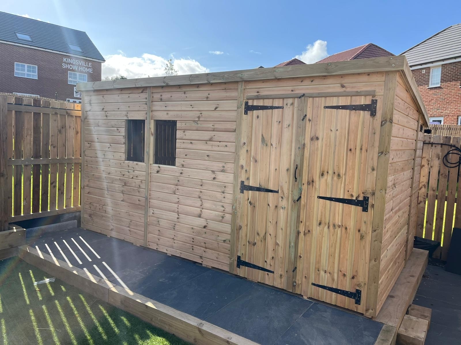 The shed has a 4ft wide 6ft high double door and x2 windows.
