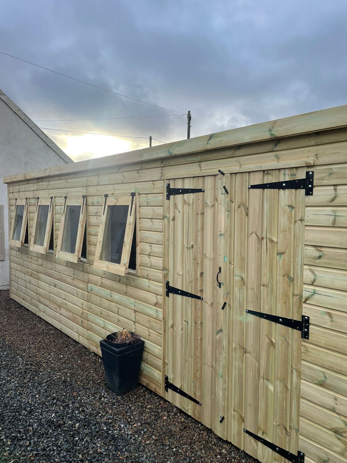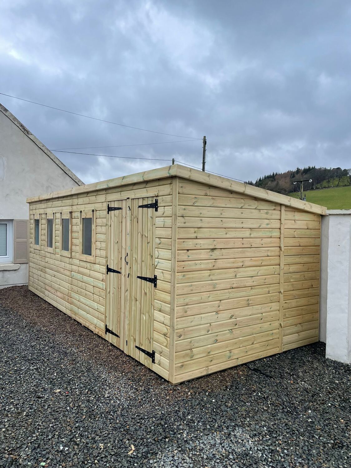 20x8 pent roofed shed in our tanalised 19mm T&G, giving standard protection for 15 to 20 years without you having to treat it yourself.