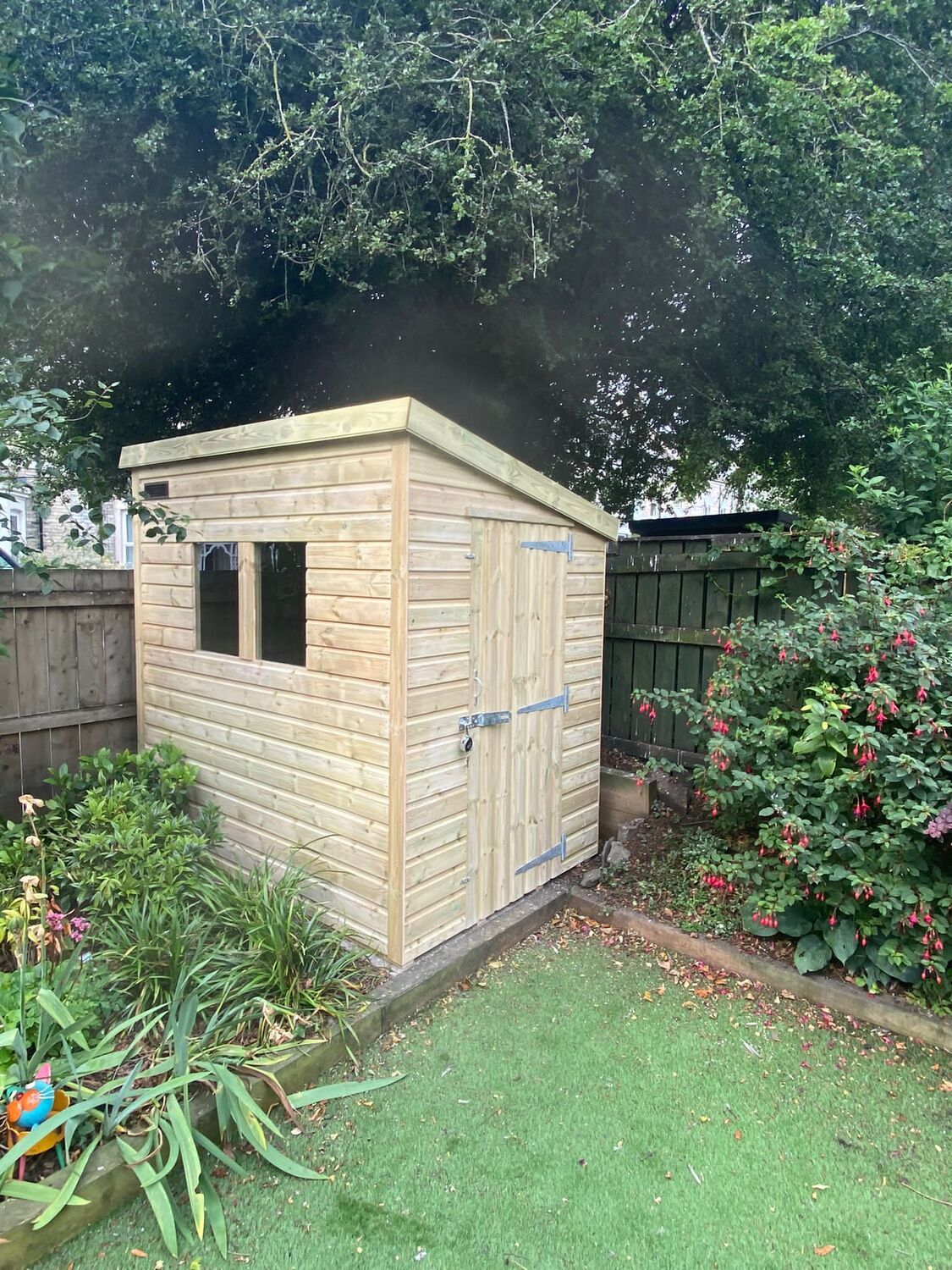 7x5 pent roofed shed in our tanalised 19mm T&G.