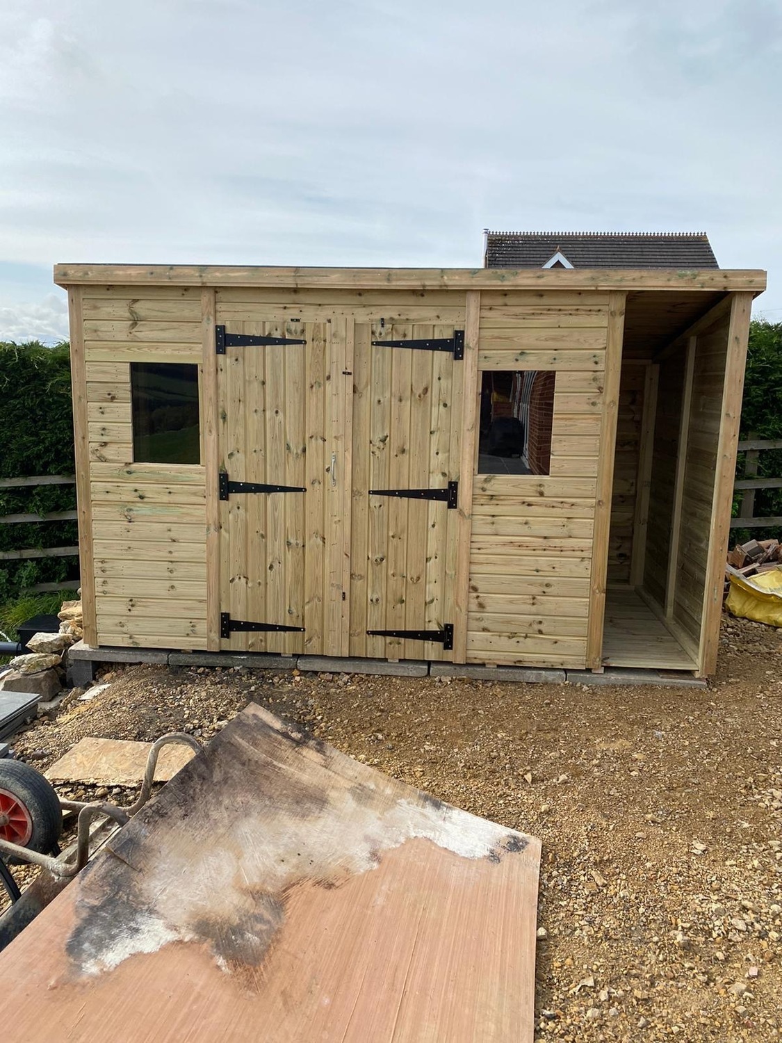 The shed is 10ft wide inside with a 2ft log store area making it total 12ft wide and 6ft deep.