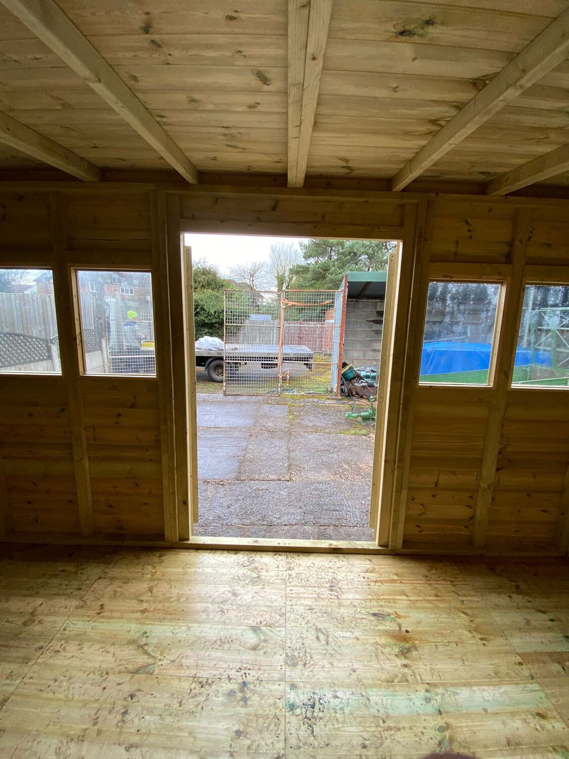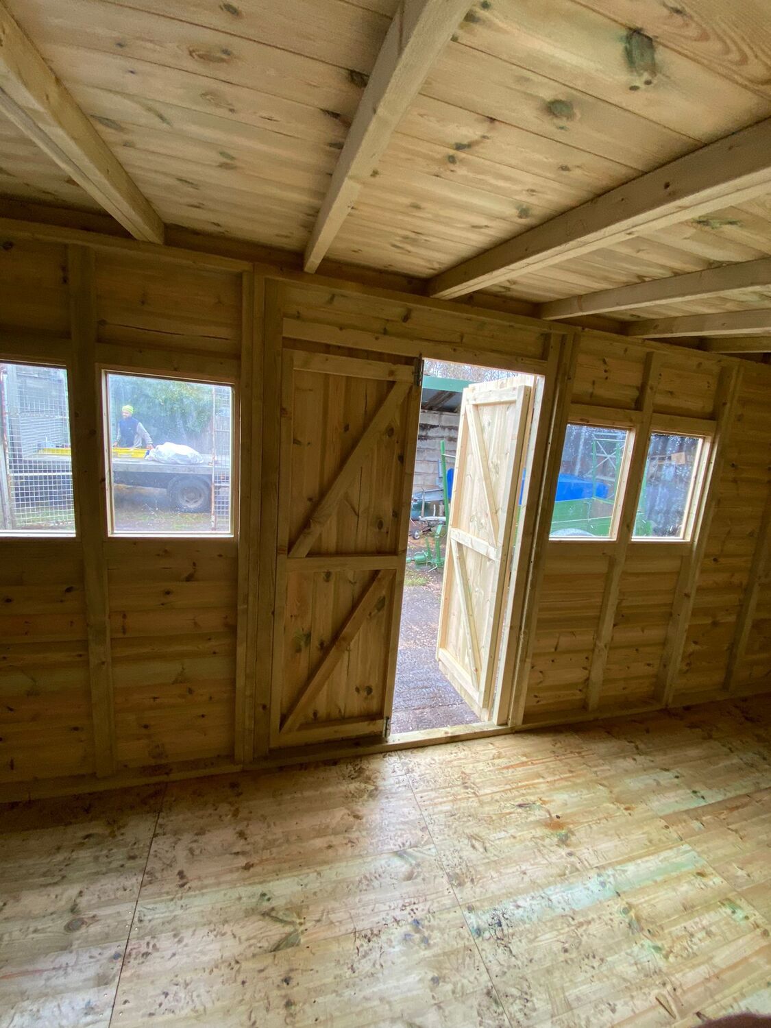The shed has a 4ft wide 6ft high double door and 4 windows.