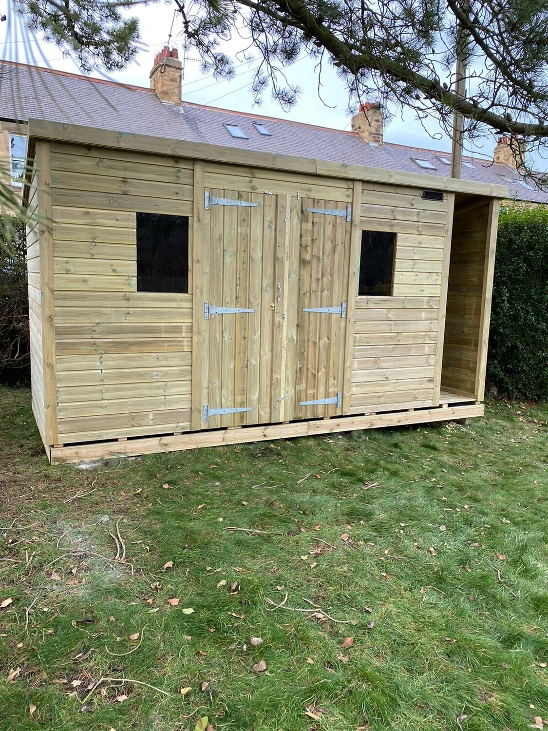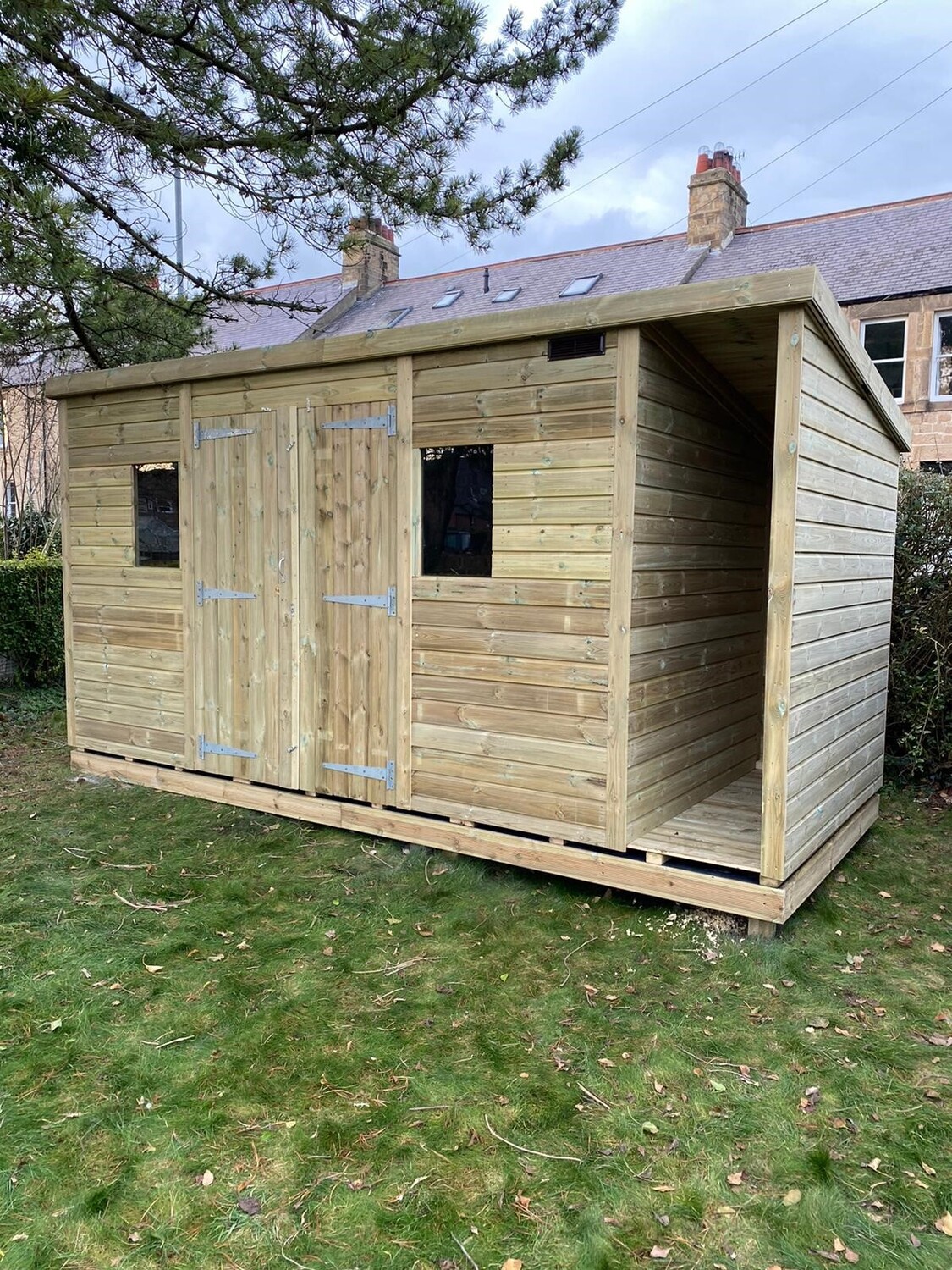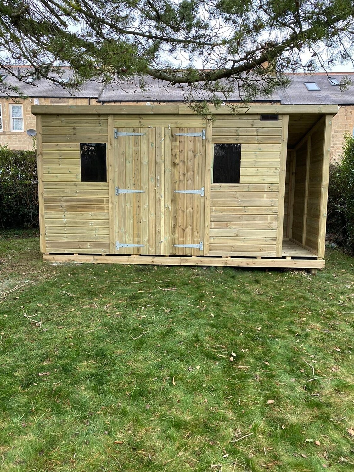 The shed has a 4ft wide 6ft high double door and 2 windows.