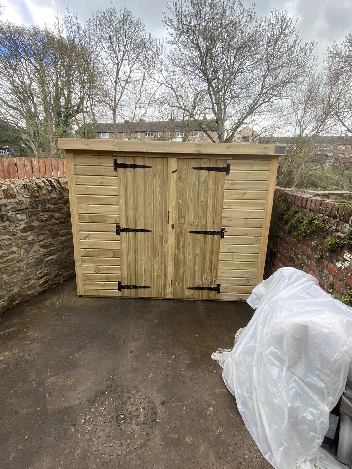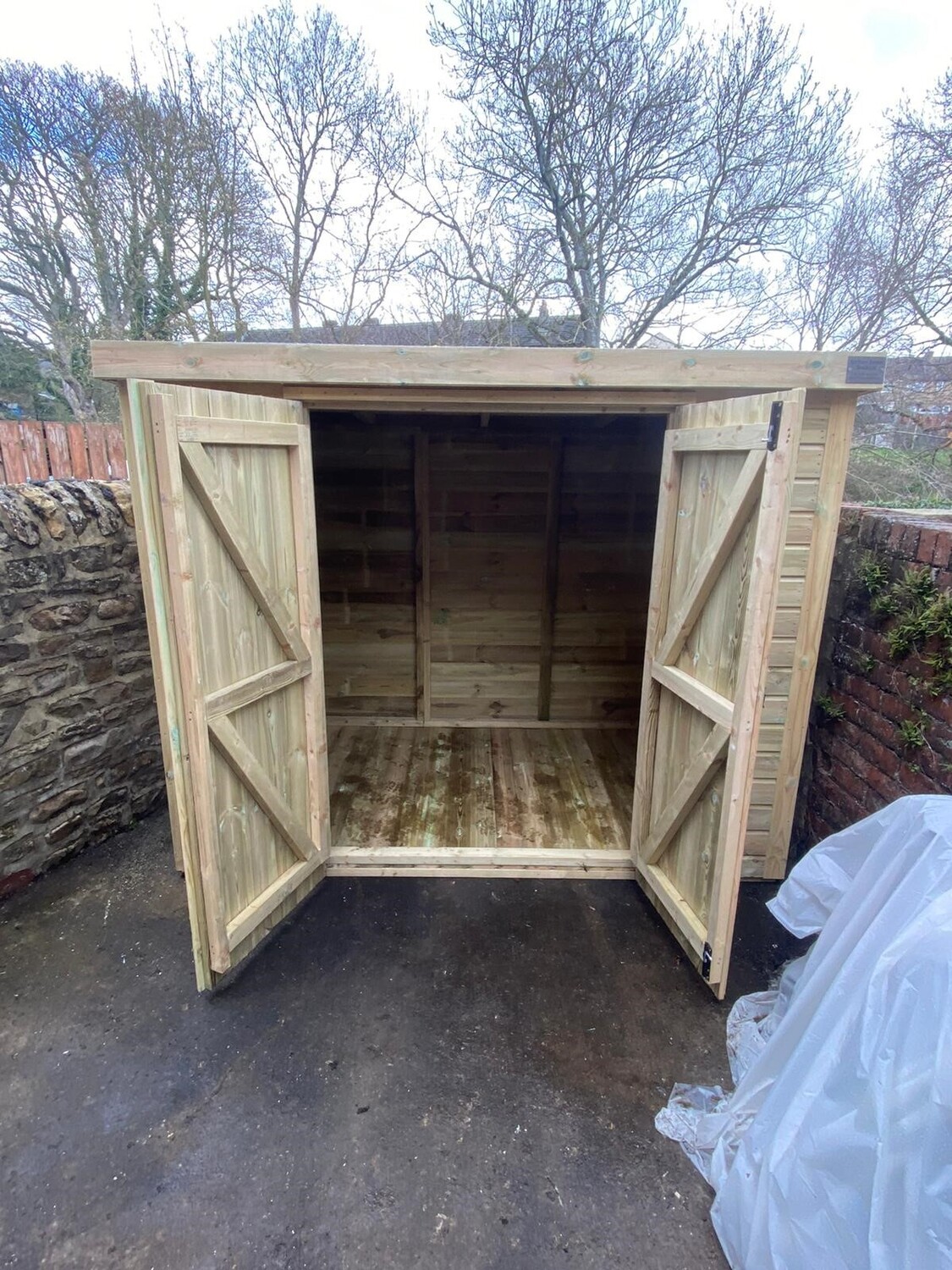 The shed has a 4ft wide 6ft high double door and no windows.