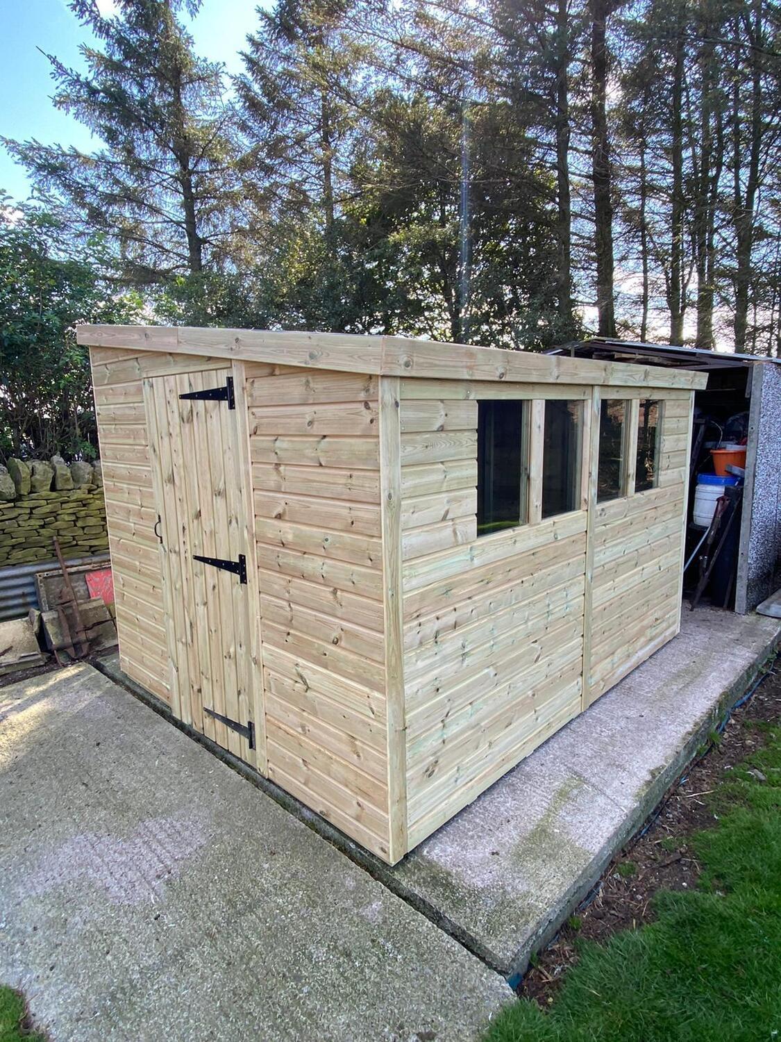 10x8 pent roofed shed in our tanalised 19mm T&G.
