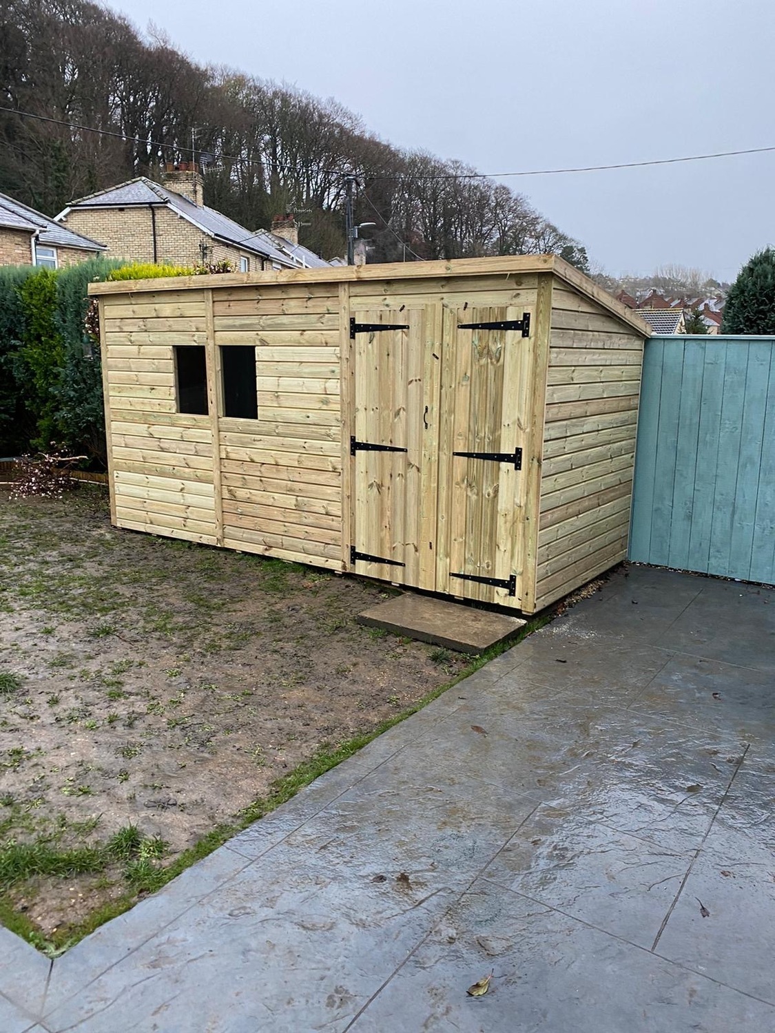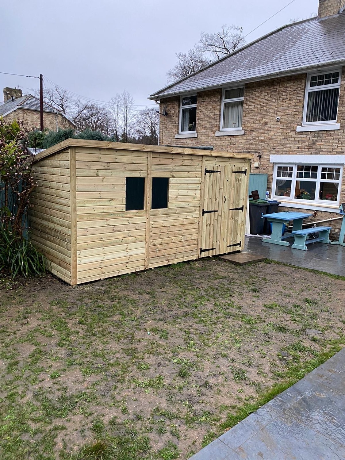The shed has a 4ft wide 6ft high double door and 2 windows.