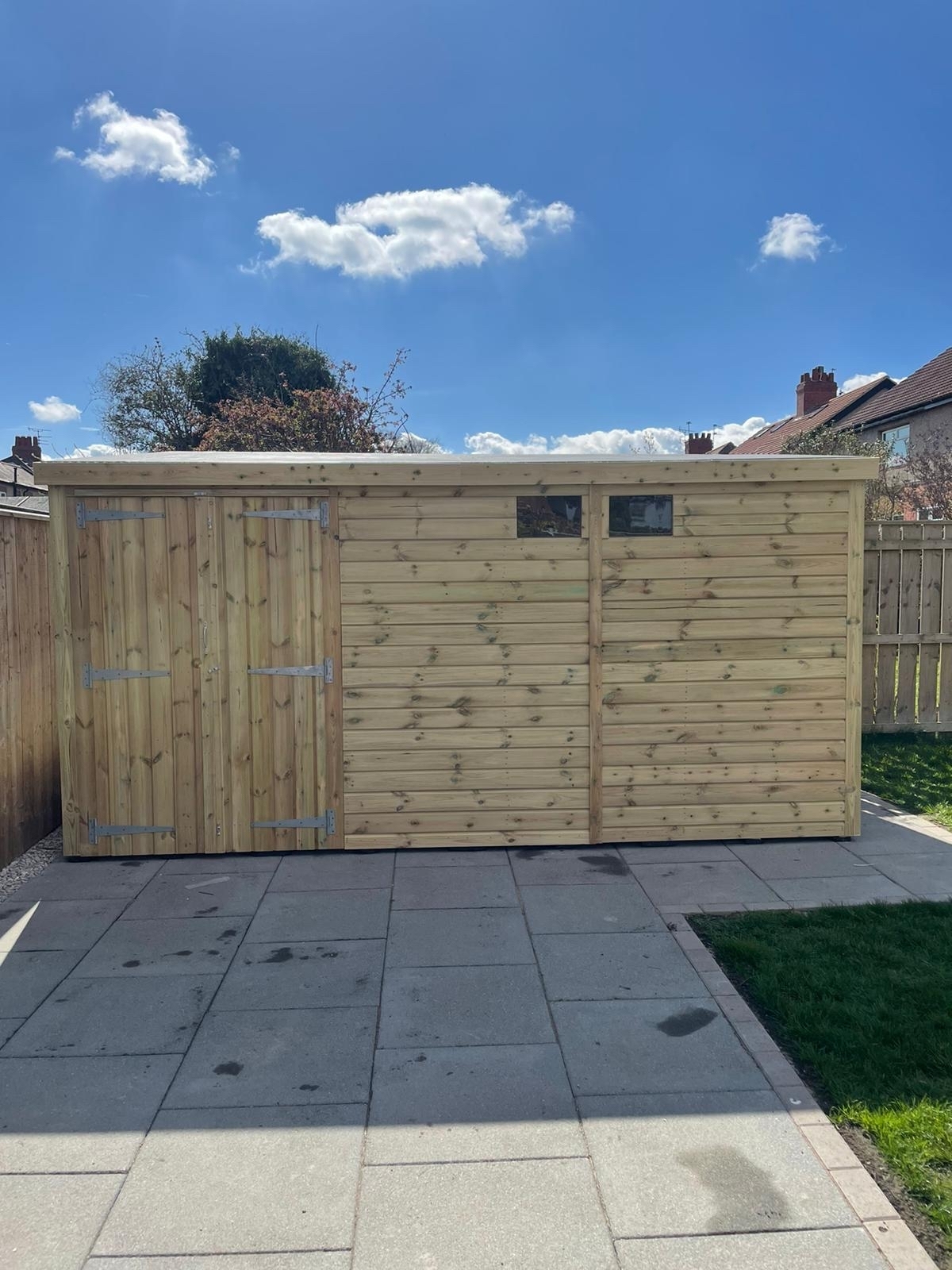 The shed has a 4ft wide 6ft high double door and 2 security windows.
